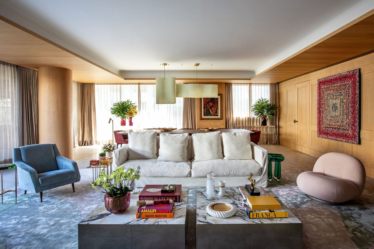 Os cômodos do apartamento incluem uma variedade de espaços cuidadosamente personalizados. Revestimentos, móveis e objetos foram selecionados pelo casal, que viveu intensamente cada etapa da reforma. O resultado é um lar acolhedor e autêntico, refletindo a paixão do casal pela brasilidade.