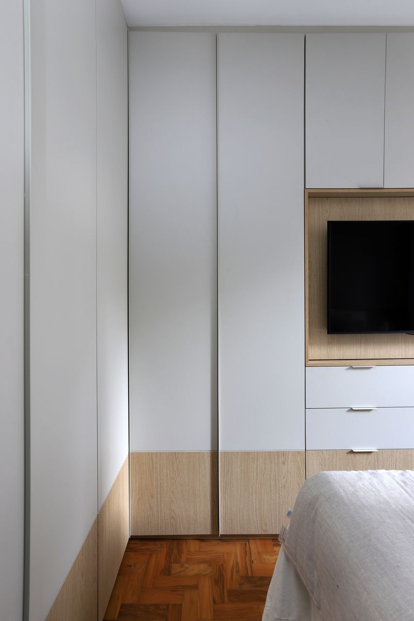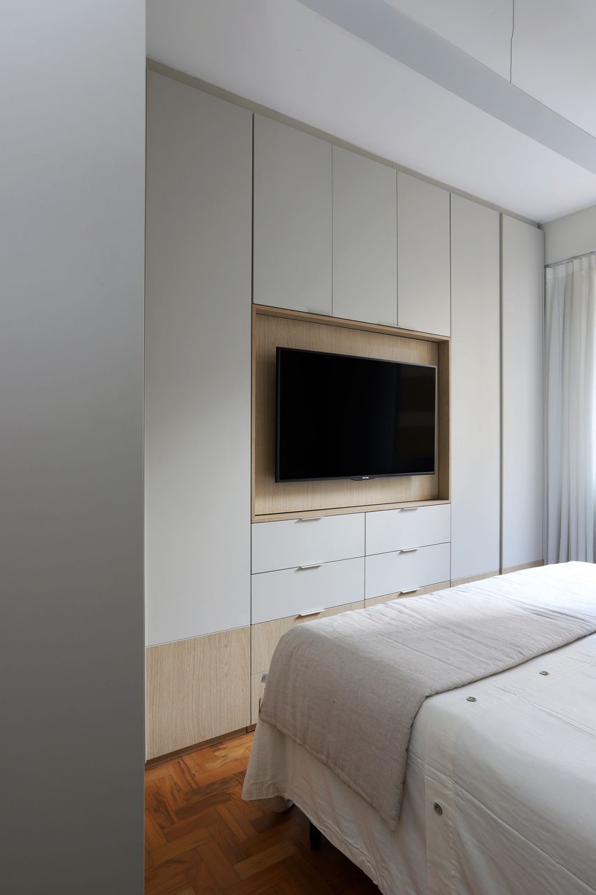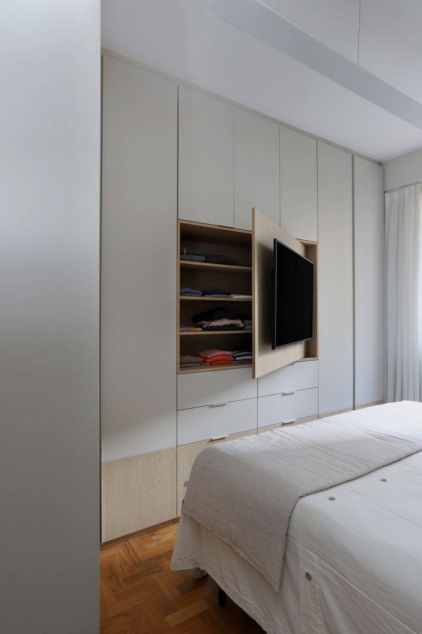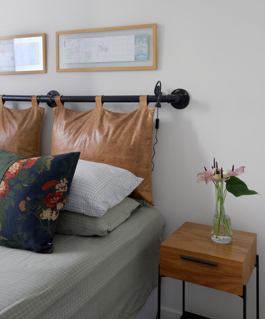 Kika também comenta sobre que alguns elementos da casa original não agradavam muito, como as esquadrias brancas e o piso cerâmico brilhante. O desafio foi justamente deixar tudo mais acolhedor sem mexer na estrutura, e as soluções vieram principalmente pela decoração. Durante a visita completa, ela também mostra com mais calma o living e a suíte master, dois ambientes que ajudam a entender bem a lógica do projeto.