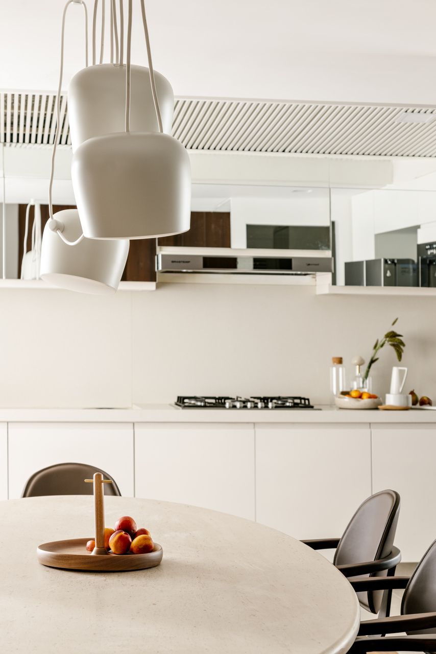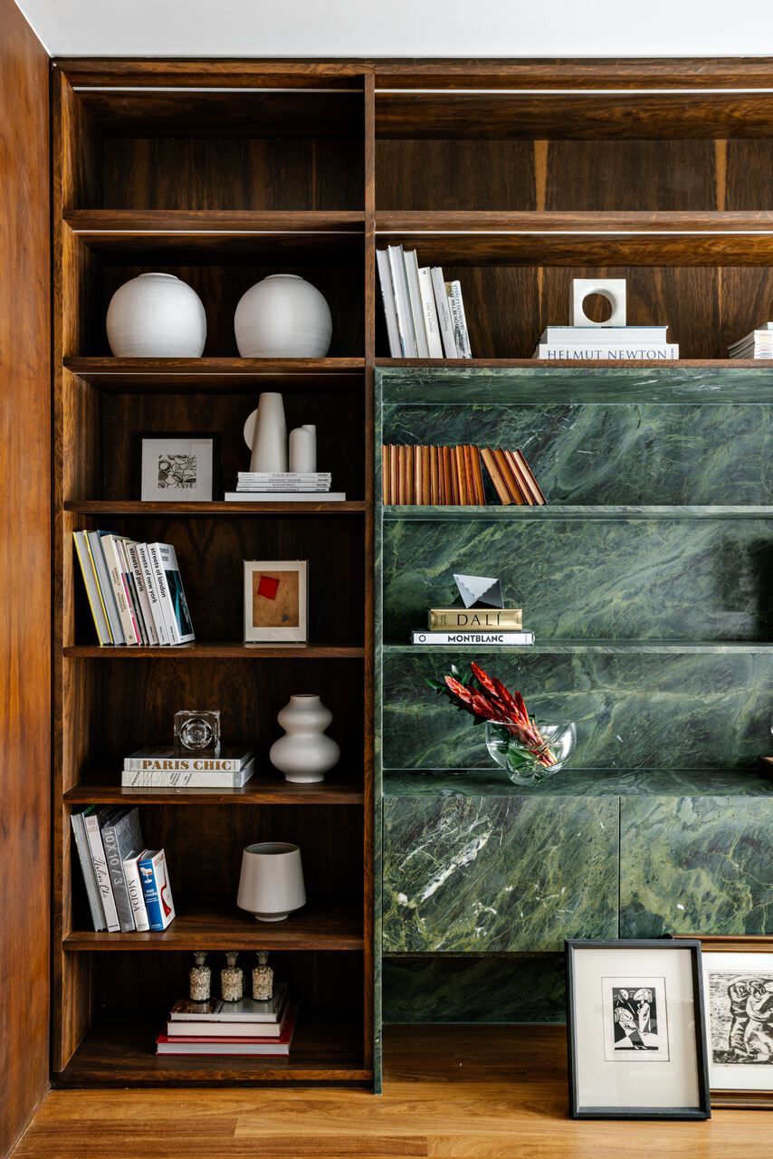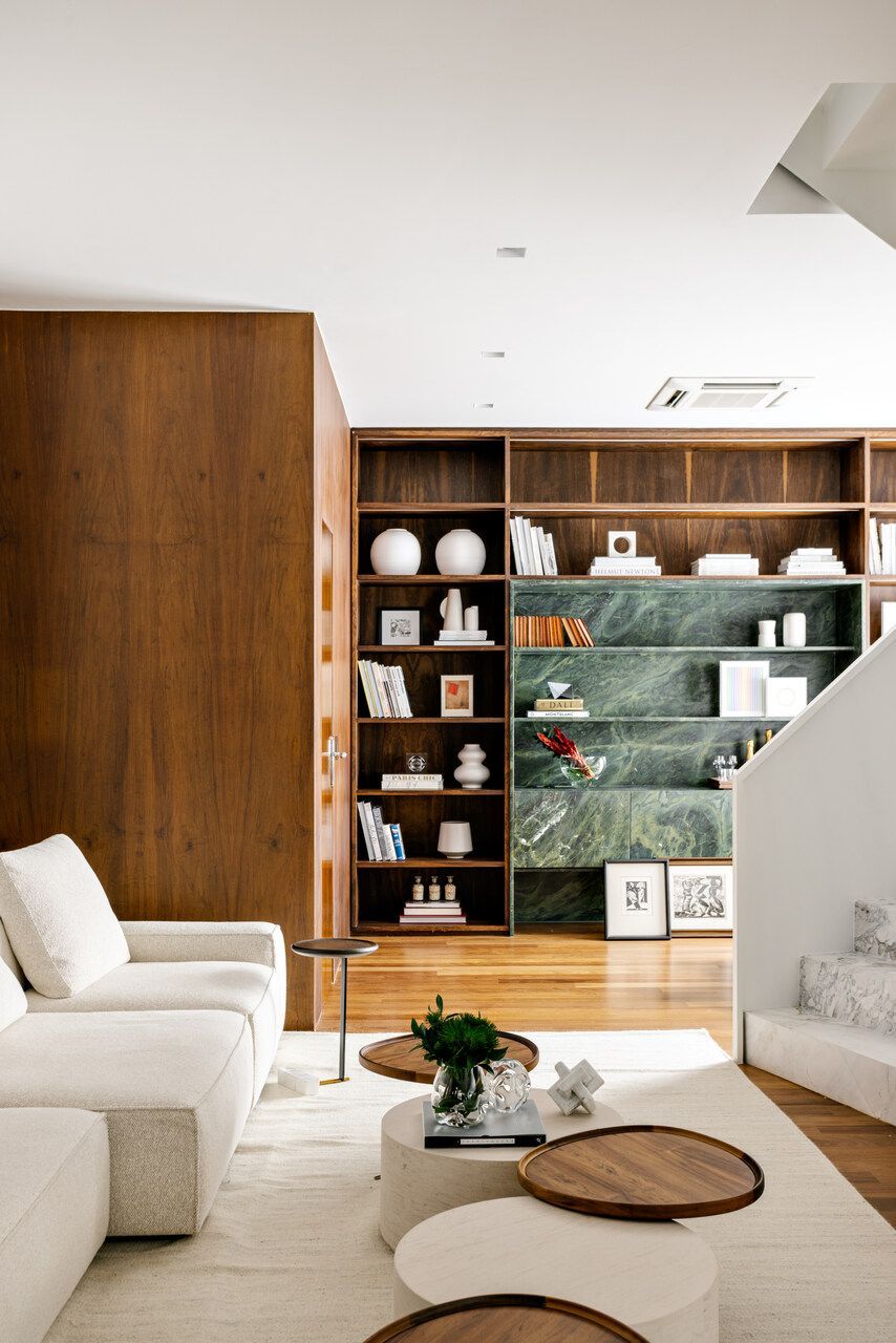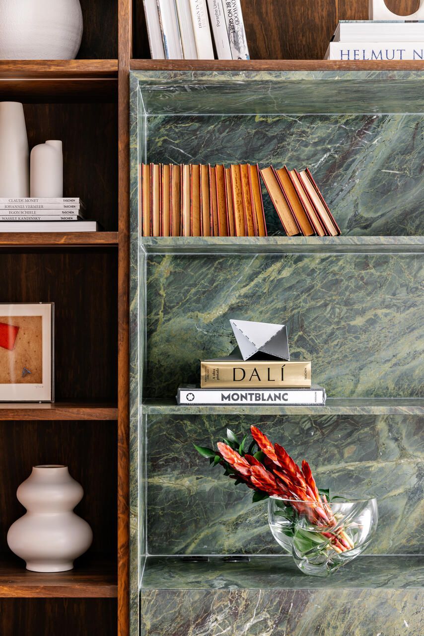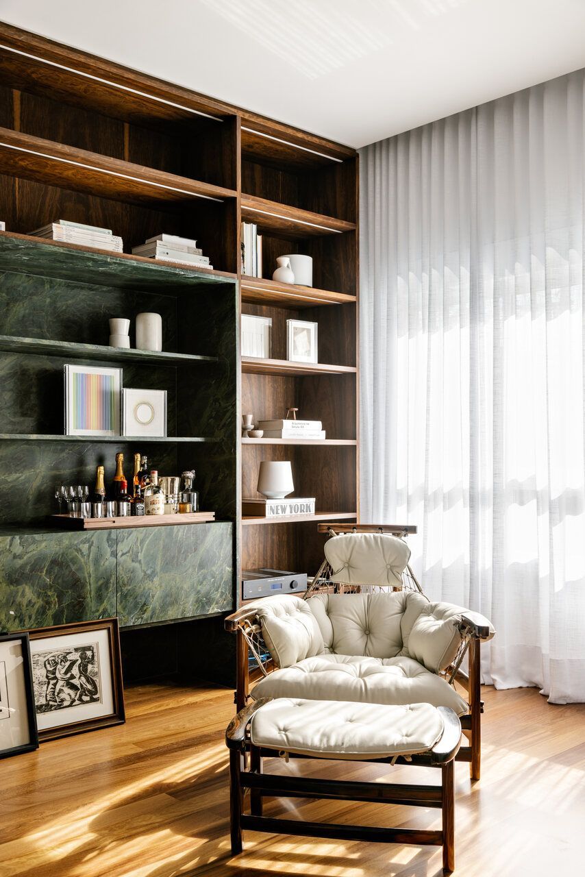 O morador já admirava o trabalho de Marcela desde que a viu na CASACOR, e foi justamente esse olhar cuidadoso que o motivou a procurá-la. Ele pedia fluidez entre os ambientes, conforto e integração, tanto física quanto emocional. Nada exagerado, nada supérfluo: apenas boas escolhas que atravessassem o tempo com elegância.