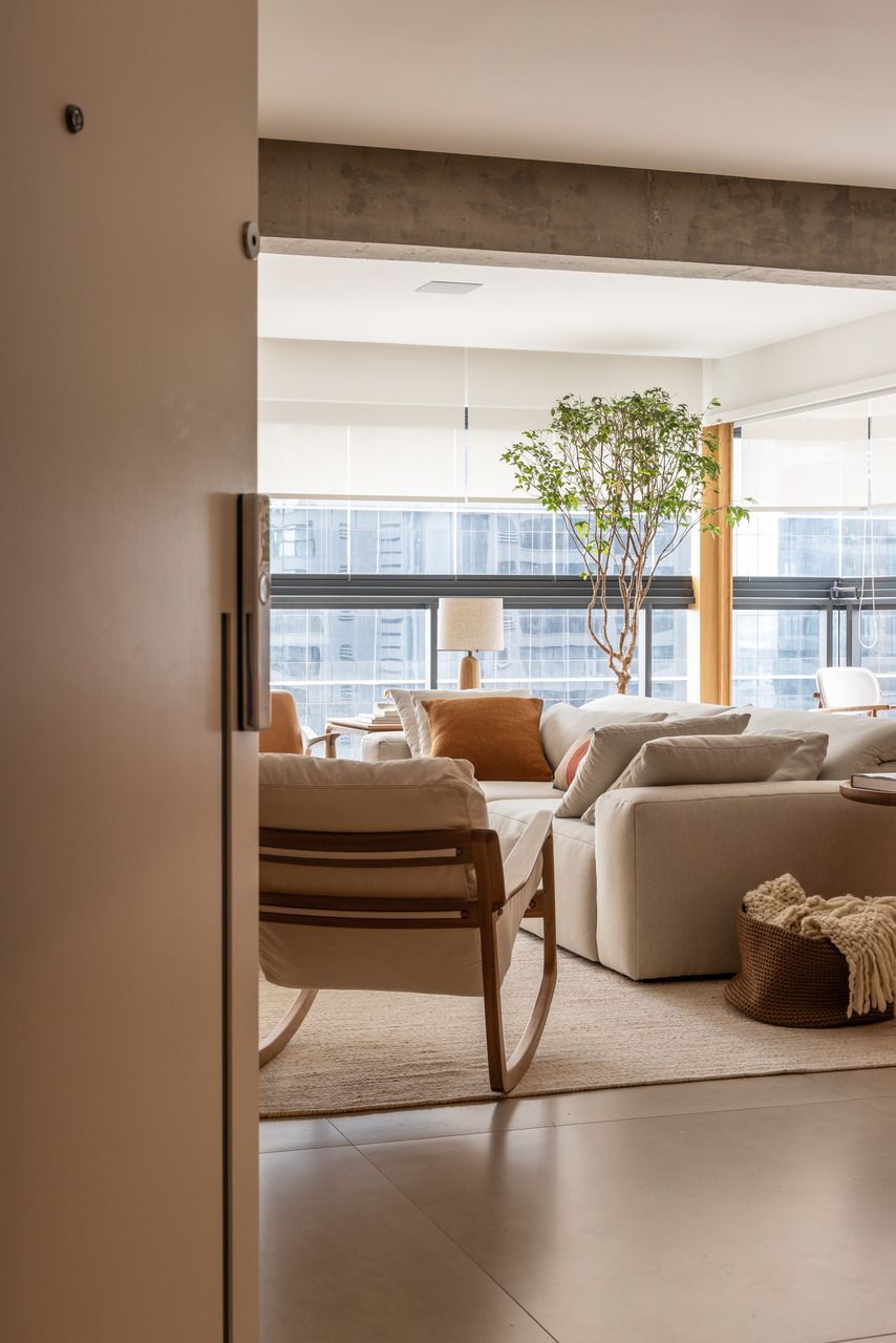 Estou muito animada em trazer para cá mais um Open House gravado em parceria com a Samsung, uma série em que visito projetos inteligentes e muito bem resolvidos que utilizam a tecnologia de forma estratégica para facilitar a rotina e garantir mais qualidade no dia a dia. E o apê da vez, assinado pela Casa33 Arquitetura, é um ótimo exemplo disso. Fui recebida pelas arquitetas Mariana Lebrão e Claudia Moubarak no apartamento de 194m², em São Paulo, pensado para um casal jovem com duas filhas pequenas, e que equilibra muito bem estética, funcionalidade e soluções práticas para a vida real.