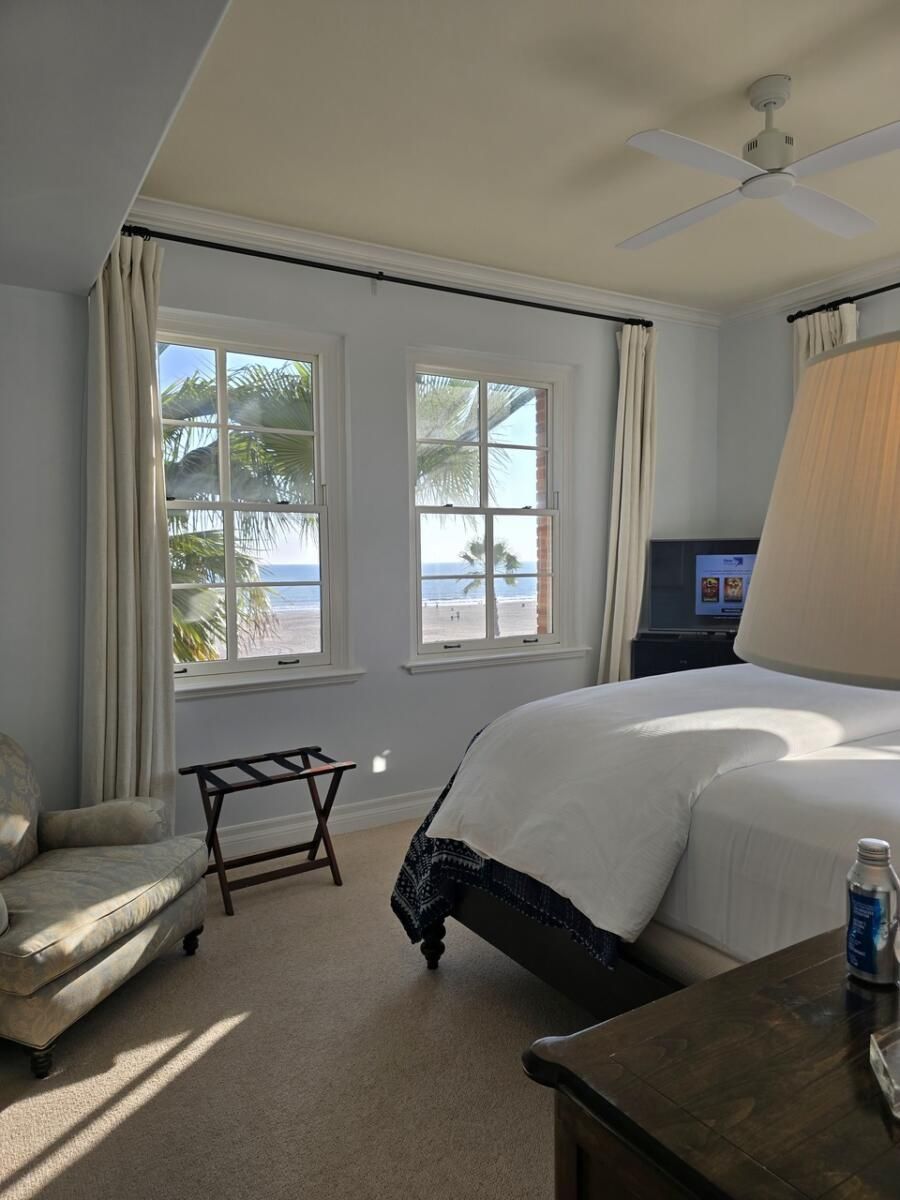 À noite, o bar e o restaurante do hotel ganham vida com música ao vivo, enquanto o pôr do sol pinta o céu de tons dourados e rosados. É aquele tipo de cenário que parece saído de um filme, mas que existe de verdade, e que faz você entender por que o Casa del Mar faz parte do registro nacional de lugares históricos dos Estados Unidos (Hotels of America).