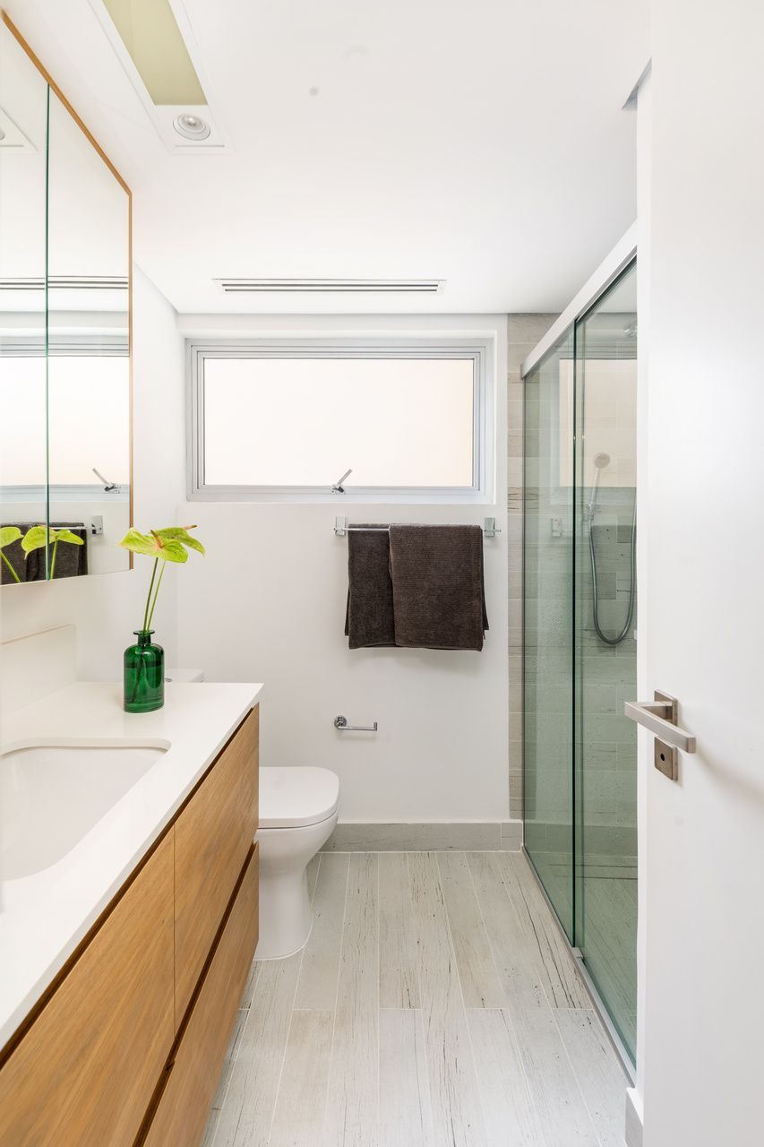Sem filhos por enquanto e com escritórios em cidades diferentes, o casal queria uma casa prática, com espaços integrados e que funcionasse bem para o dia a dia. A ideia era simples: colocar em prática, para eles mesmos, tudo aquilo que já aplicam há anos na casa dos clientes. O ponto de partida, porém, não ajudava muito. O apartamento estava fechado havia anos, em péssimo estado de conservação, escuro e com uma planta retangular que dificultava a entrada de luz e ventilação, já que as janelas ficavam apenas nas extremidades. A solução foi uma intervenção estrutural importante: muitas paredes demolidas, ambientes trocados de lugar e uma renovação completa das instalações elétricas, hidráulicas e dos acabamentos.