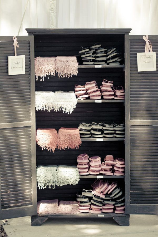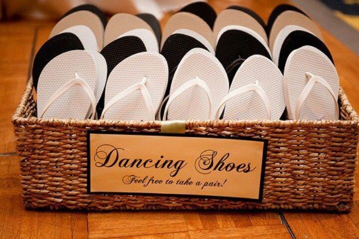 Tenha um cestinho com chinelos disponíveis para garantir que seus amigos dancem a noite inteirinha sem incômodos: