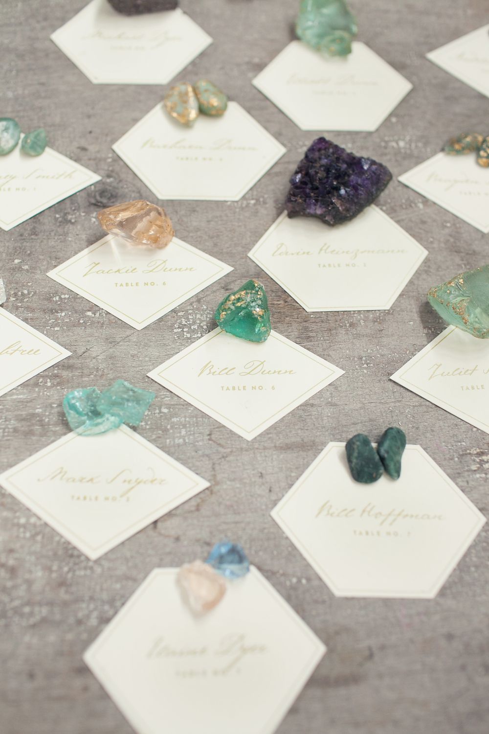 Se a sua comemoração conta com um jantar à mesa, seja criativo na hora de marcar os lugares dos convidados. Crie placements diferentes, como estes: