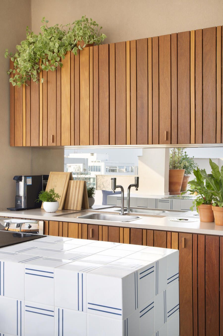 O verde é o seu maior aliado na hora de dar todo o charme e aconchego à varanda gourmet. Você pode optar por crescer um jardim vertical em uma das paredes ou então cultivar sua própria horta!