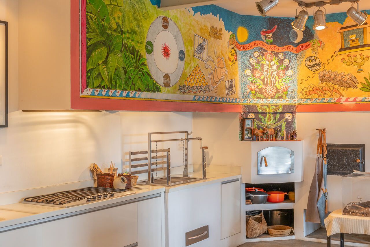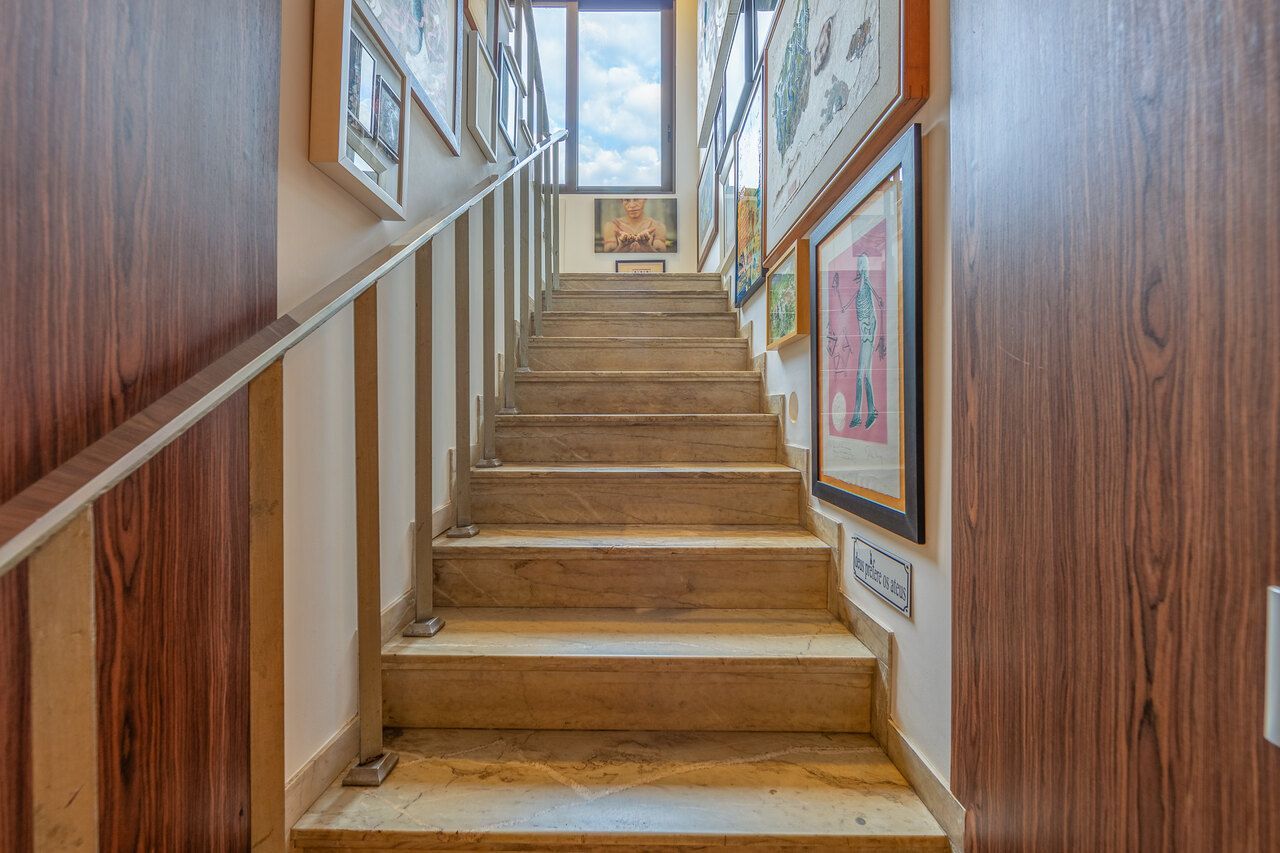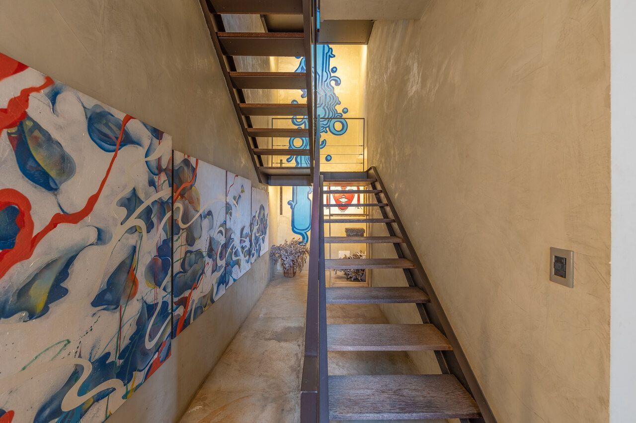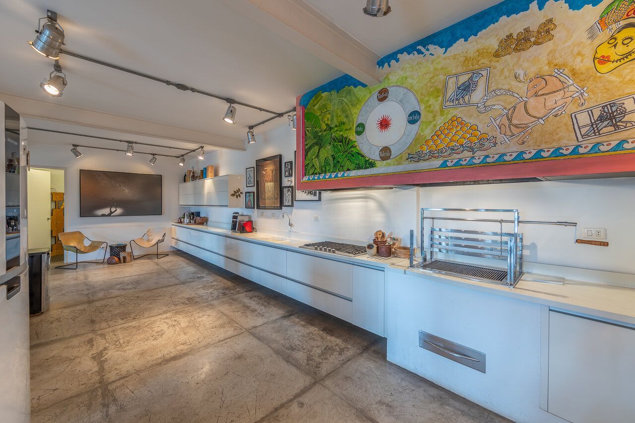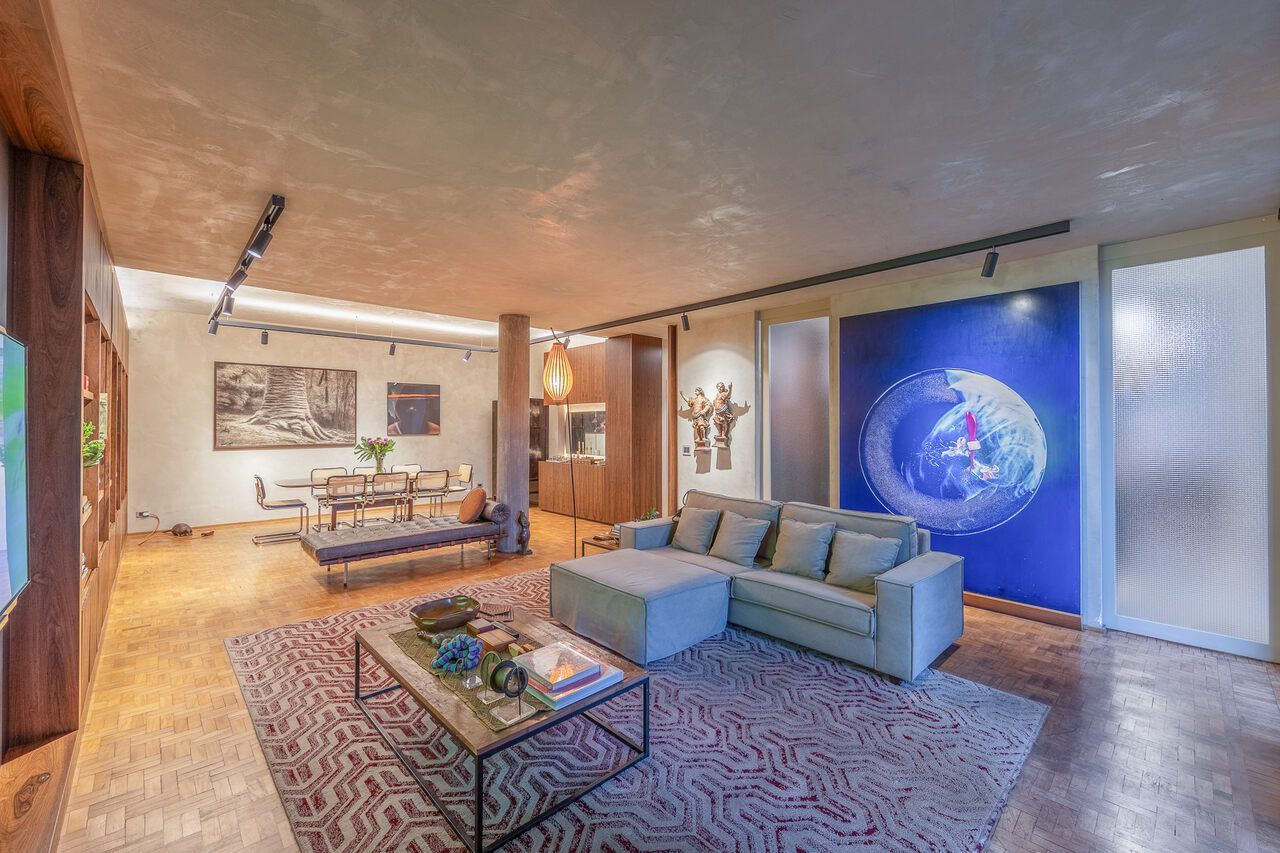 A casa é repleta de obras de arte, algumas inclusive ficarão no imóvel quando for vendido, e muita história, como o restauro do piso do hall de entrada, que ficou incrível.