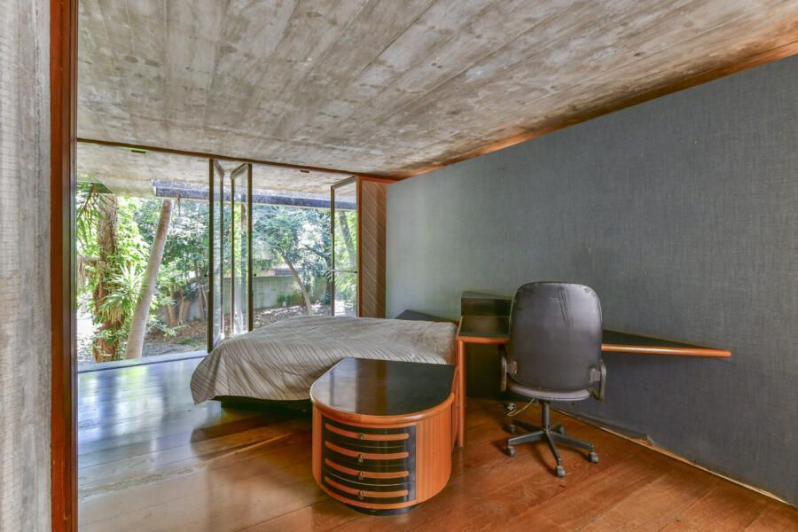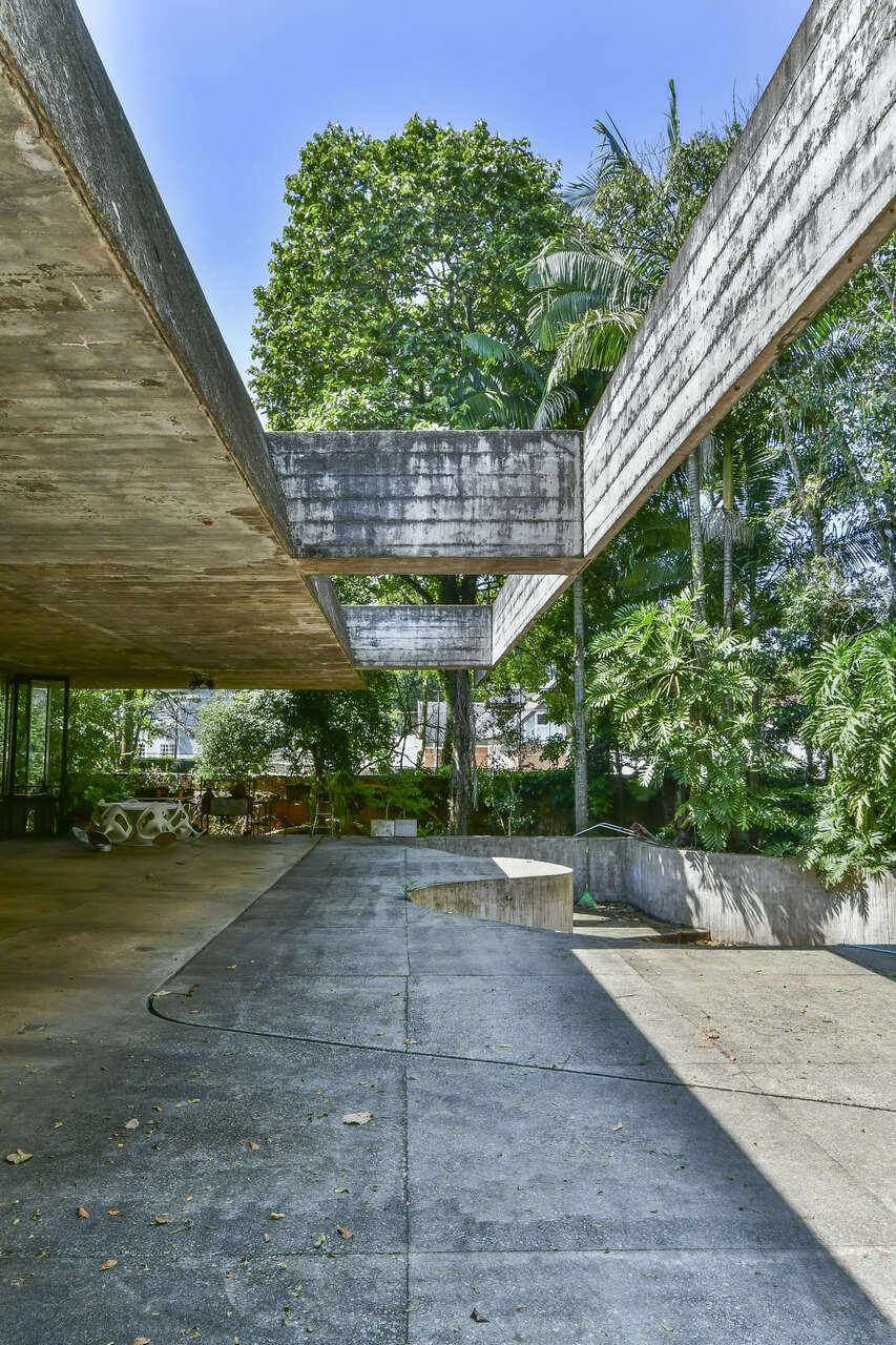 O uso do concreto armado aparente, característico do estilo brutalista, está presente em toda a estrutura. A residência conta ainda com paisagismo assinado por Amélia Bratke e Burle Marx, dois nomes reconhecidos no campo do design de jardins. Clique aqui e veja mais sobre essa casa.