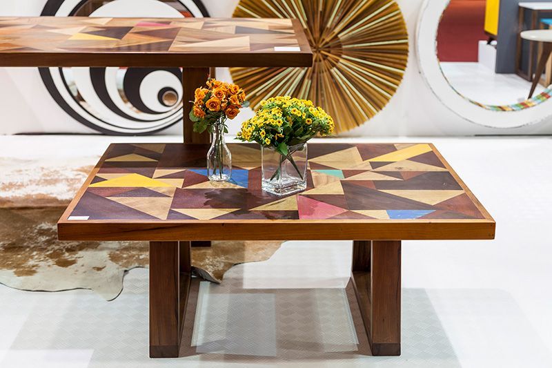 Mais uma vez, o padrão geométrico fazendo sucesso! Mas dessa vez no tampo dessas mesas da Insight: