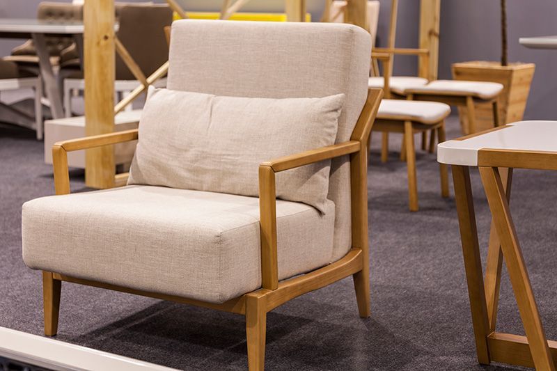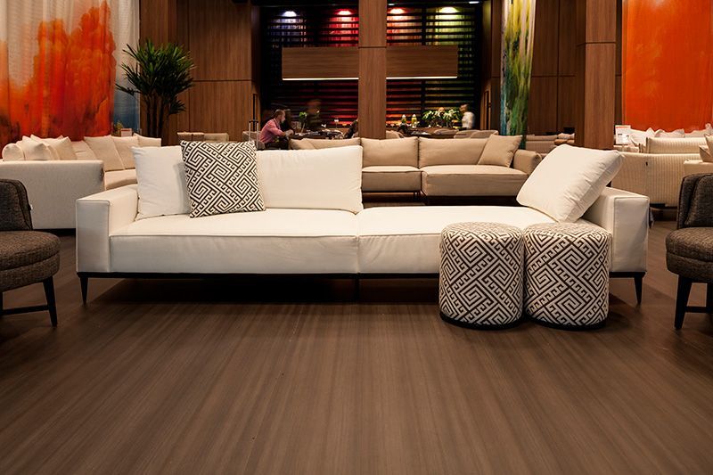 Gostei do sofá e da refêrencia artesanal no décor do estande dos Estofados Ferrari.