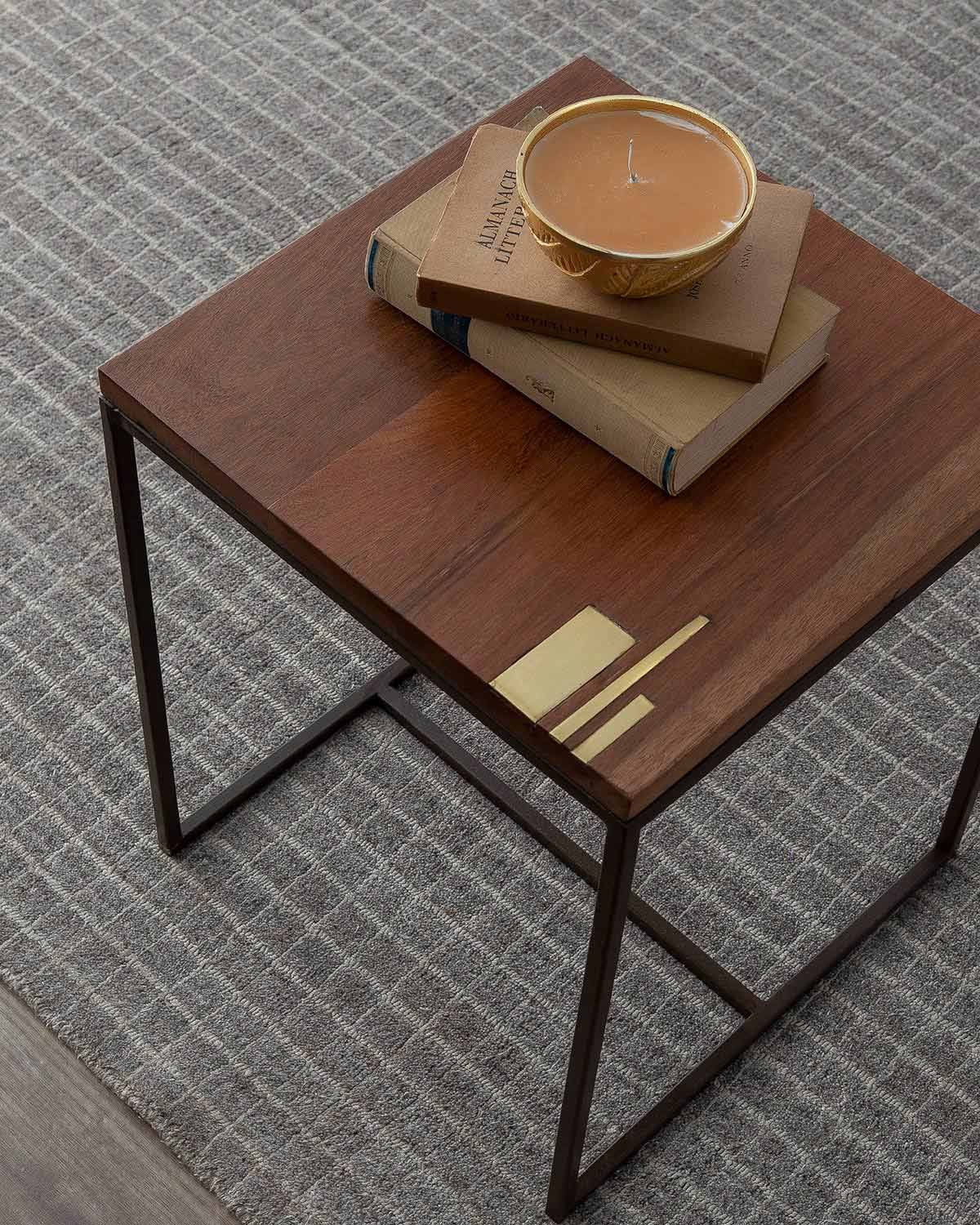 Mesa Estúdio Trindade para Semana Criativa de Tiradentes; livros Vanessa Taques; vela Sarquis Samara; tapete Hariz Haus.
