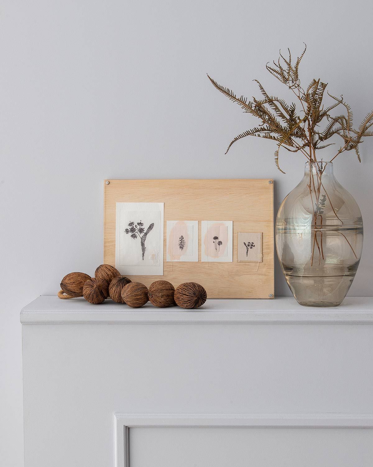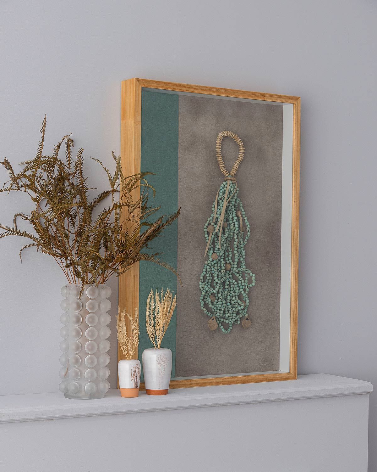 Quadro Vsta; vaso transparente Lucatti; dupla de vasos Massa Branca.