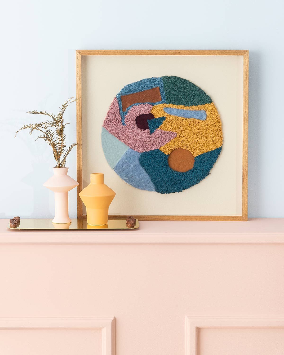Quadro Alex Rocca Design; bandeja Estúdio Trindade e Rondinelly para Semana Criativa de Tiradentes; vasos We Make.