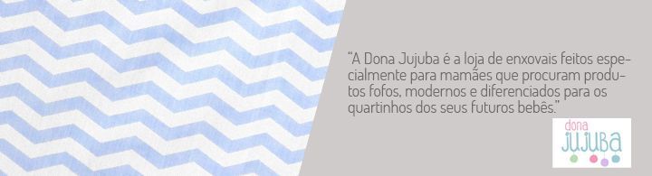 Encontrar roupas de cama e acessórios moderninhos para quartinhos de bebê nem sempre é fácil. Se você está passando por essa pequena dificuldade, vale conhecer a loja Dona Jujuba. A marca trabalha com enxovais feitos especialmente para mamães que procuram produtos fofos, superatuais e diferenciados para decorar o cantinho dos seus futuros pequenos. Todos os produtos são feitos com muito cuidado, com estampas lindas, cores clarinhas e muita originalidade. Ahhh, se você preferir, a Dona Jujuba trabalha também com produtos sob medida! Basta escolher o modelo e quais tecidos quer utilizar que eles desenvolverão as peças com carinho e exclusivamente para você.