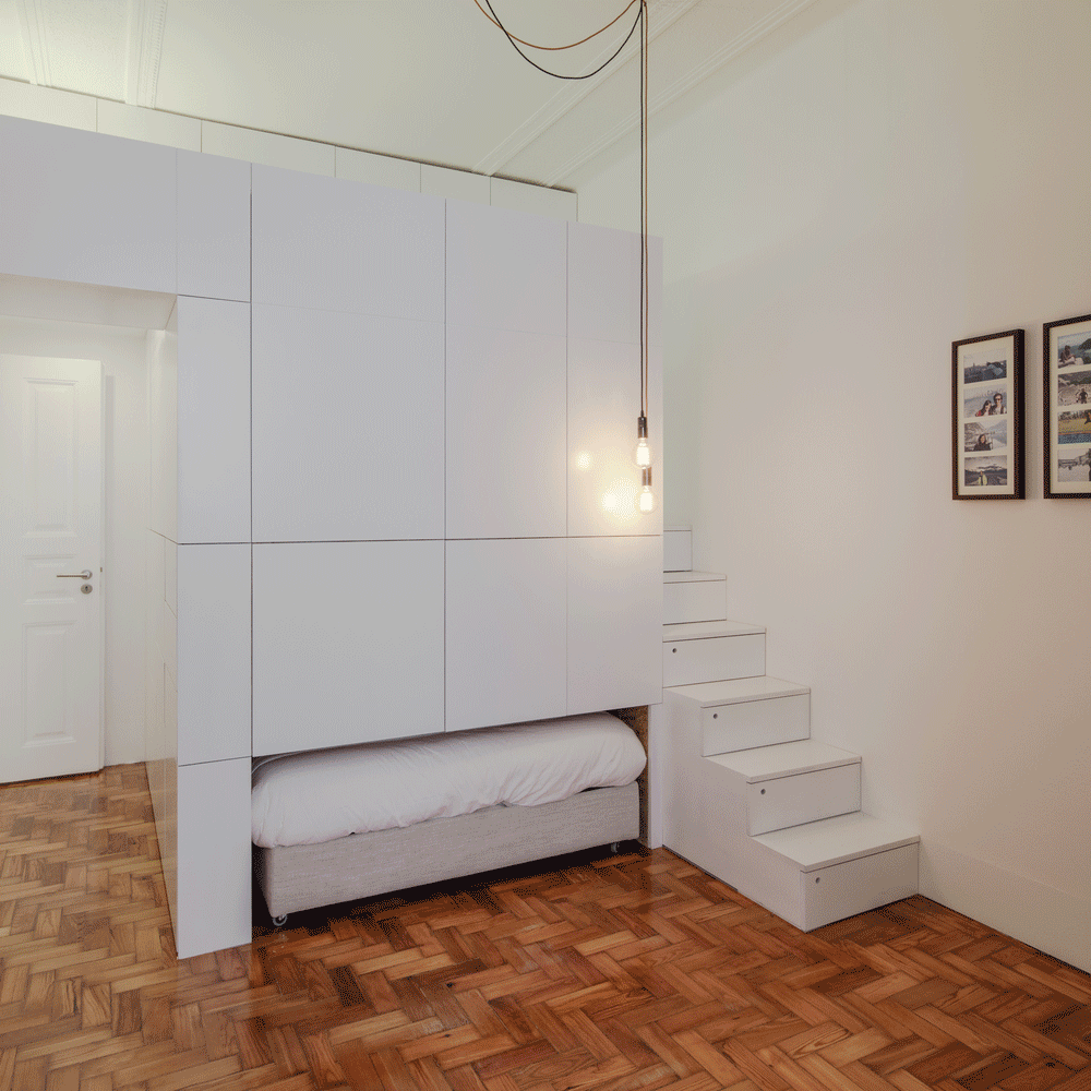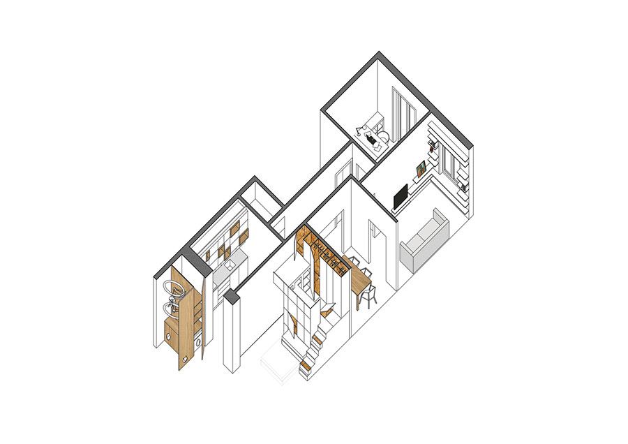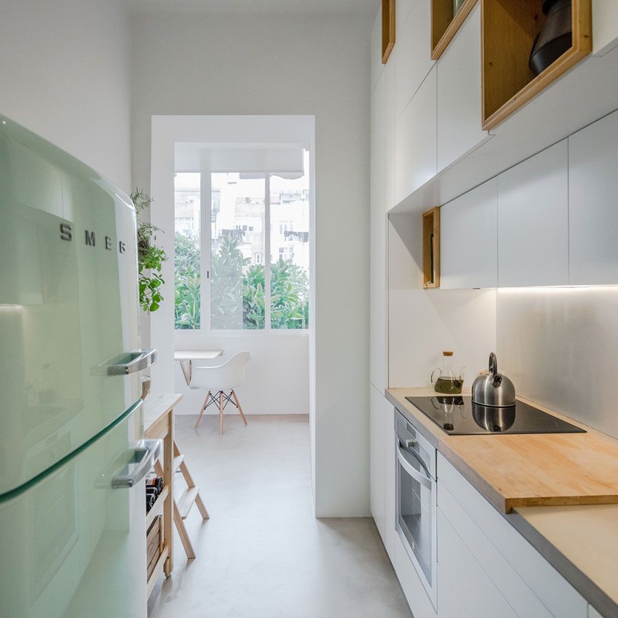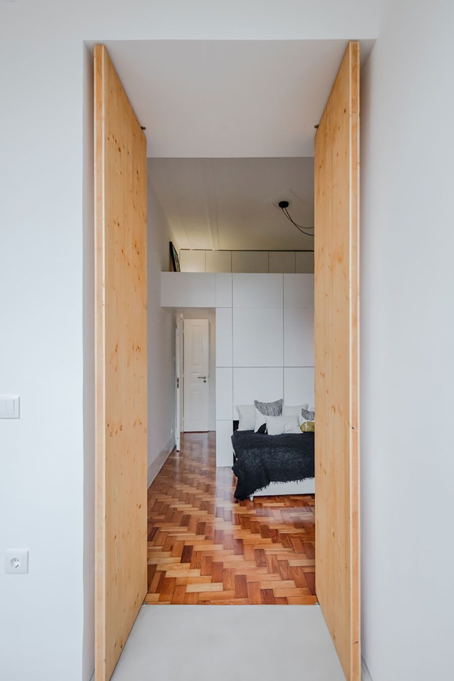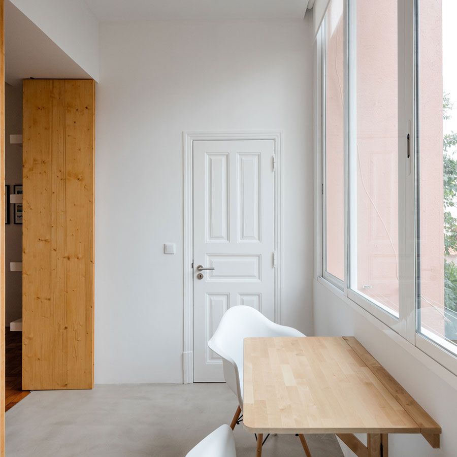 Enfim, todo esse prólogo para te mostrar esse apê aqui de 70m² da portuguesa Inês Brandão. Ela é arquiteta e opto por um estilo de vida bem minimal, com poucos metros, casa e escritório num só lugar, poucos elementos e muita marcenaria, daquelas das boas mesmo.
