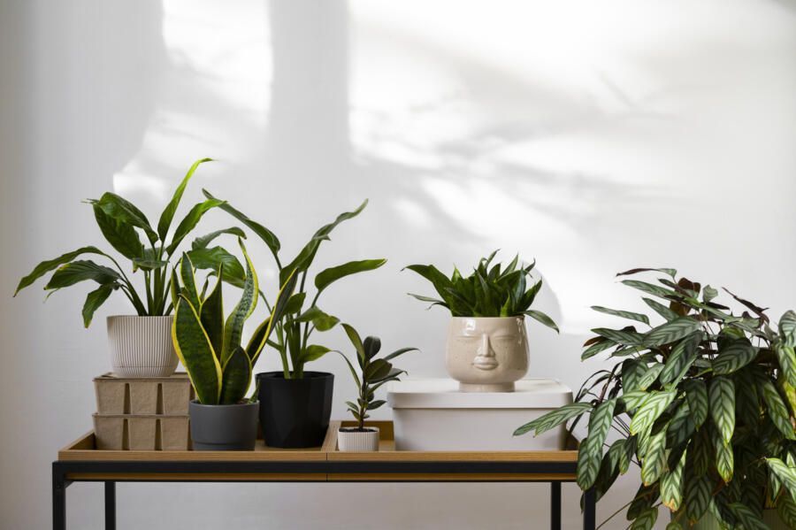 Por fim, o verde traz vida e frescor para qualquer espaço. Vasos com plantas em diferentes alturas e suportes criam movimento visual e estabelecem conexão com a natureza, mesmo em apartamentos pequenos ou sem varanda.