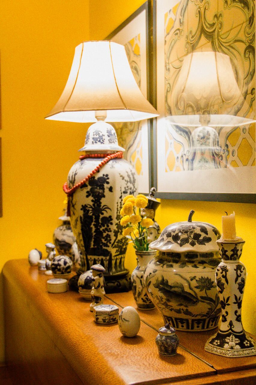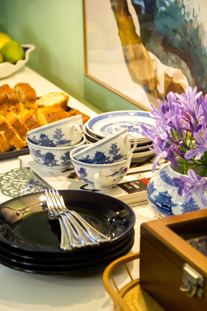 É claro que o resultado não poderia ser diferente: uma visita descontraída, mostrando todo o seu apê colorido e repleto de garimpo, e colhendo referências valiosas de cada cantinho do projeto de 94m2. É difícil acreditar que a reforma completa do apartamento aconteceu em apenas 45 dias! São muitas porcelanas, recordações de viagens, tapeçarias selecionadas a dedo e mobiliários que contam histórias.