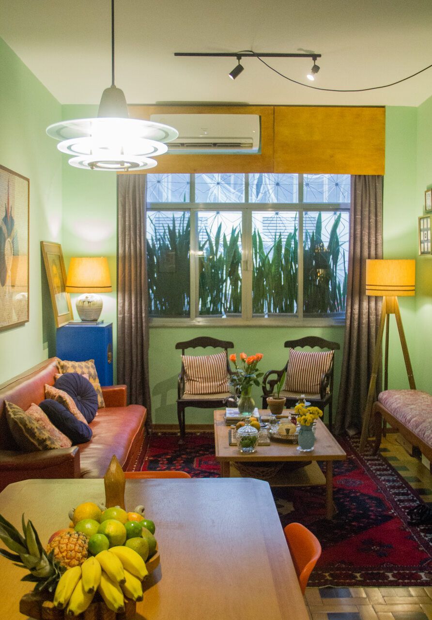 Sávio Mello: Eu resolvi ter um apartamento colorido depois de conhecer o apartamento provisório da Lucila. É uma solução econômica, de fácil manutenção, e que muda muita coisa. Vendo o OH do Jean de Just e do Mike Álvares, me apaixonei pelo verde e decidi pintar minha sala. O Hall amarelo veio trazer iluminação para um cômodo da casa sem luz natural. A combinação do verde com o amarelo não me deu medo porque, no mesmo OH do Jean de Just, ele usa essa combinação e me agradou. Para o terracota do quarto eu me inspirei no apartamento da Constanza Pascolato, num vídeo em que ela abriu suas portas para a TV Vogue.