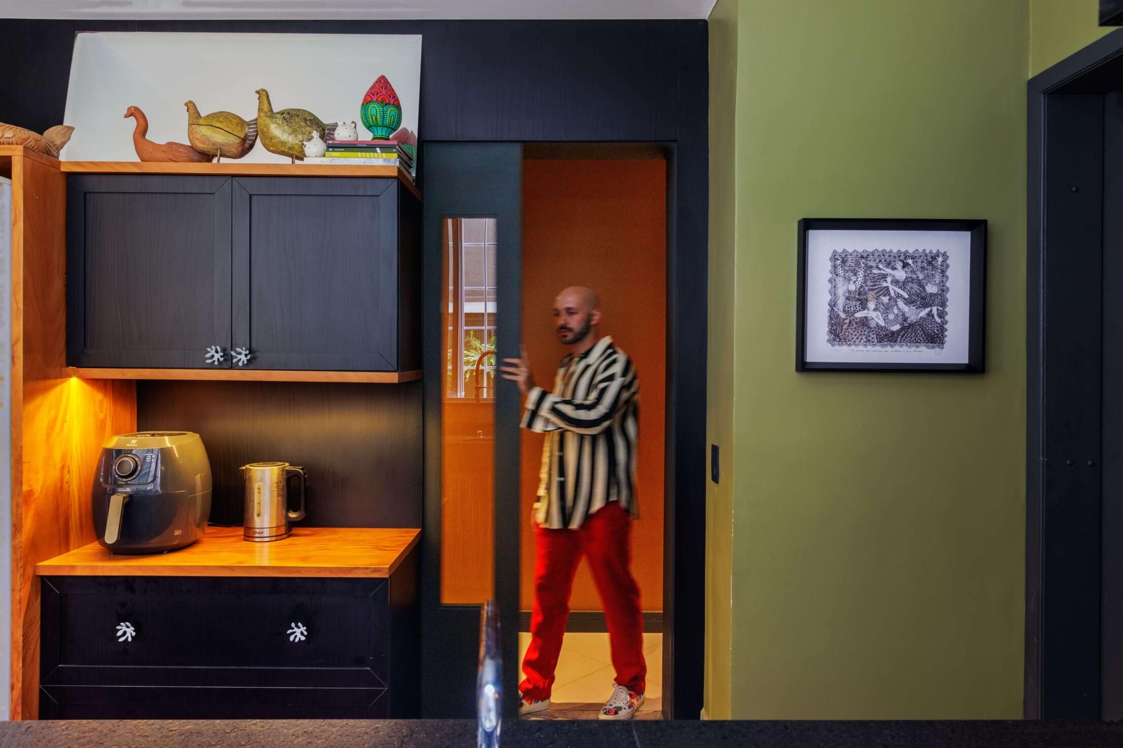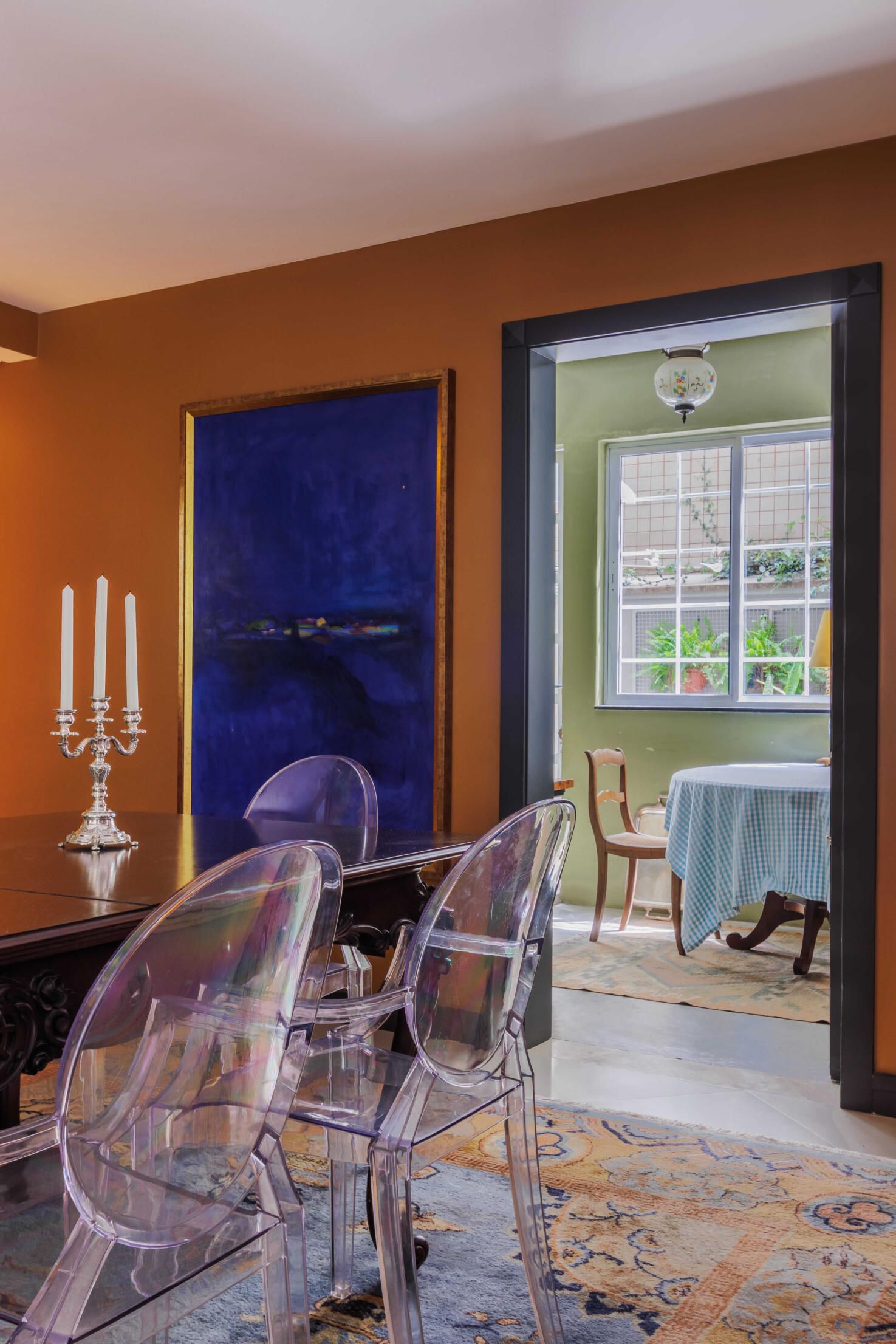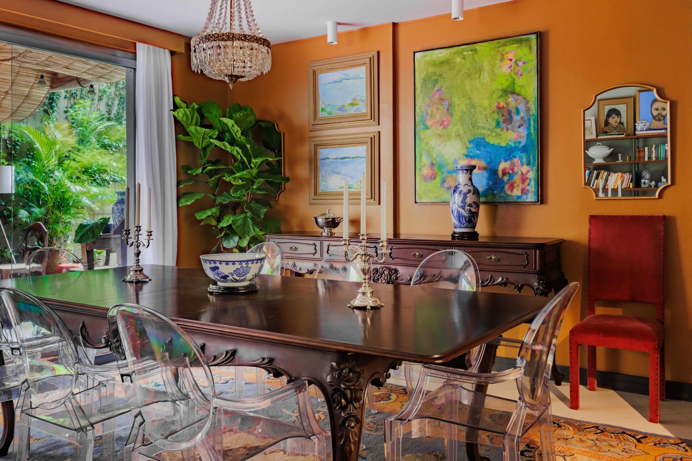 Com 170m² esse apartamento garden é do designer de interiores Carlos Reichmann, Bigorrilho, Paraná. O profissional classifica o projeto como quiet maximalism, um maximalismo mais contido, focado mais no uso das cores e curadoria de peças.