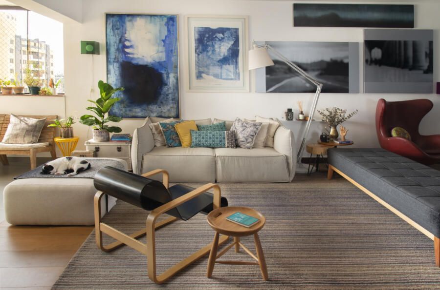 Filha do arquiteto Carlos Bratke e da arquiteta paisagista Amélia Bratke, o apartamento de 145m² é repleto de fotografias, artesanatos e itens de memória afetiva. Para deixar o projeto, assinado pela irmã Bárbara Bratke, ainda mais elegante e especial, móveis como a poltrona do renomado designer finlandês Alvar Aalto compõem a sala de estar.