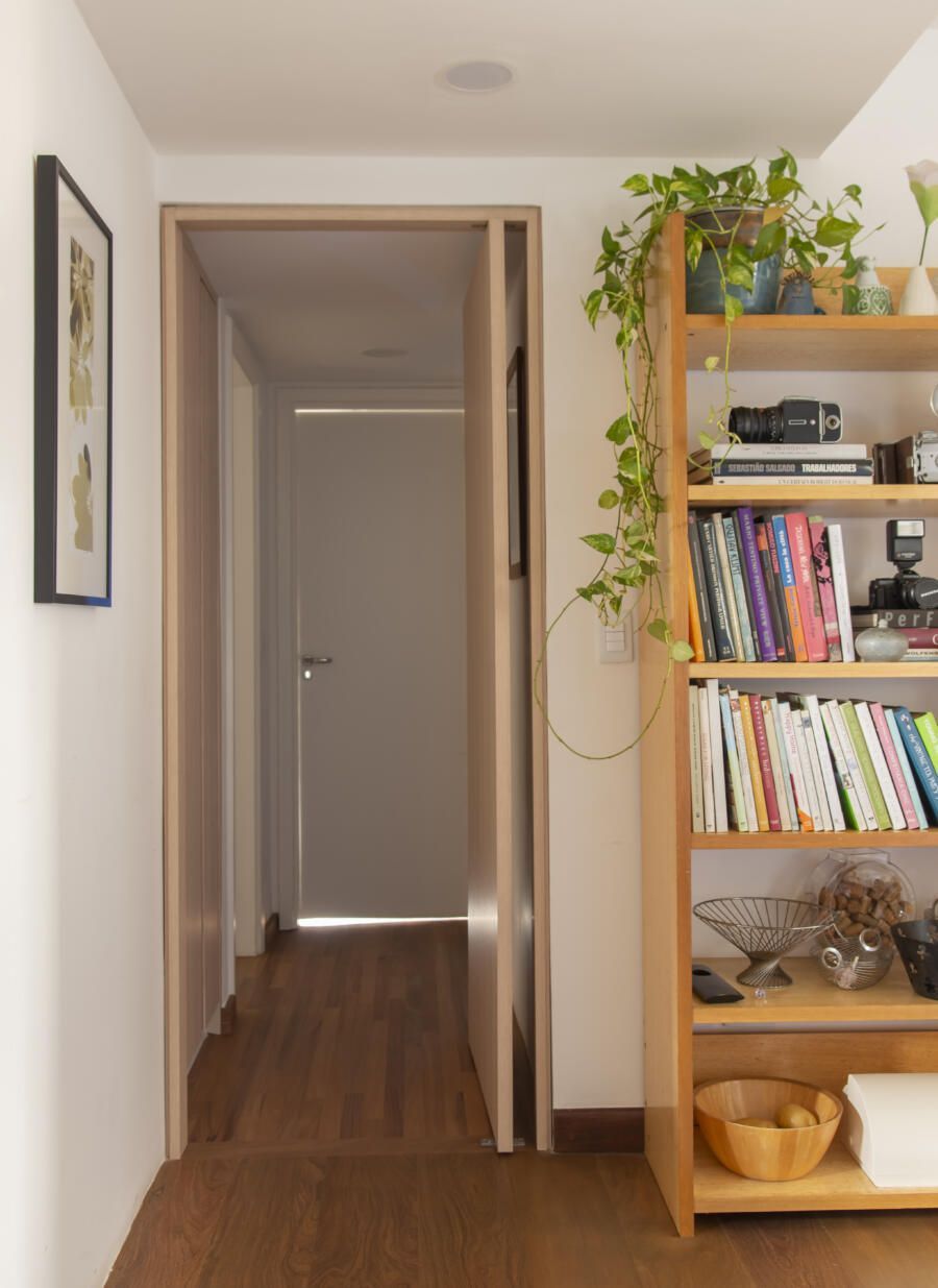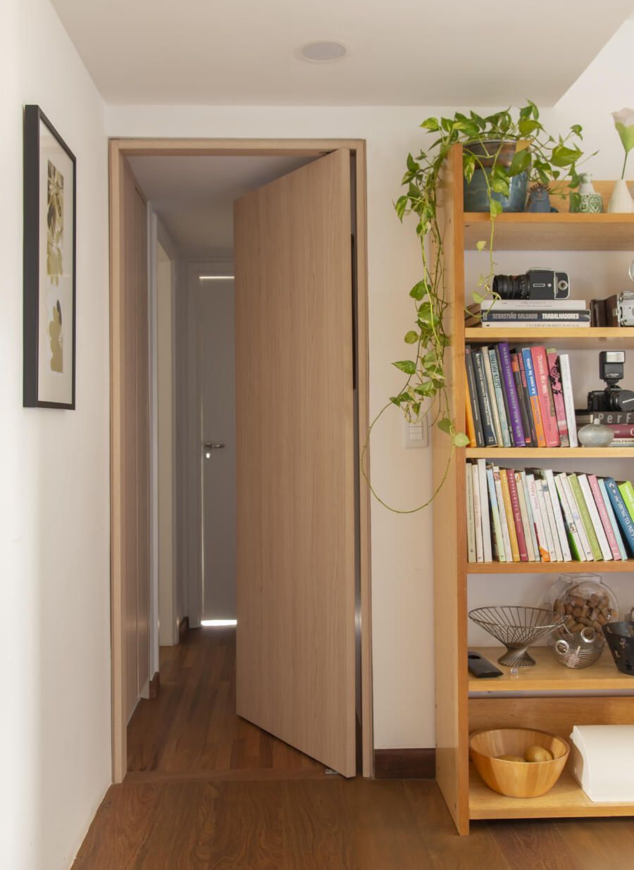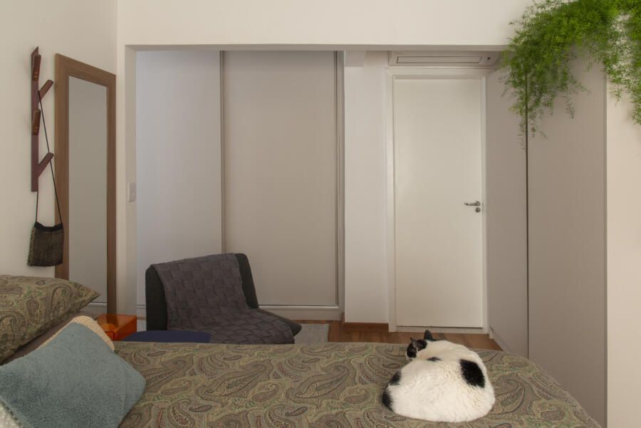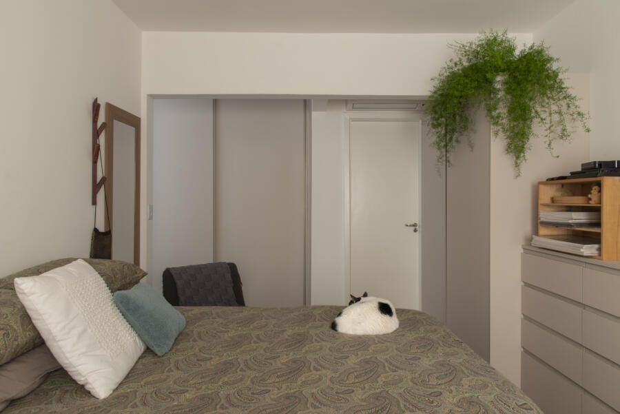 Cacá Bratke: A inspiração do projeto foi adaptar o apartamento para o meu estilo de vida. Na área social, o objetivo era criar um espaço com uma cozinha aberta e uma sala maior onde coubessem todas as coisas que eu tenho, como objetos, quadros, mobiliário, para que fosse agradável receber e ter o espaço de ver TV e descansar também. Na área íntima, o objetivo era atender minhas demandas do dia a dia transformando um dos quartos em suíte e o outro em escritório. Além disso, havia a questão também de aumentar o numero de armários – tudo isso casando com as referências de cores e materiais que me agradavam. As cores vieram de uma capa antiga da revista Casa Claudia que nunca saiu da minha cabeça.