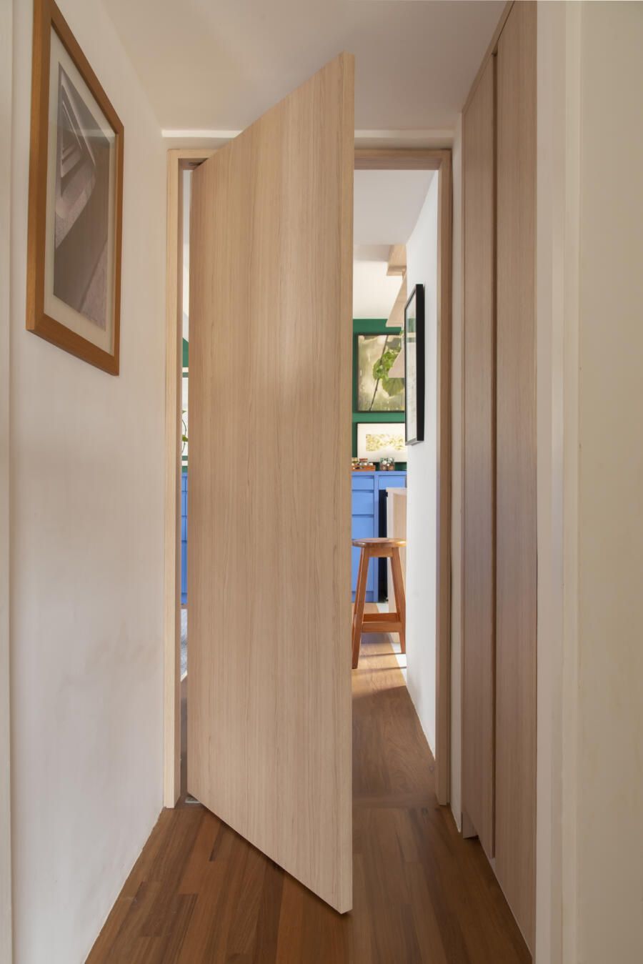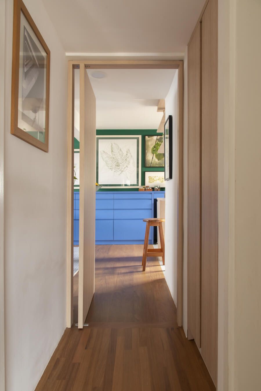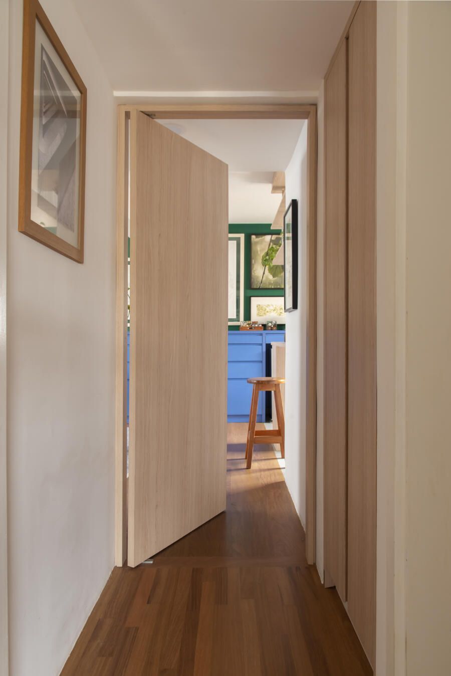 Cacá Bratke: A inspiração do projeto foi adaptar o apartamento para o meu estilo de vida. Na área social, o objetivo era criar um espaço com uma cozinha aberta e uma sala maior onde coubessem todas as coisas que eu tenho, como objetos, quadros, mobiliário, para que fosse agradável receber e ter o espaço de ver TV e descansar também. Na área íntima, o objetivo era atender minhas demandas do dia a dia transformando um dos quartos em suíte e o outro em escritório. Além disso, havia a questão também de aumentar o numero de armários – tudo isso casando com as referências de cores e materiais que me agradavam. As cores vieram de uma capa antiga da revista Casa Claudia que nunca saiu da minha cabeça.