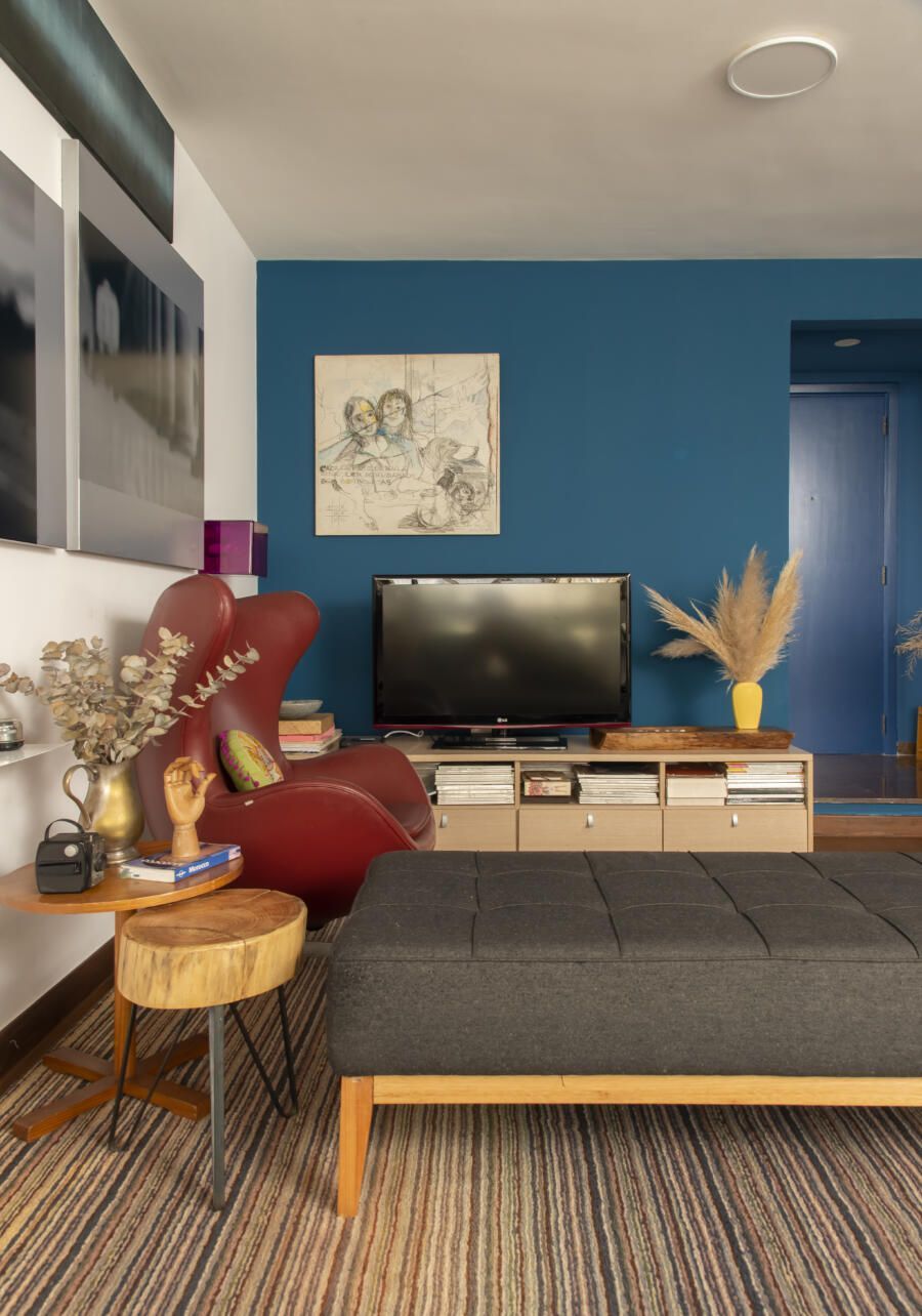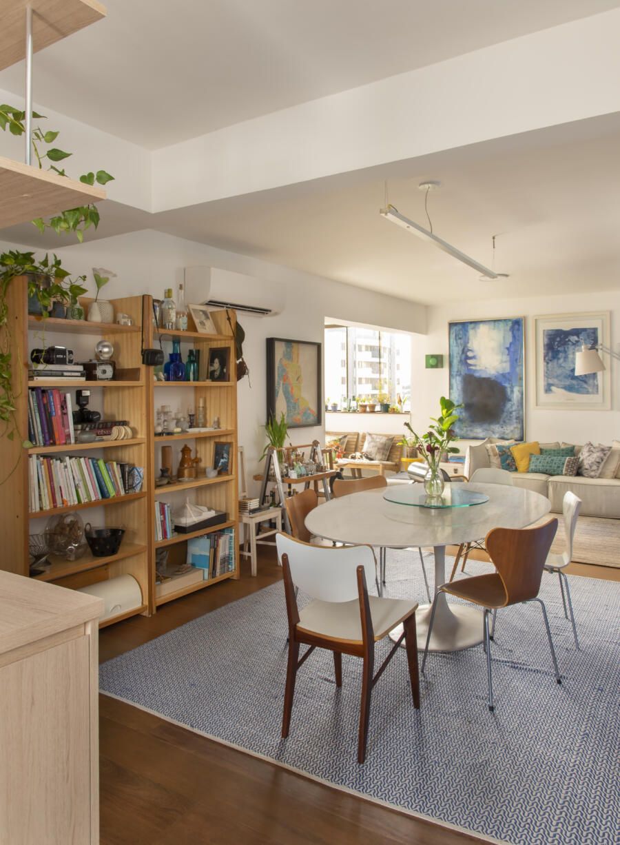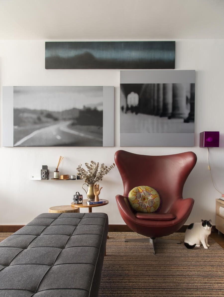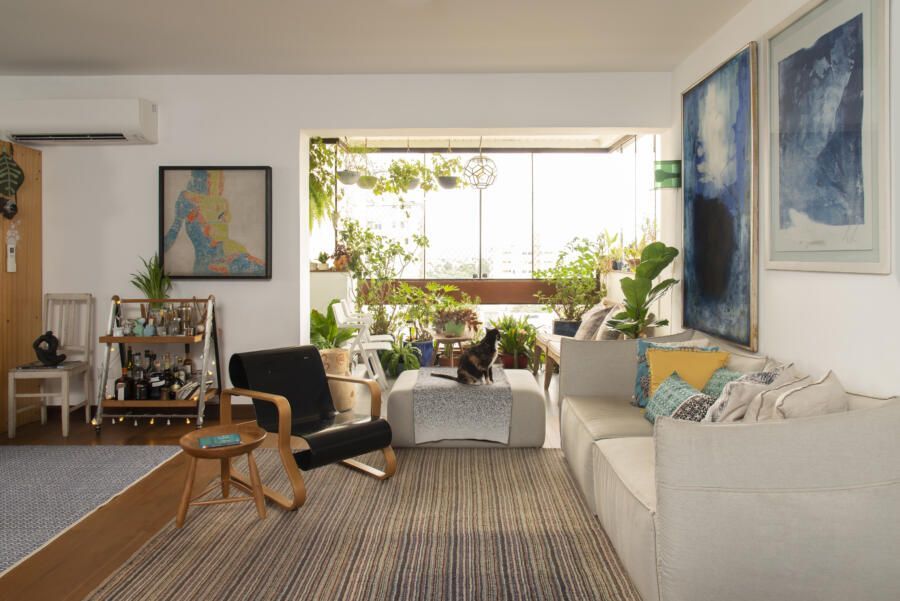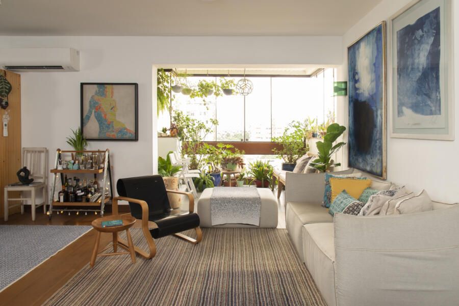 Filha do arquiteto Carlos Bratke e da arquiteta paisagista Amélia Bratke, o apartamento de 145m² é repleto de fotografias, artesanatos e itens de memória afetiva. Para deixar o projeto, assinado pela irmã Bárbara Bratke, ainda mais elegante e especial, móveis como a poltrona do renomado designer finlandês Alvar Aalto compõem a sala de estar.
