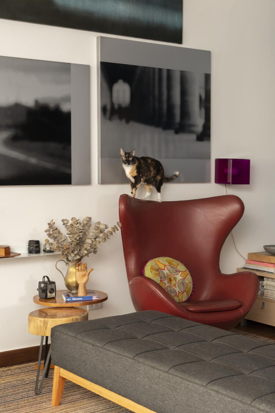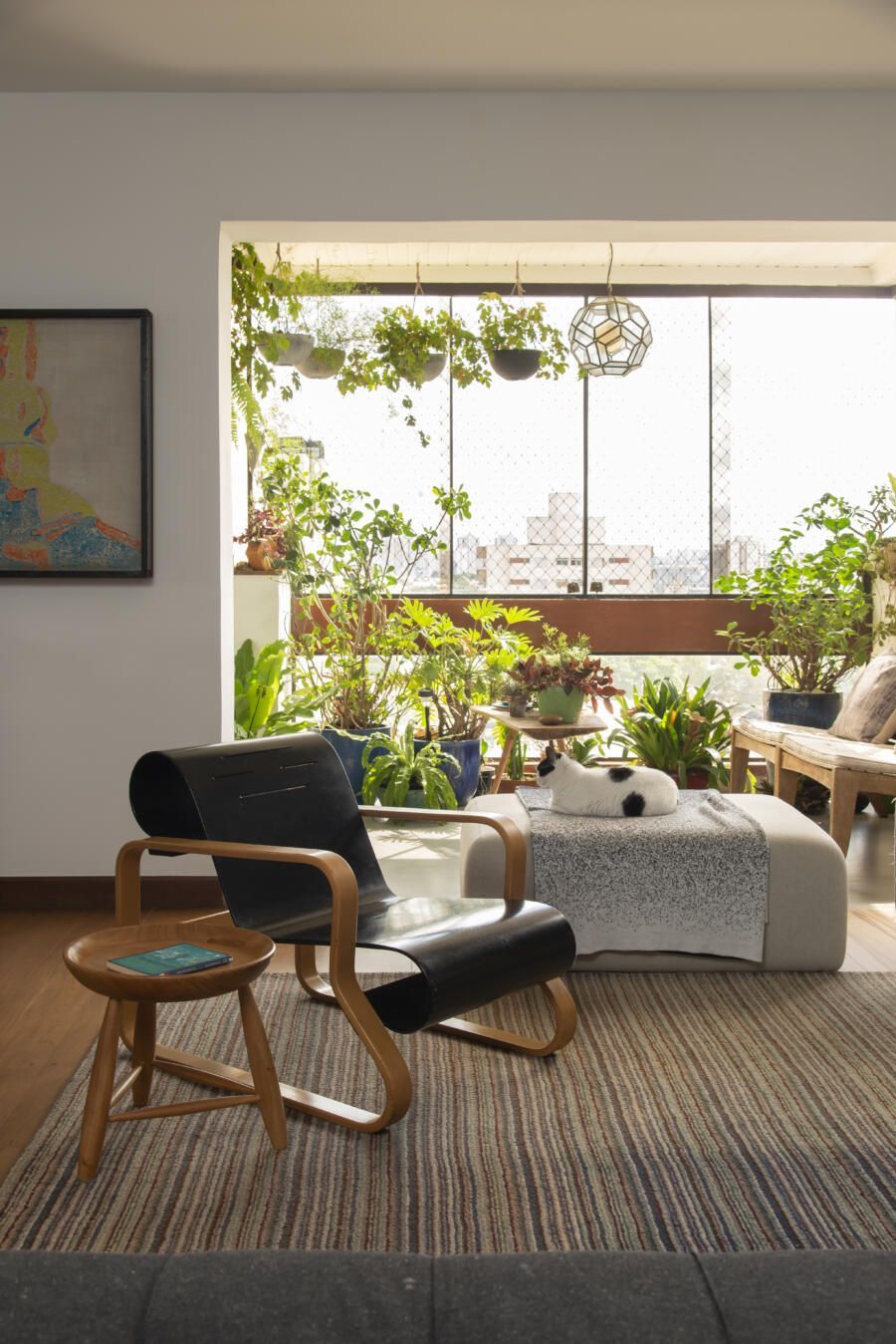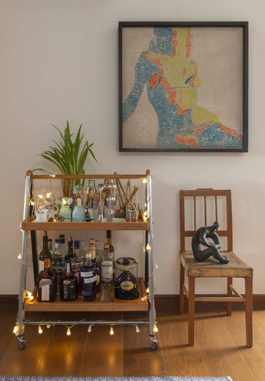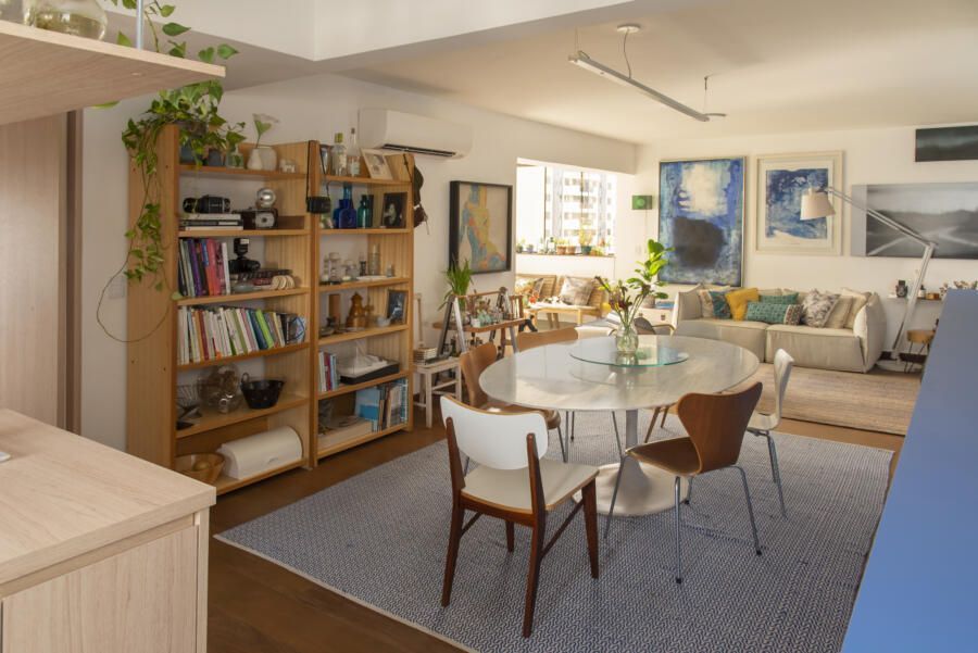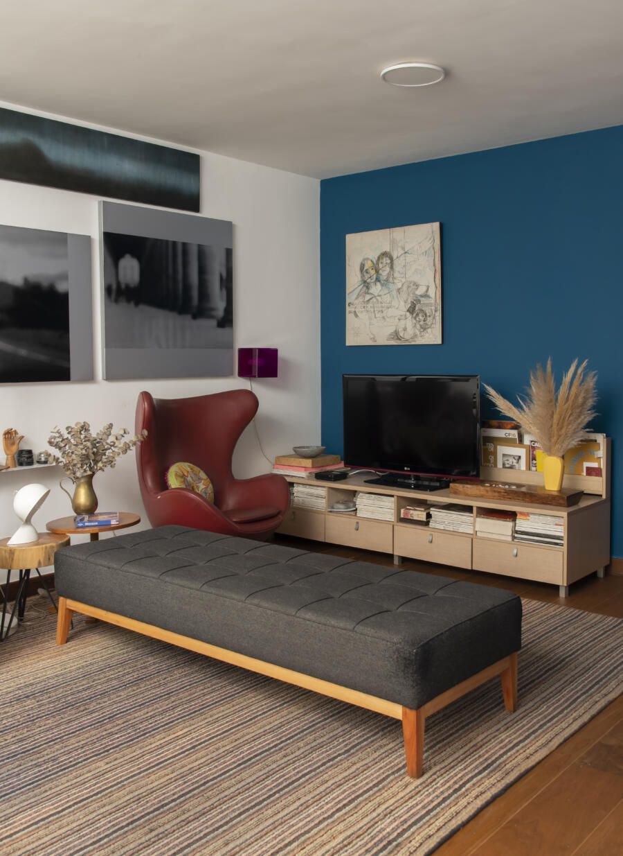 Filha do arquiteto Carlos Bratke e da arquiteta paisagista Amélia Bratke, o apartamento de 145m² é repleto de fotografias, artesanatos e itens de memória afetiva. Para deixar o projeto, assinado pela irmã Bárbara Bratke, ainda mais elegante e especial, móveis como a poltrona do renomado designer finlandês Alvar Aalto compõem a sala de estar.