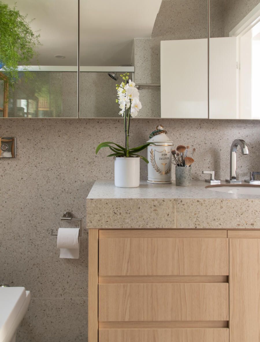 Cacá Bratke: Uma boa dica é colocar o porcelanato ao invés do granilite, que até então era minha referência, assim como os tampos de porcelanato. Eles ficam mais baratos do que o Corian ou Silestone, por exemplo, e criam um visual unificado sem muitos tipos de materiais diferentes.