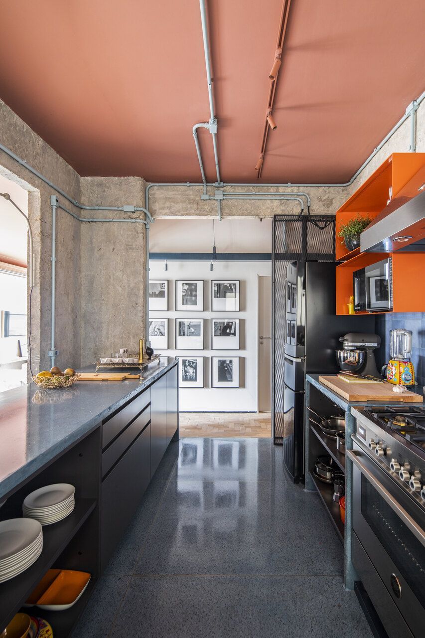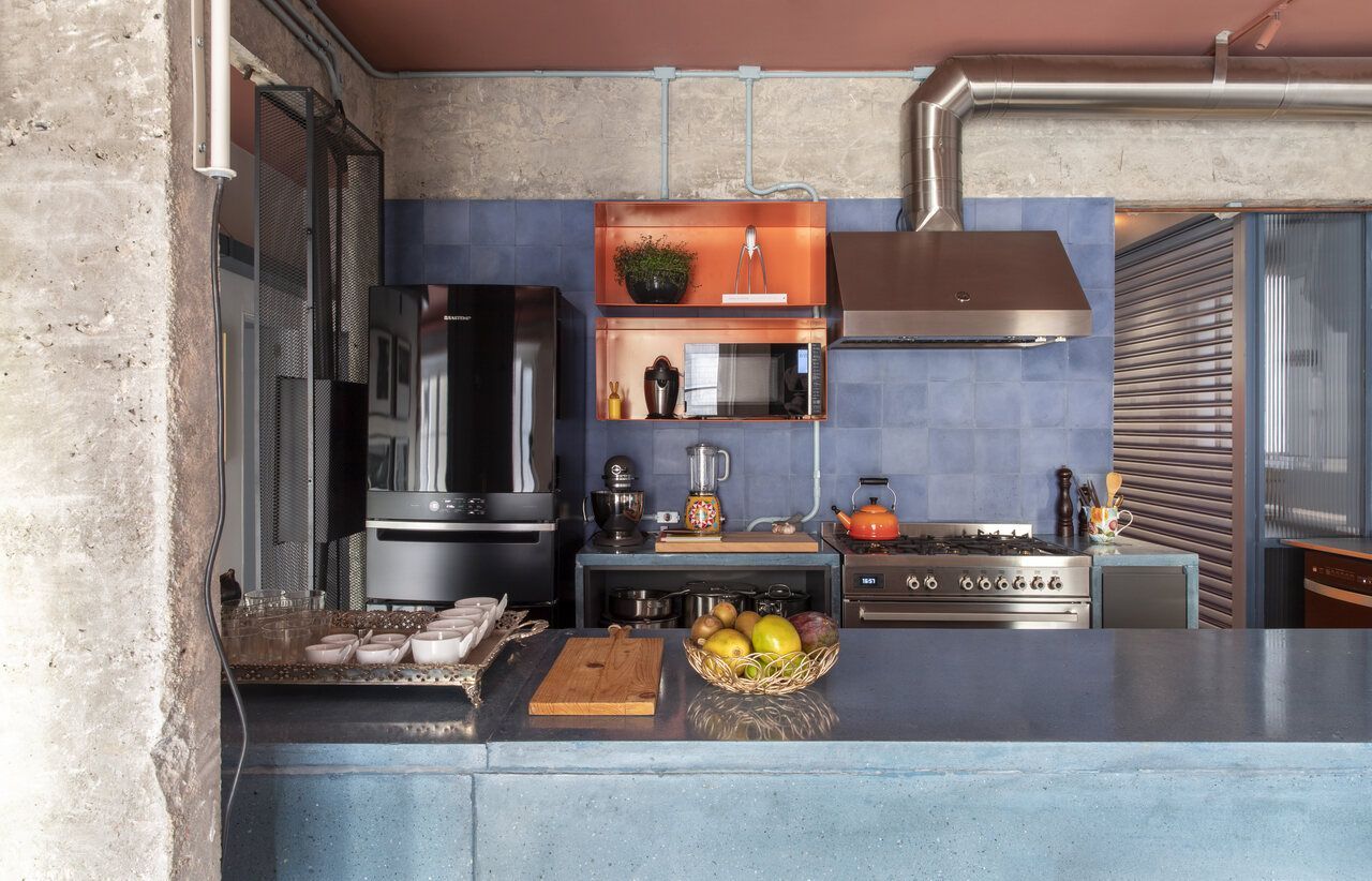A sala integrada com a cozinha é um dos principais pontos do projeto, o casal gosta de cozinhar e receber convidados, e o escritório dedicou atenção especial para essa área.