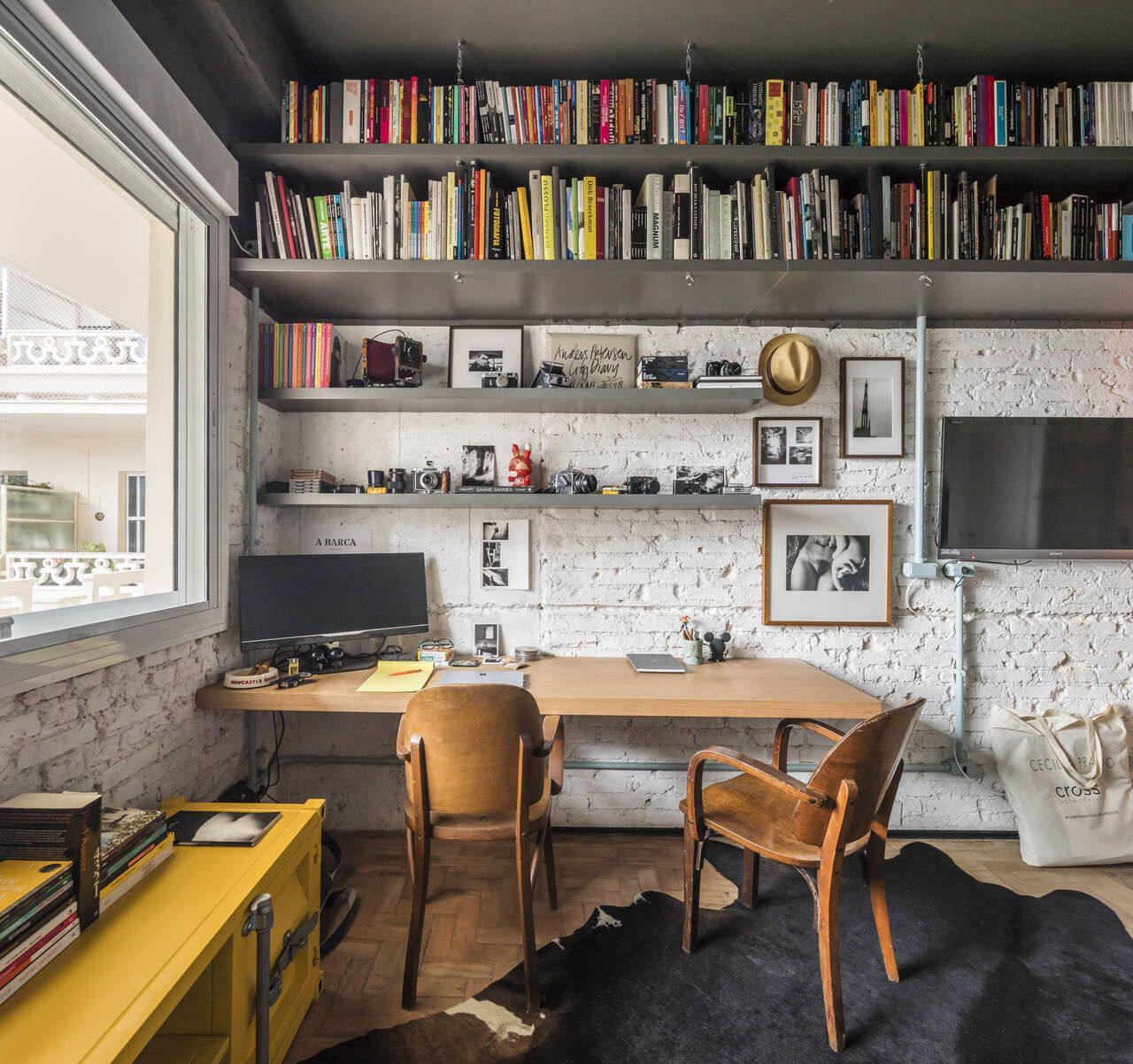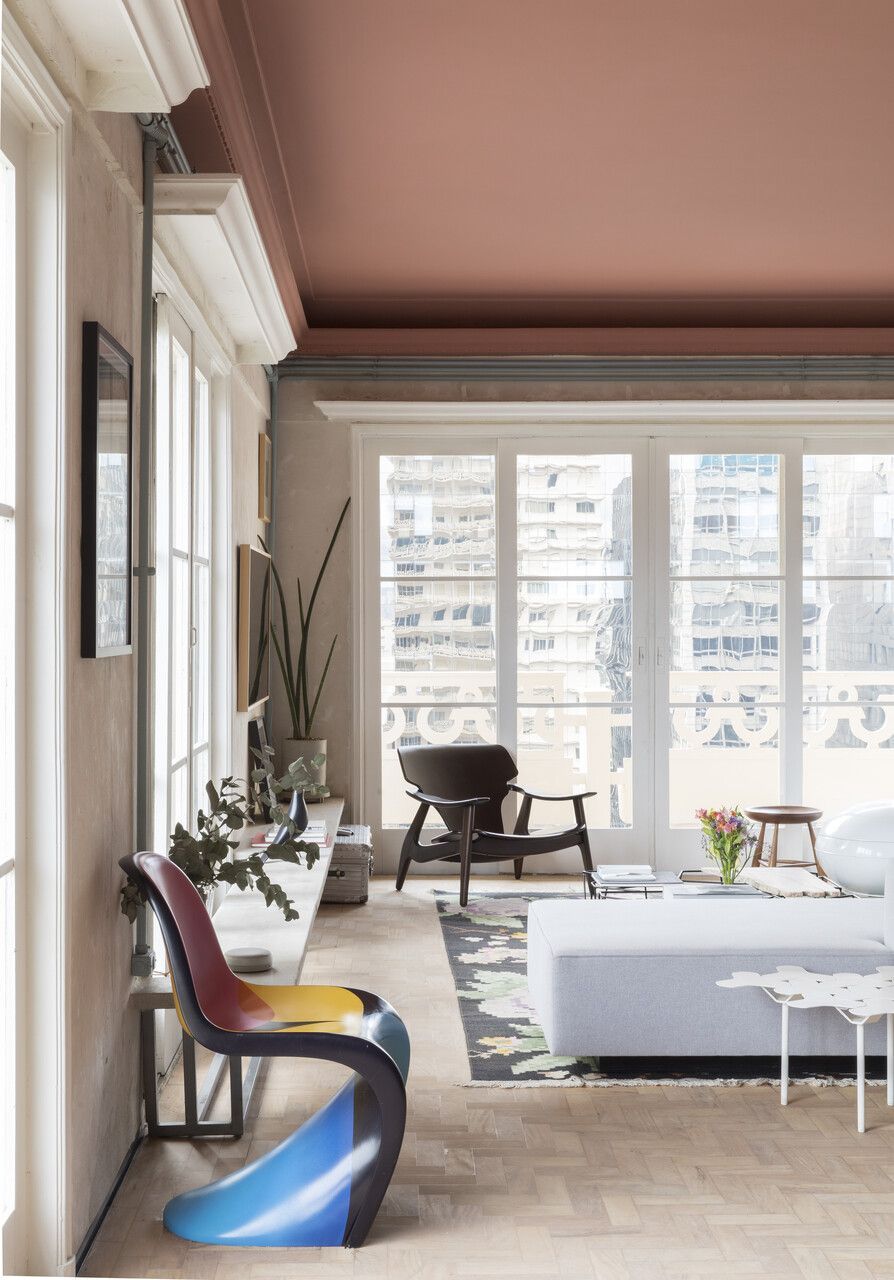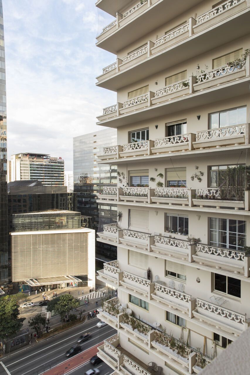 Um aspecto para se destacar é a vista da sala e dos quartos para a Avenida Paulista. Além disso, nossa primeira opção foi buscar mobiliários brasileiros, como a cadeira Lúcio e a poltrona Diz, do Sergio Rodrigues.