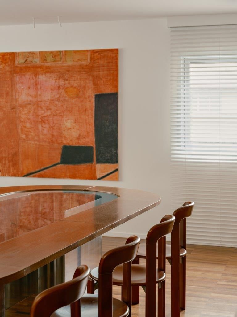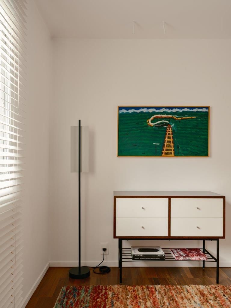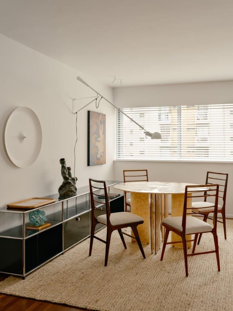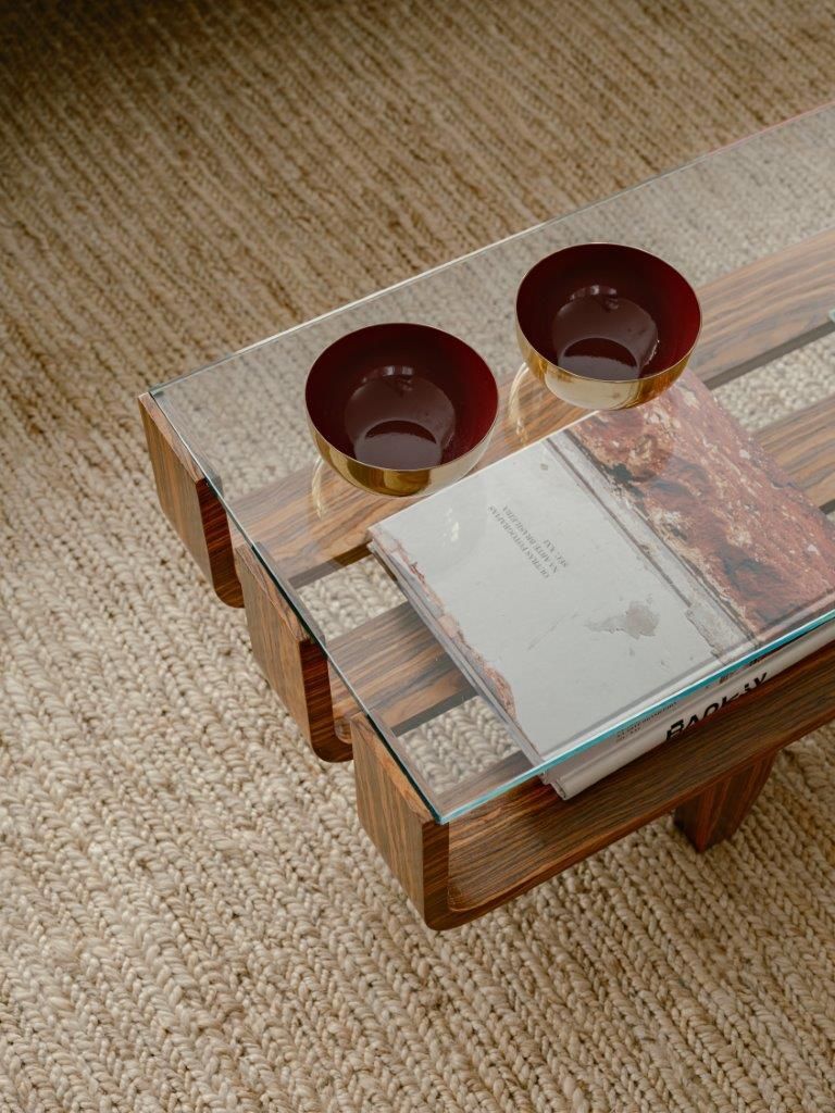Eu mostro também as áreas de convivência, os cantinhos criados para tornar o ambiente mais acolhedor, as peças garimpadas e restauradas, e os elementos que carregam história. A curadoria é parte essencial do projeto: obras de arte brasileira, mobiliário de diferentes épocas e criações autorais convivem de maneira orgânica, reforçando a identidade do espaço sem recorrer a fórmulas prontas.