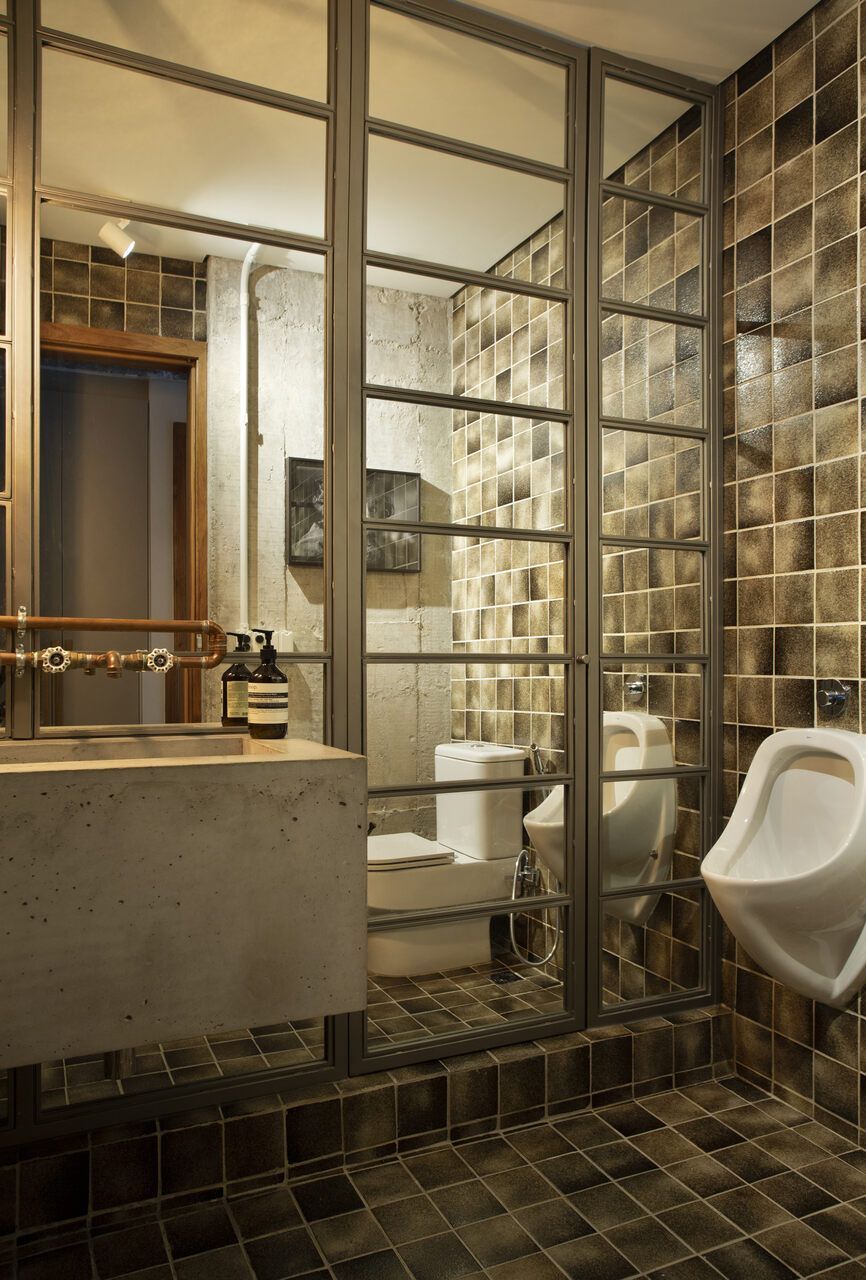 Além das surpresas originais, muito de seu novo layout também surpreende por suas soluções inteligentes e autênticas. O lavabo, por exemplo, pode parecer um cômodo qualquer quando sua porta está fechada, mas basta vislumbrar seu interior para se deparar com espelhos, ducha mimetizada e um mictório. Detalhes que mostram o cuidado dos arquitetos para deixar o projeto de interiores único!