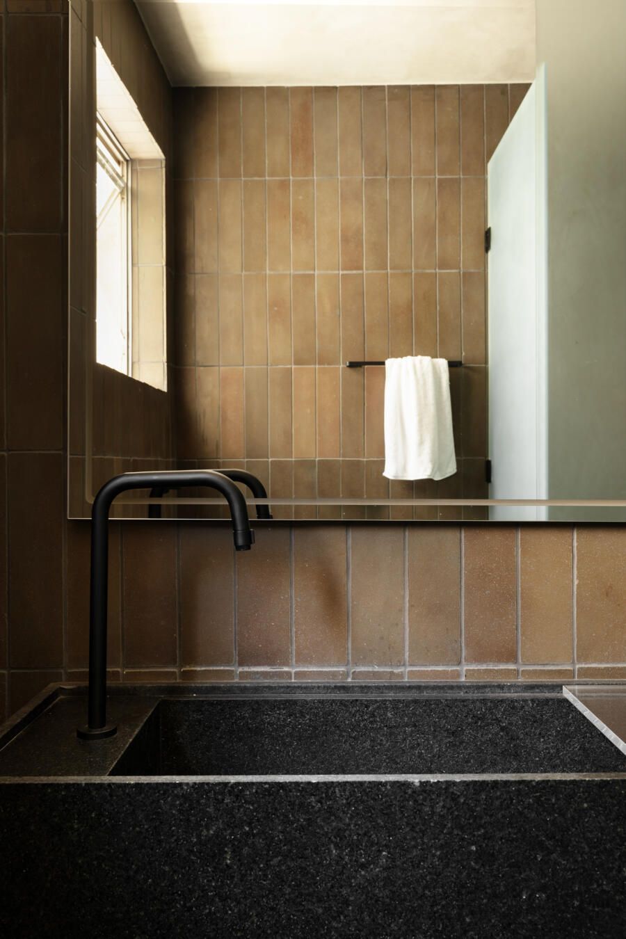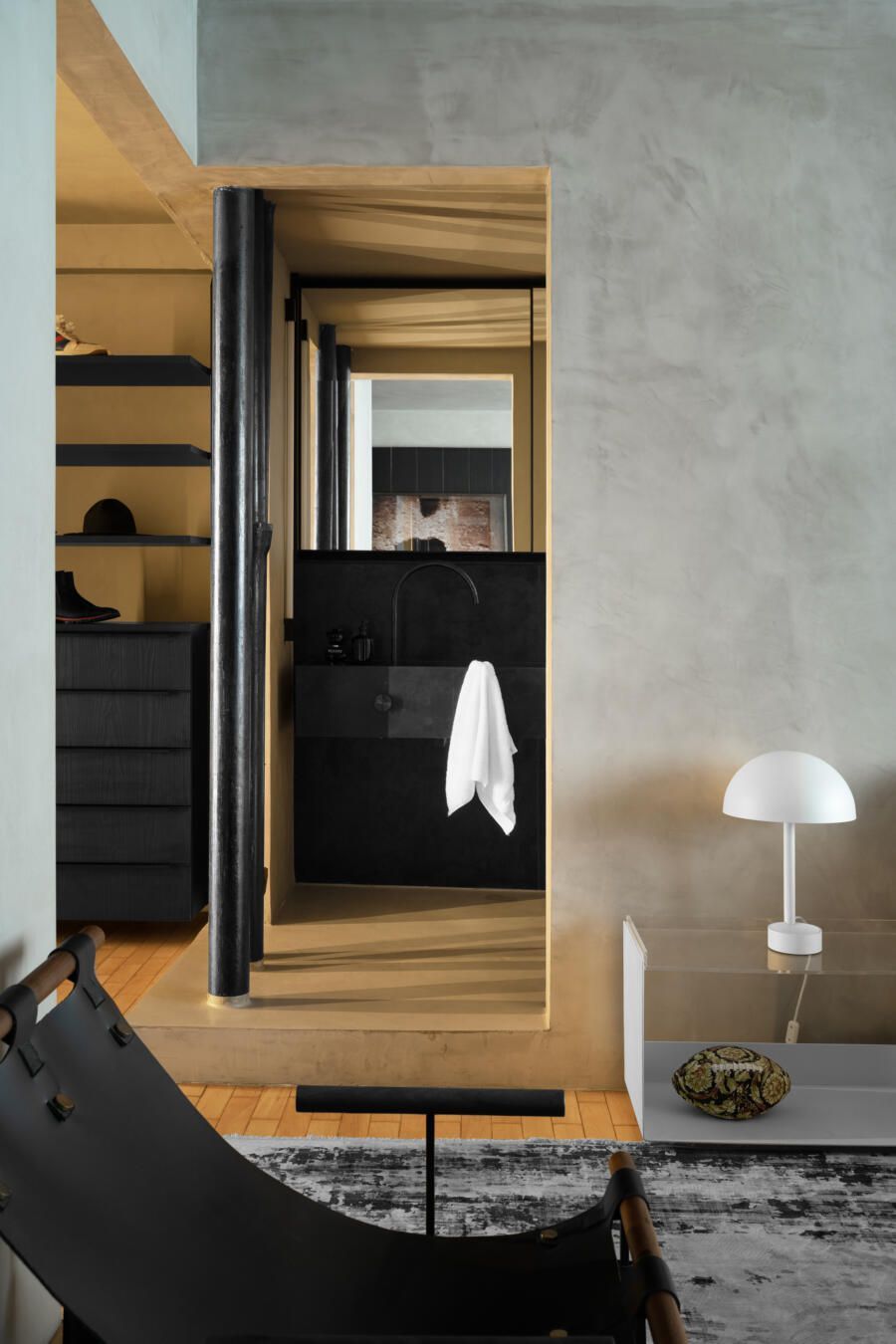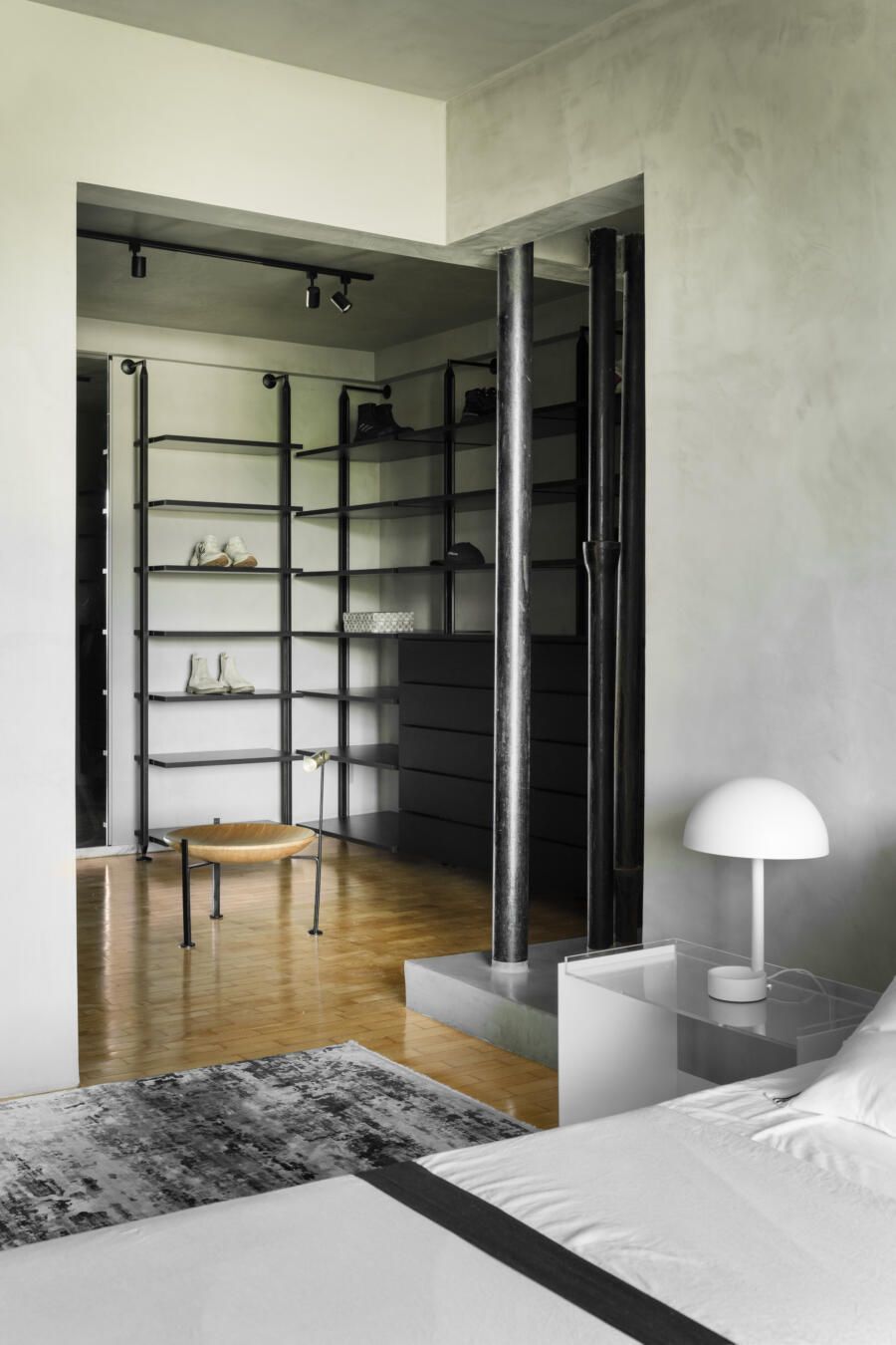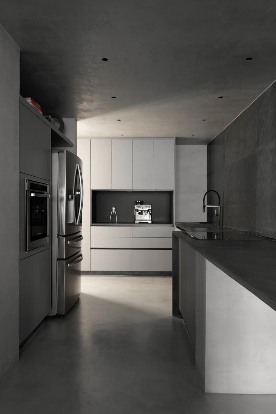 Com 300m2, o principal material usado é o tecnocimento, um material simples e de fácil manutenção que se espalha por todo o piso, teto e paredes da casa. Apesar de sua atmosfera moderna e minimalista, o arquiteto mostra sua identidade mineira ao resgatar as cores vibrantes da cidade no corredor que dá acesso à área íntima e na preservação do piso de peroba original nos quartos, em uma harmonia entre o novo e o antigo.