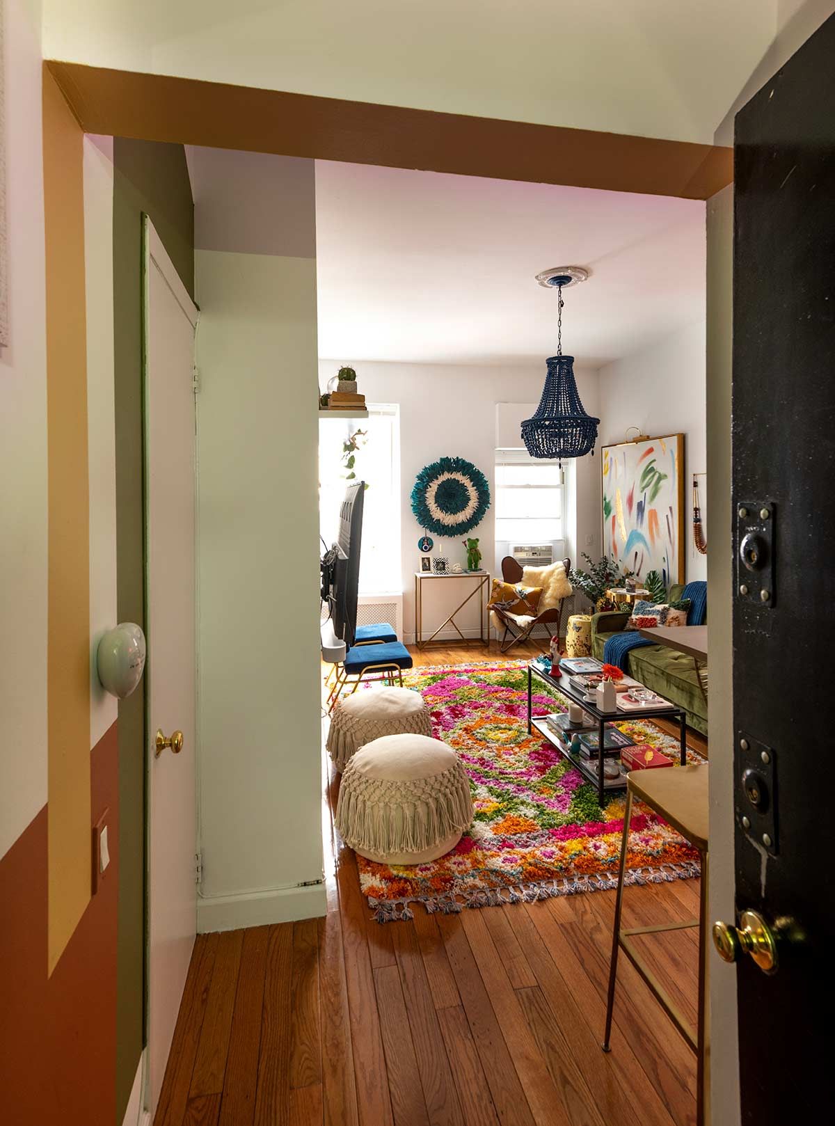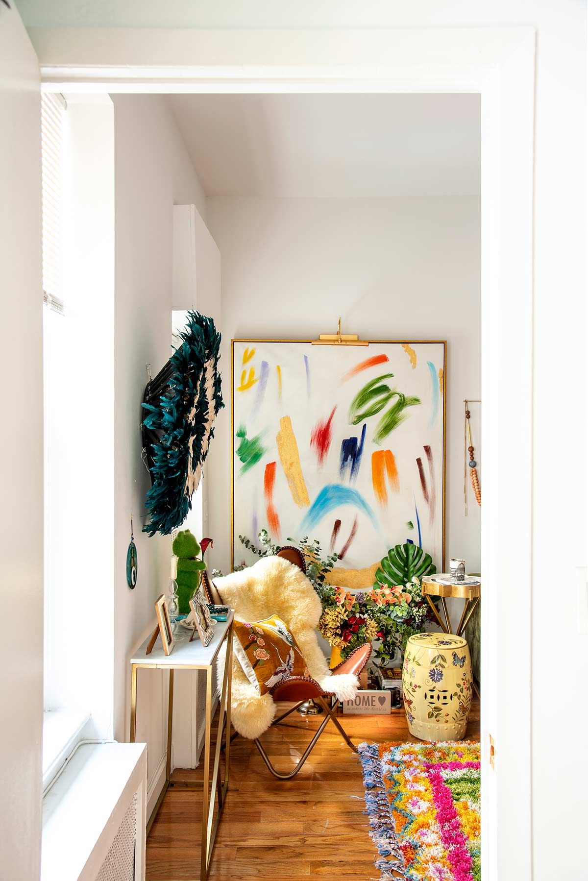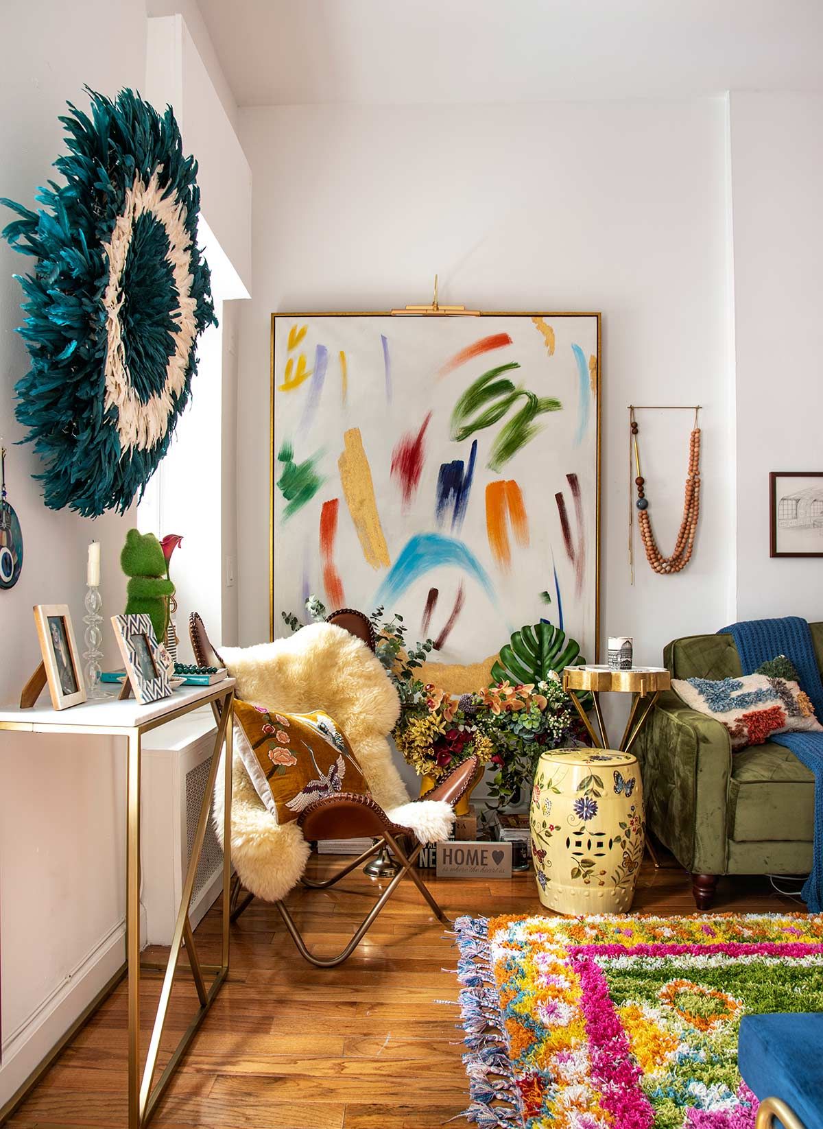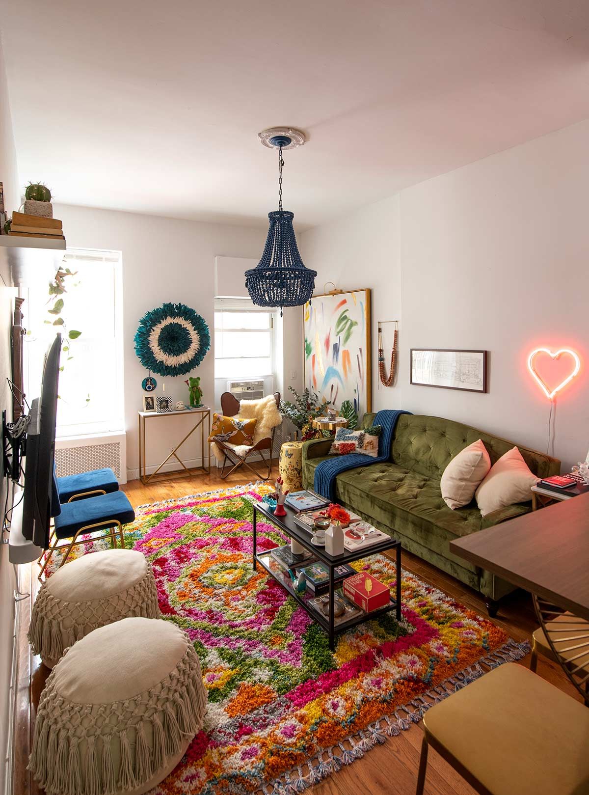 Próximo à cartões postais como Grand Central, Bryan Park e Chrysler Building, a arquiteta gosta de chamar o estilo do apartamento como “Grandmillenial”; uma pegada casa da avó aconchegante, mas com cores vivas, arte moderna e assessórios divertidos. Os ambientes foram pensados para viabilizar encontros para grupos grandes ou íntimos, já que ela gosta muito de receber. Como normalmente a arquiteta passa os dias no escritório, correndo de um lado para o outro, sua casa é também o lugar onde se reconecta com suas raízes, imprime sua personalidade e se sente absolutamente acolhida <3