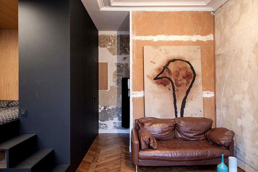 Que tal um painel motorizado deslizando pela sua kitnet? O painel permite criar mais de um espaço, dá para assistir televisão, dormir, trabalhar e trocar de roupa apenas com a sua movimentação. É quase uma brincadeira de esconde-esconde.