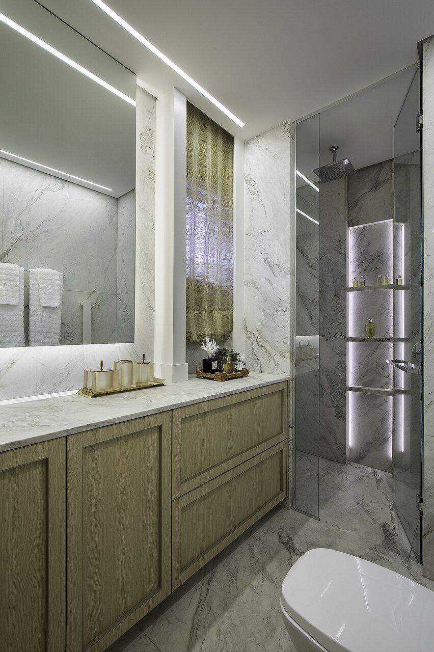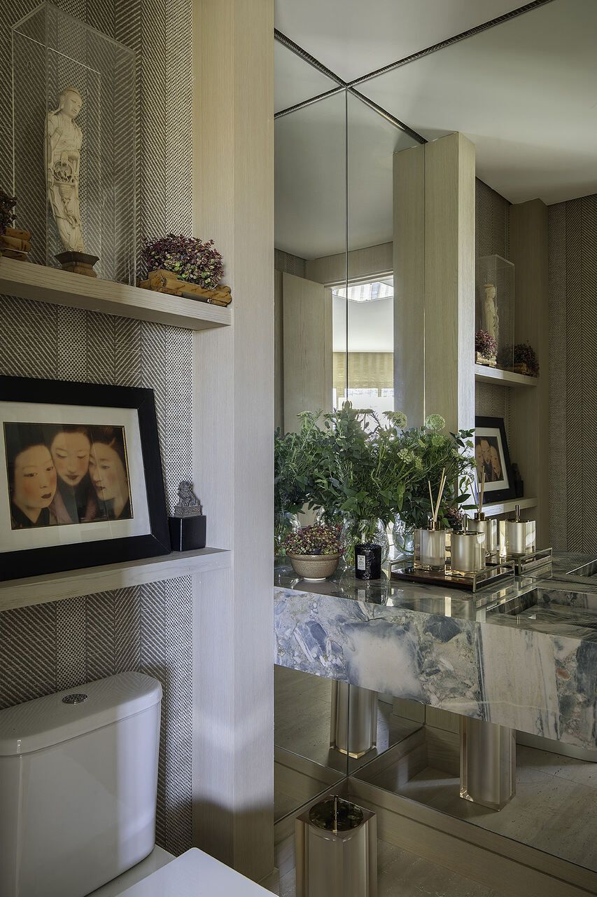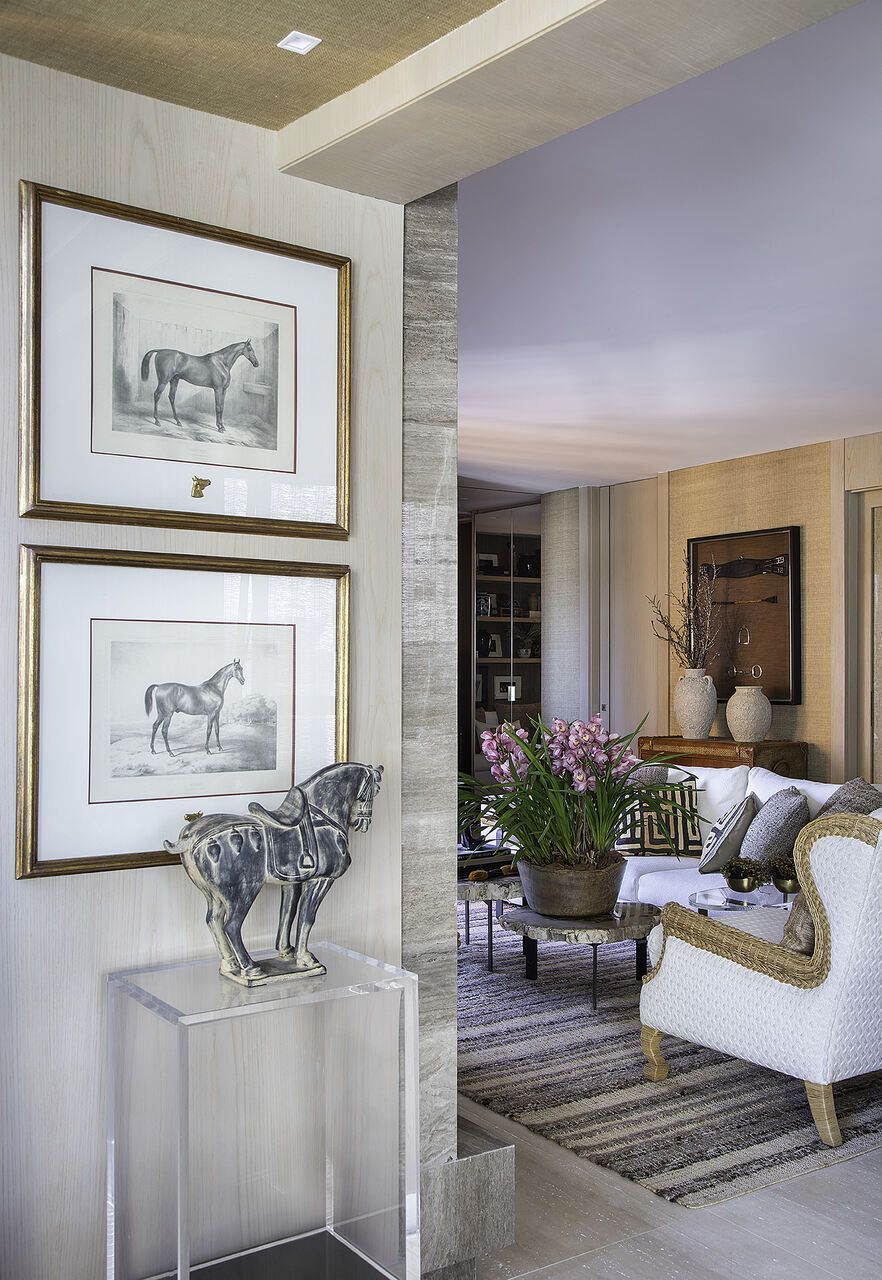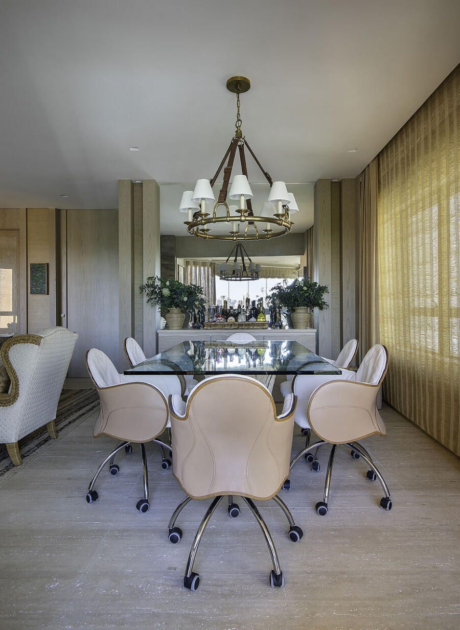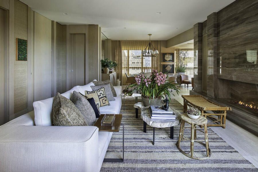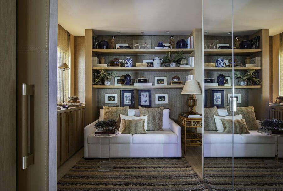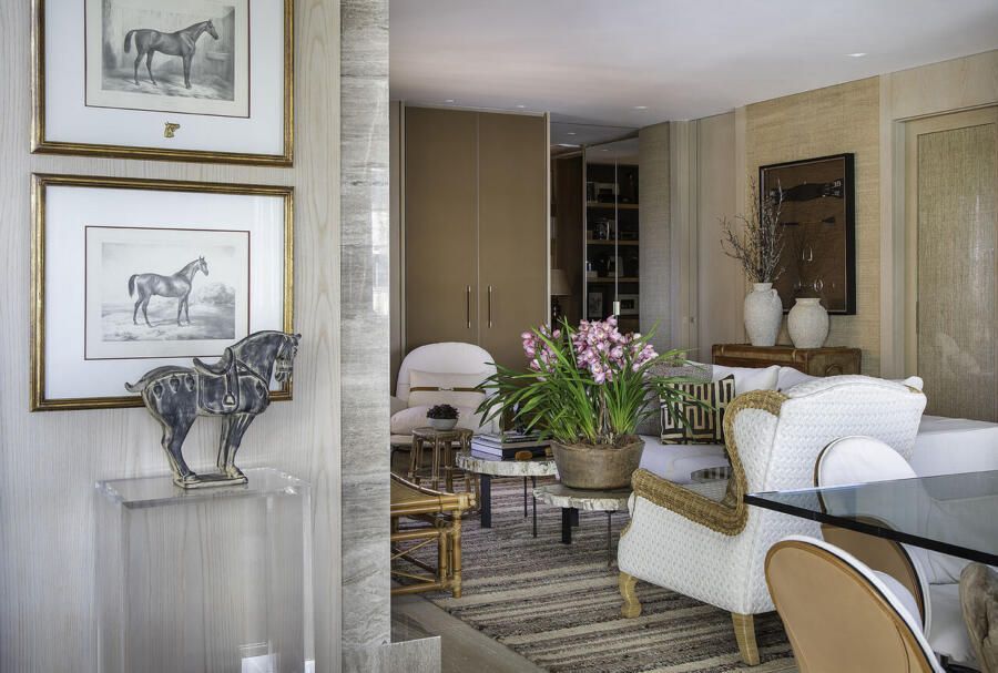 Com 130m², o apartamento foi completamente reformado para se transformar em um refúgio pessoal, pensado para ser vivido intensamente nos fins de semana. Fernanda divide a casa com o marido, cavaleiro profissional, e a paixão do casal pelo universo equestre aparece de forma sutil, elegante e muito sofisticada. A ideia era clara: criar um lar com clima de “hotel cinco estrelas”, mas sem perder o aconchego e a sensação de permanência.