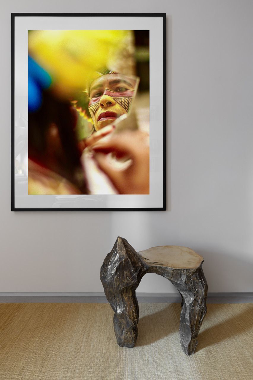 O projeto também é profundamente afetivo. Muitas das fotos expostas foram feitas pelo próprio morador, apaixonado por fotografia. Na cozinha, imagens de viagens dividem espaço com obras de Carla Chaim e Carlos Nunes, formando uma galeria íntima, cheia de narrativas pessoais e significados.