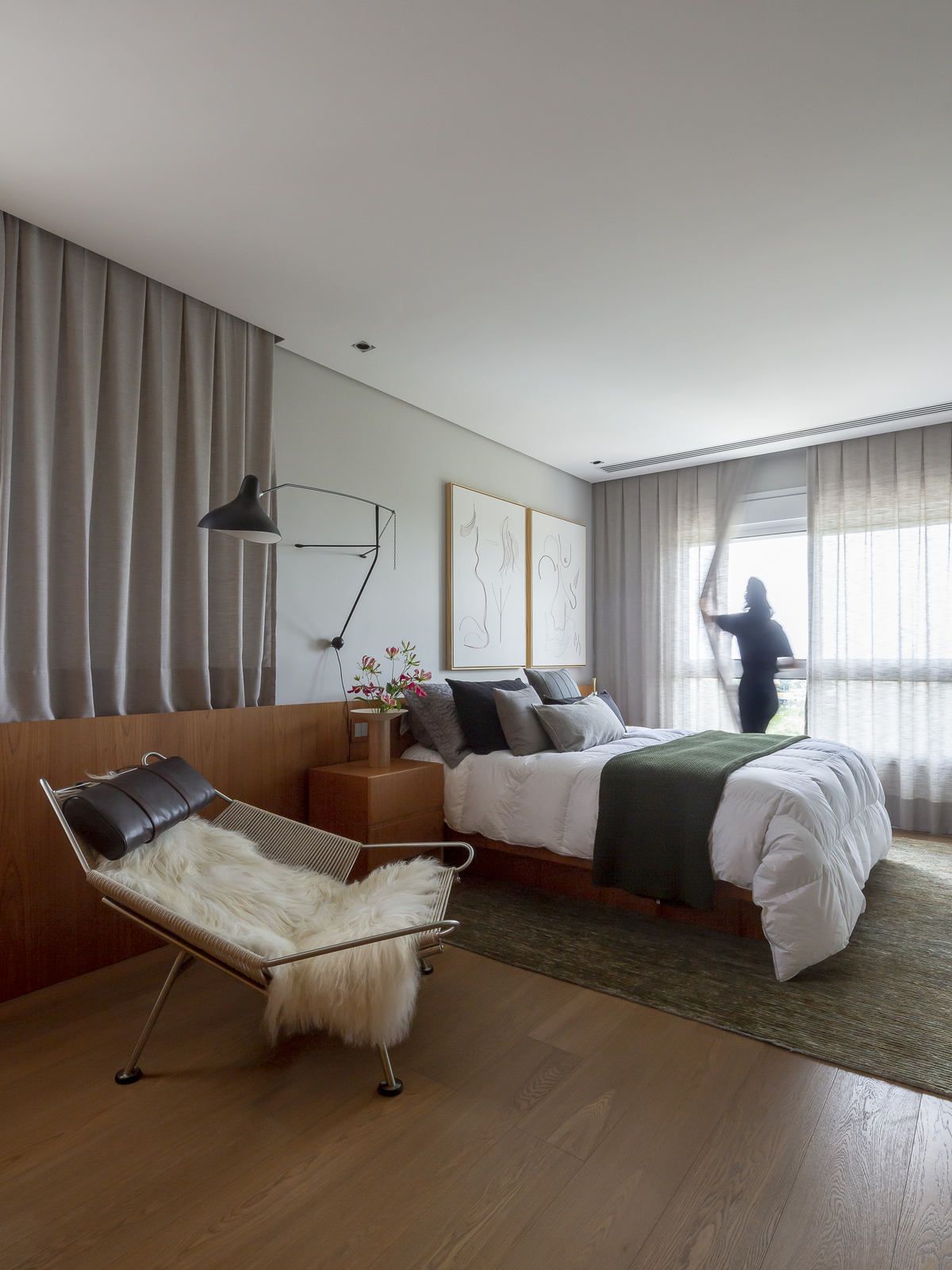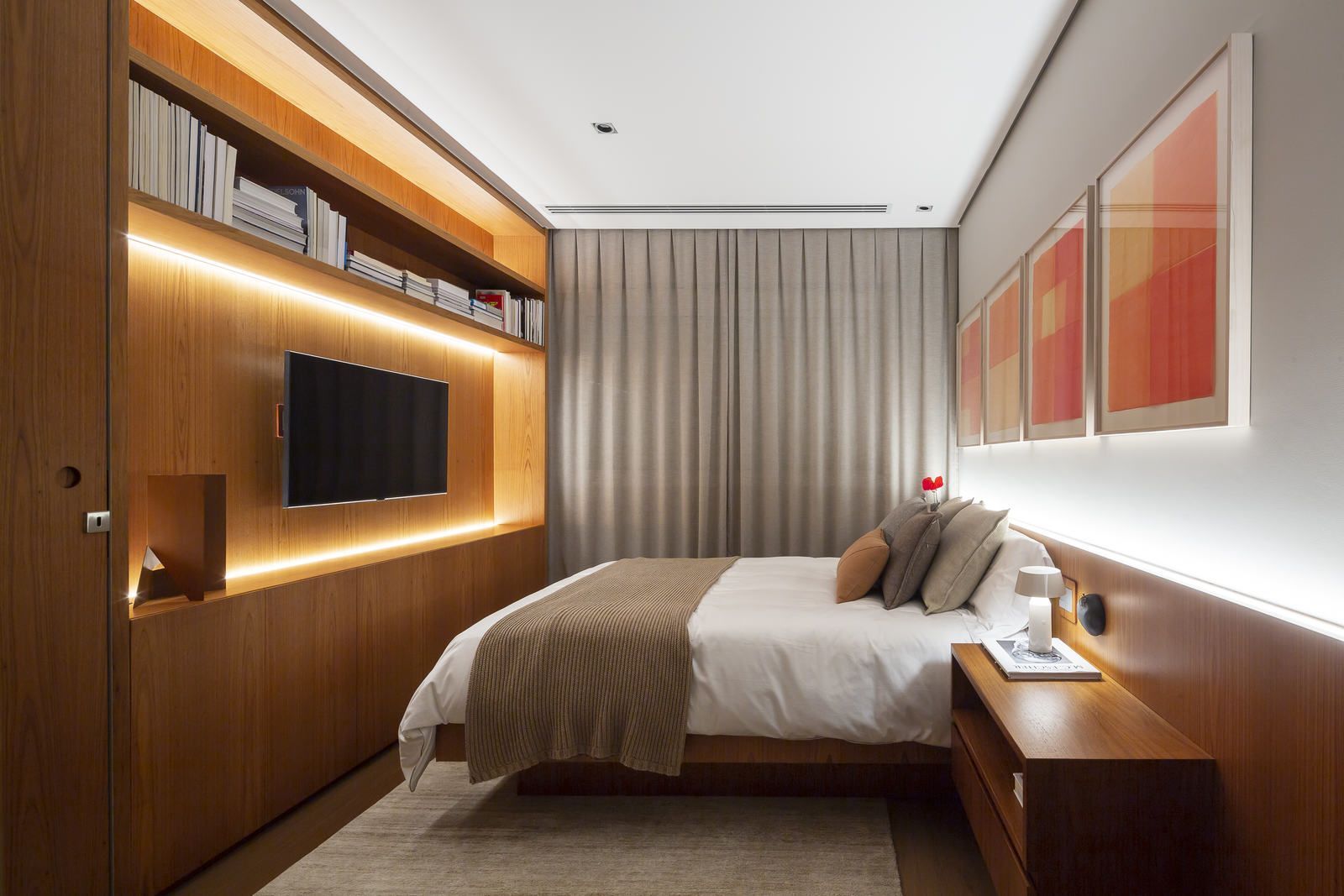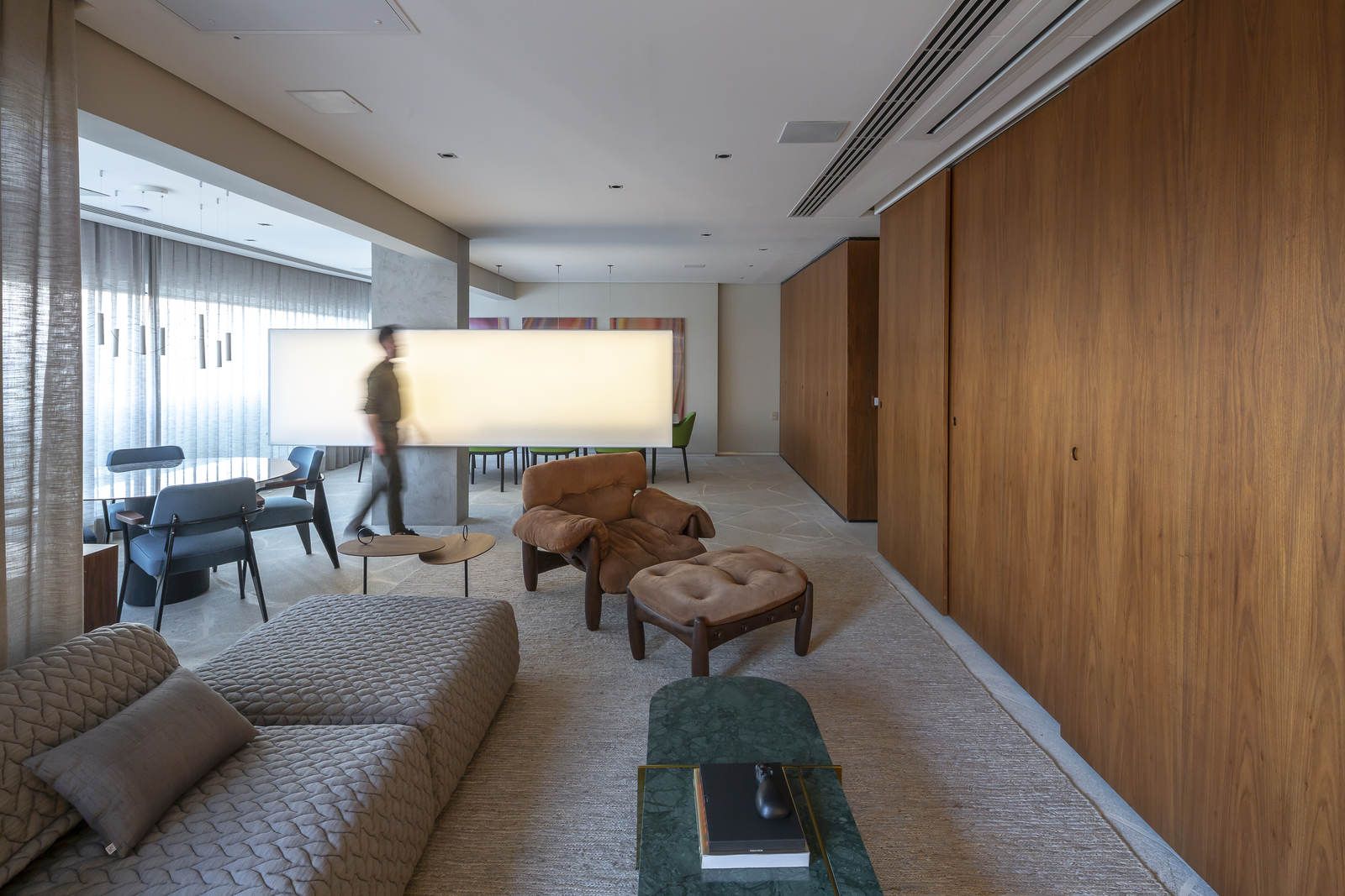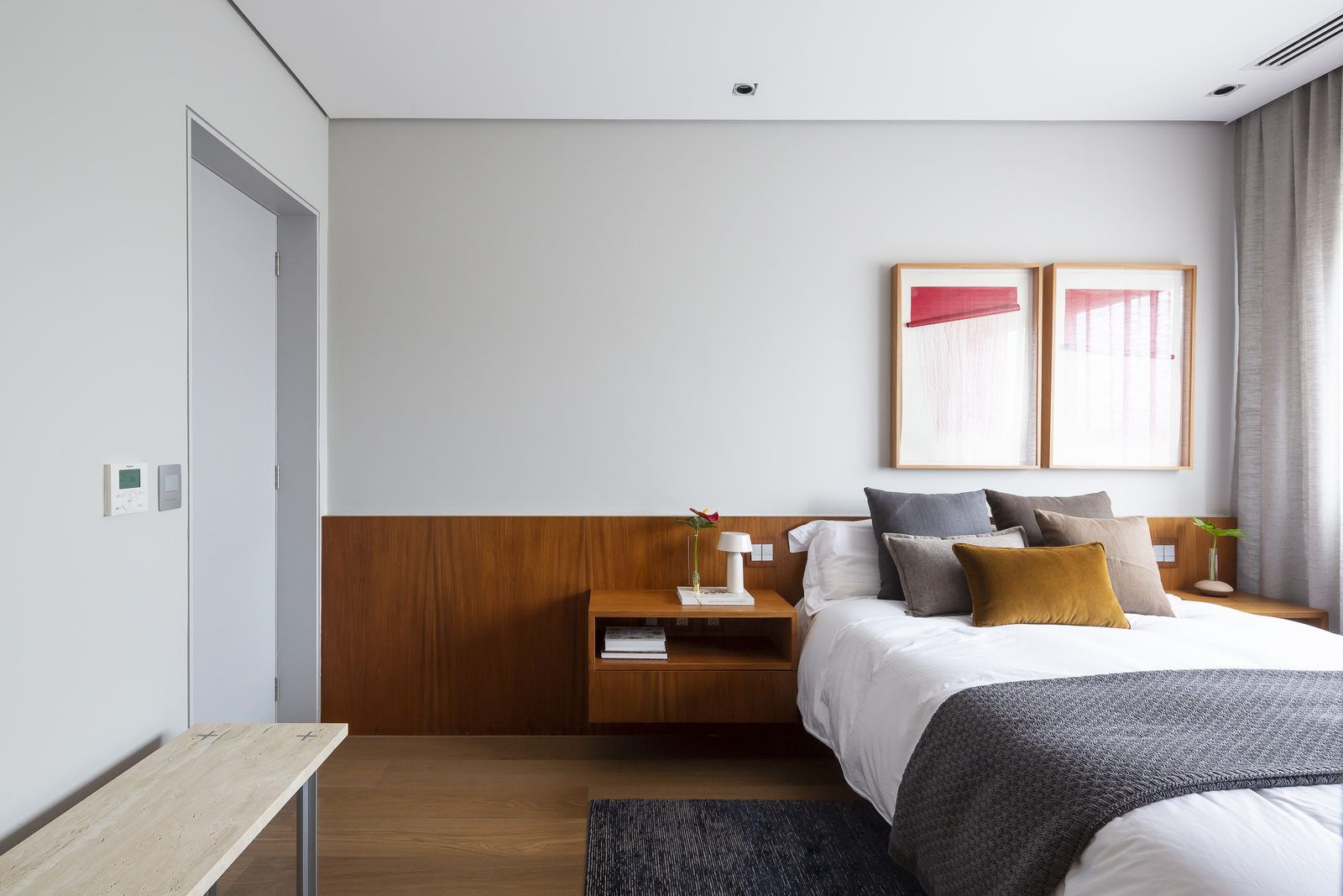 Flávio Castro: “O Jonas entrou em contato com o escritório por já se identificar com os projetos de arquitetura e interiores que fazemos. Assim, após projetar uma casa para ele, foi-nos encomendado o projeto deste apartamento. Como já tínhamos muita sintonia e afinidade, o conceito do projeto foi rapidamente determinado. As definições de materiais, proporções de marcenaria, revestimentos e mobiliários aconteceram de forma muito fluida.”