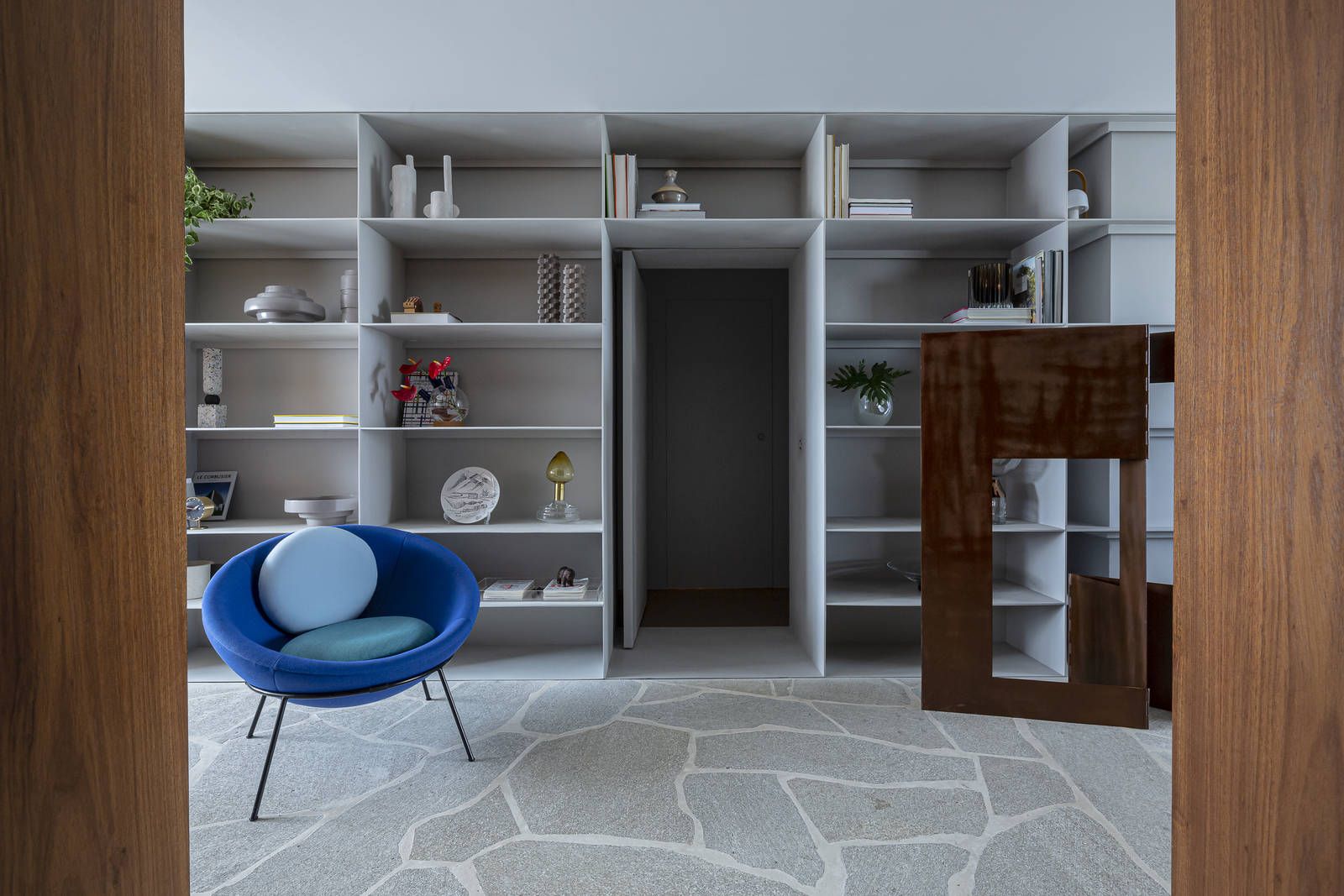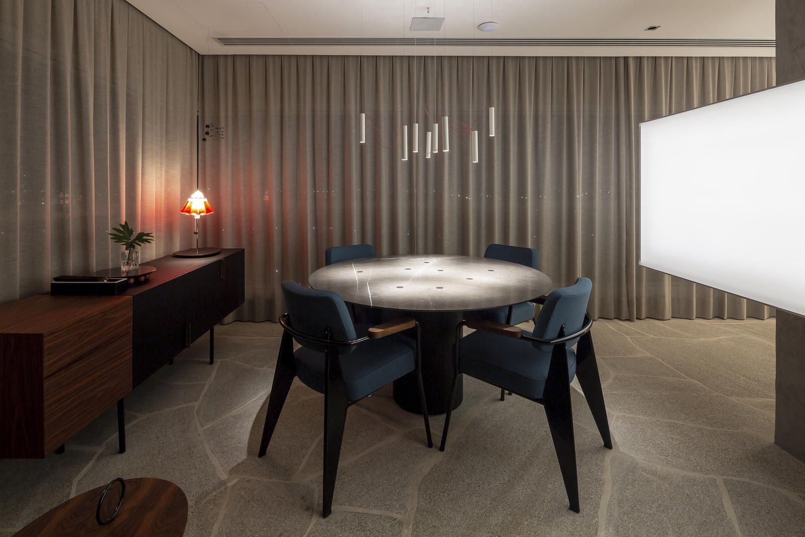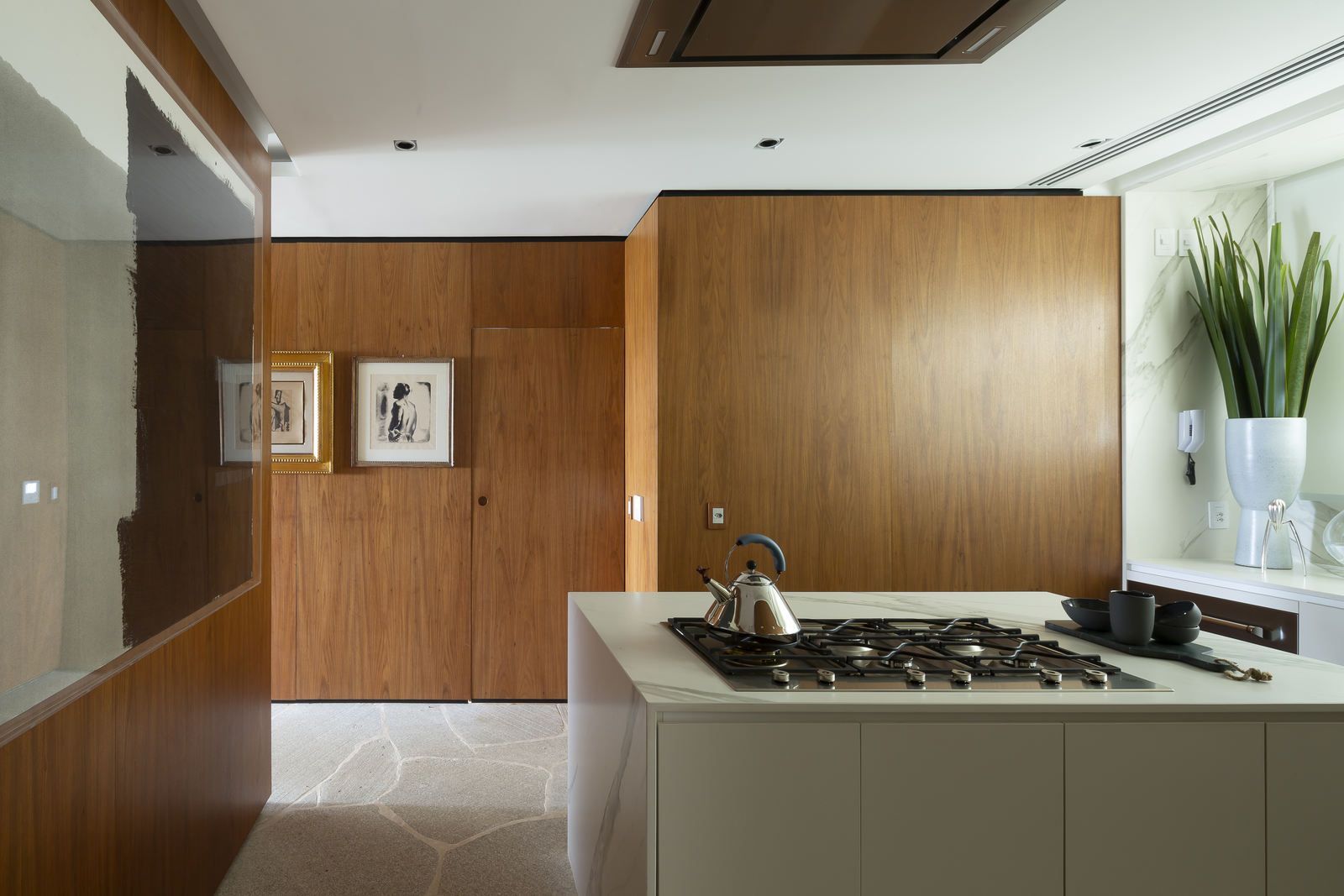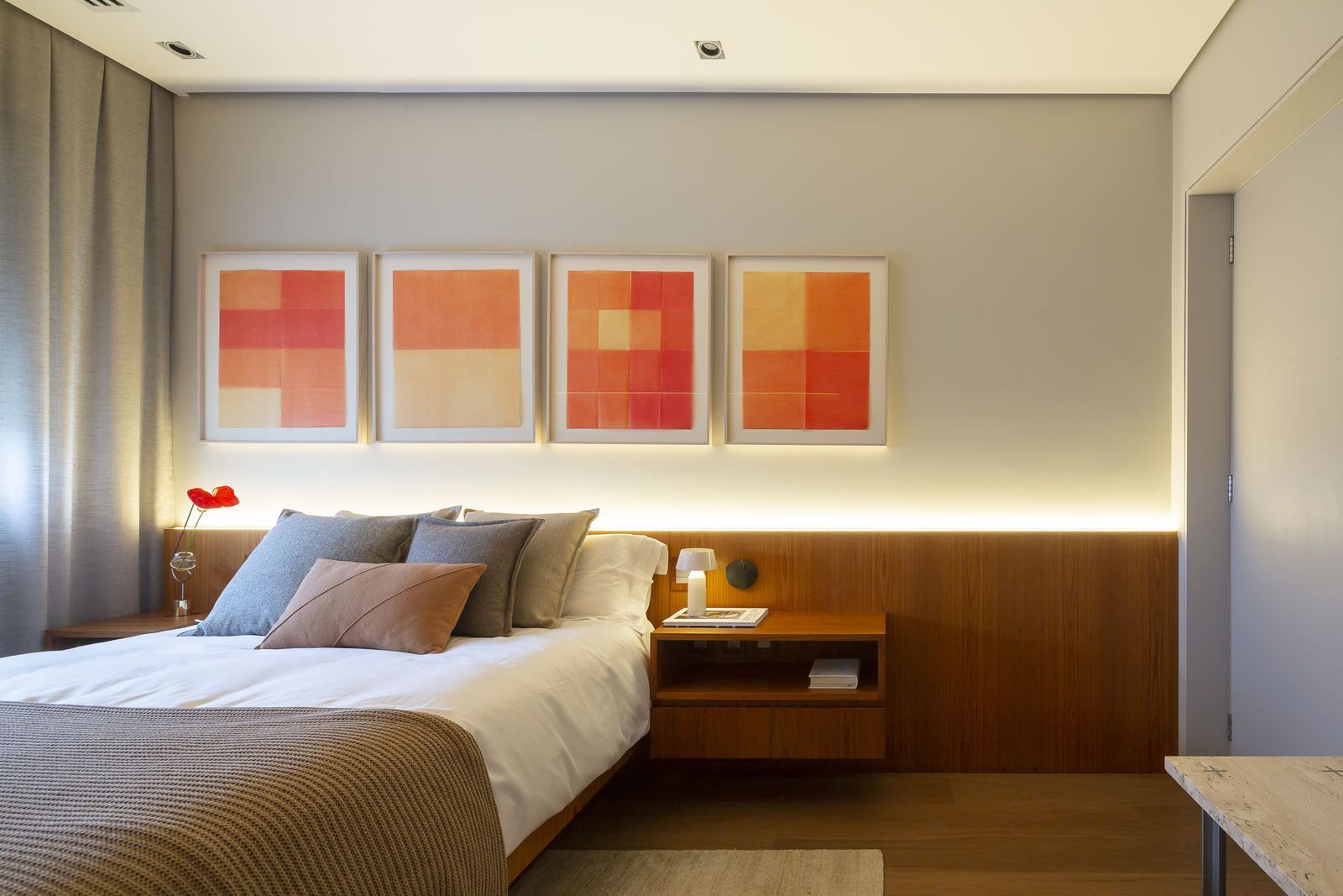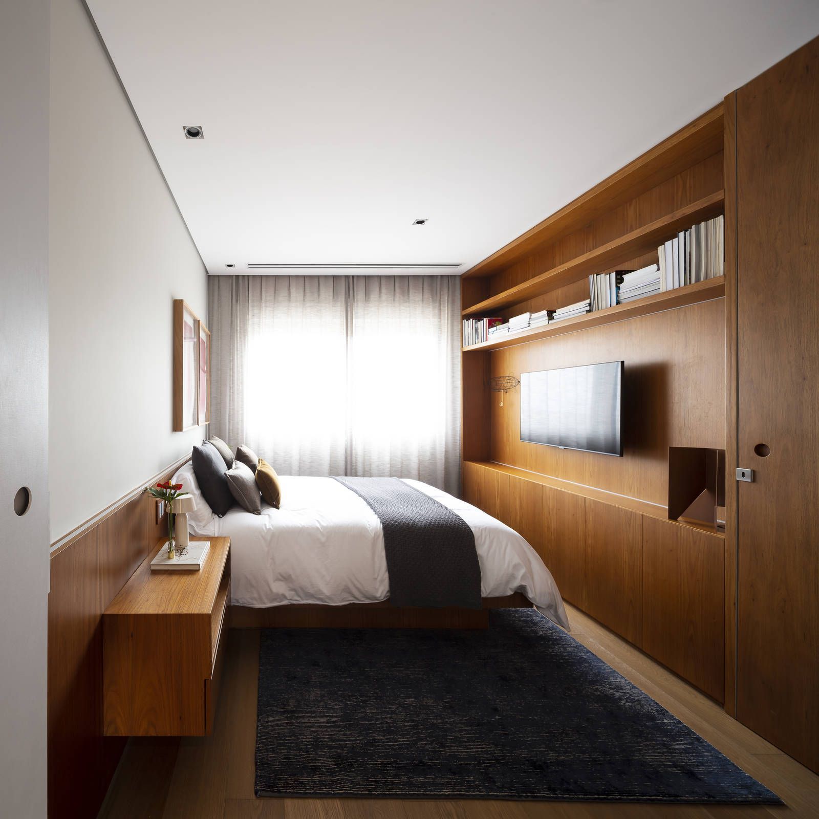 Flávio Castro: “O Jonas entrou em contato com o escritório por já se identificar com os projetos de arquitetura e interiores que fazemos. Assim, após projetar uma casa para ele, foi-nos encomendado o projeto deste apartamento. Como já tínhamos muita sintonia e afinidade, o conceito do projeto foi rapidamente determinado. As definições de materiais, proporções de marcenaria, revestimentos e mobiliários aconteceram de forma muito fluida.”