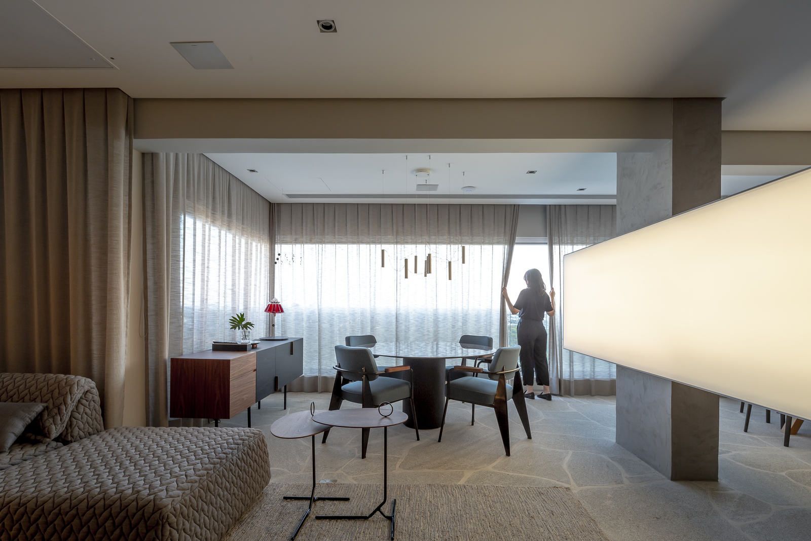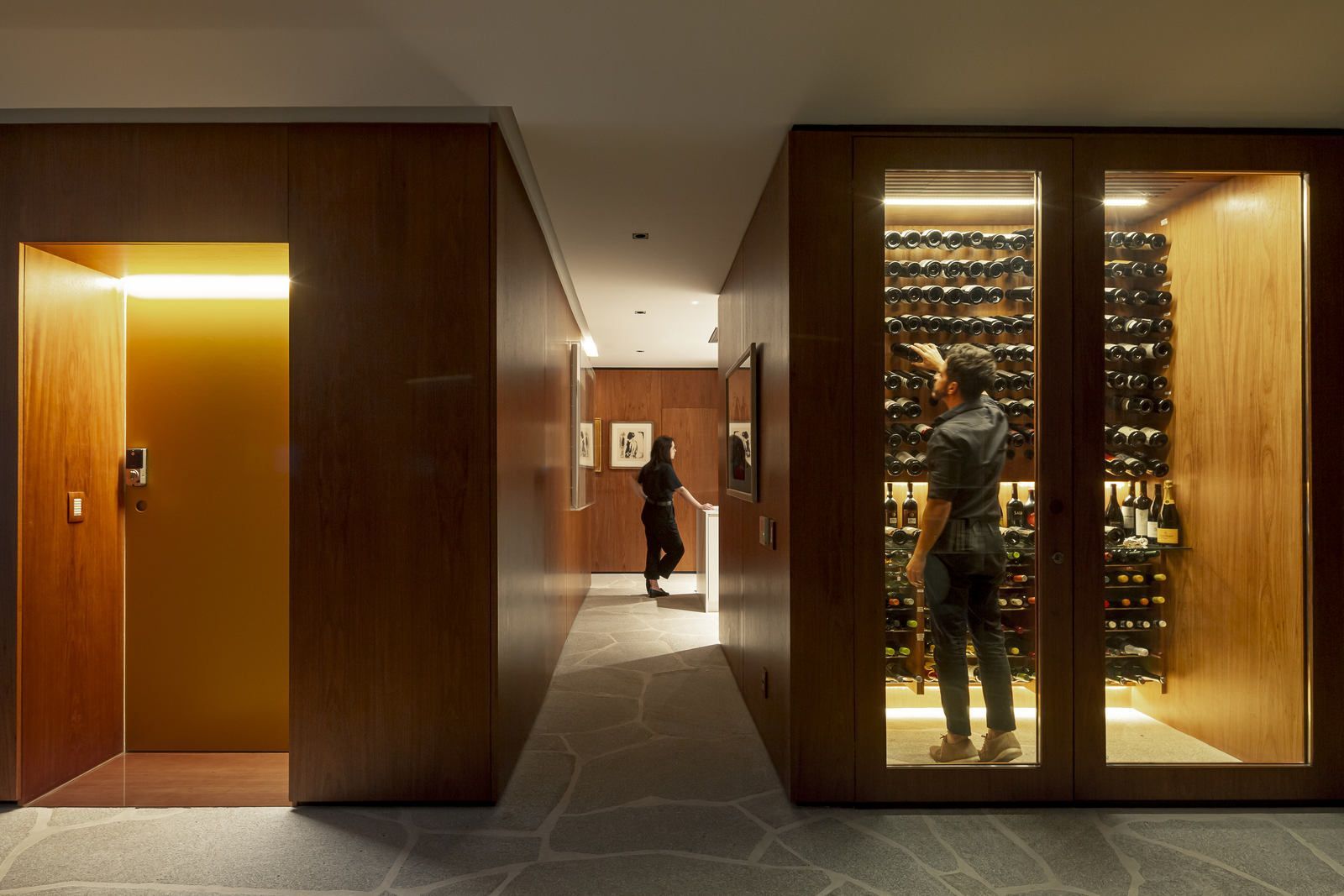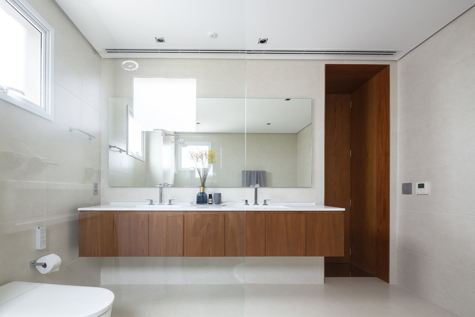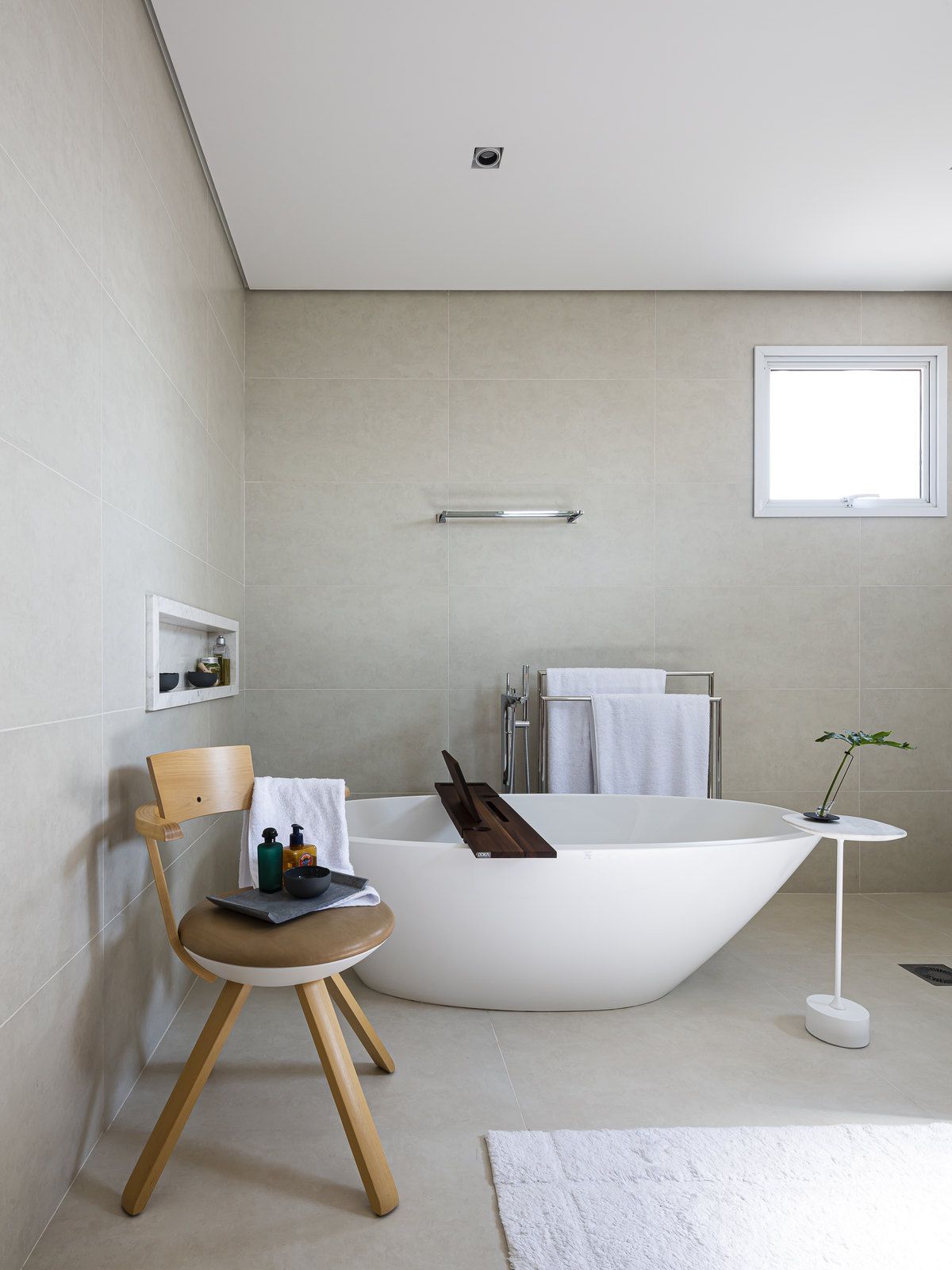 Flávio Castro: “O Jonas entrou em contato com o escritório por já se identificar com os projetos de arquitetura e interiores que fazemos. Assim, após projetar uma casa para ele, foi-nos encomendado o projeto deste apartamento. Como já tínhamos muita sintonia e afinidade, o conceito do projeto foi rapidamente determinado. As definições de materiais, proporções de marcenaria, revestimentos e mobiliários aconteceram de forma muito fluida.”