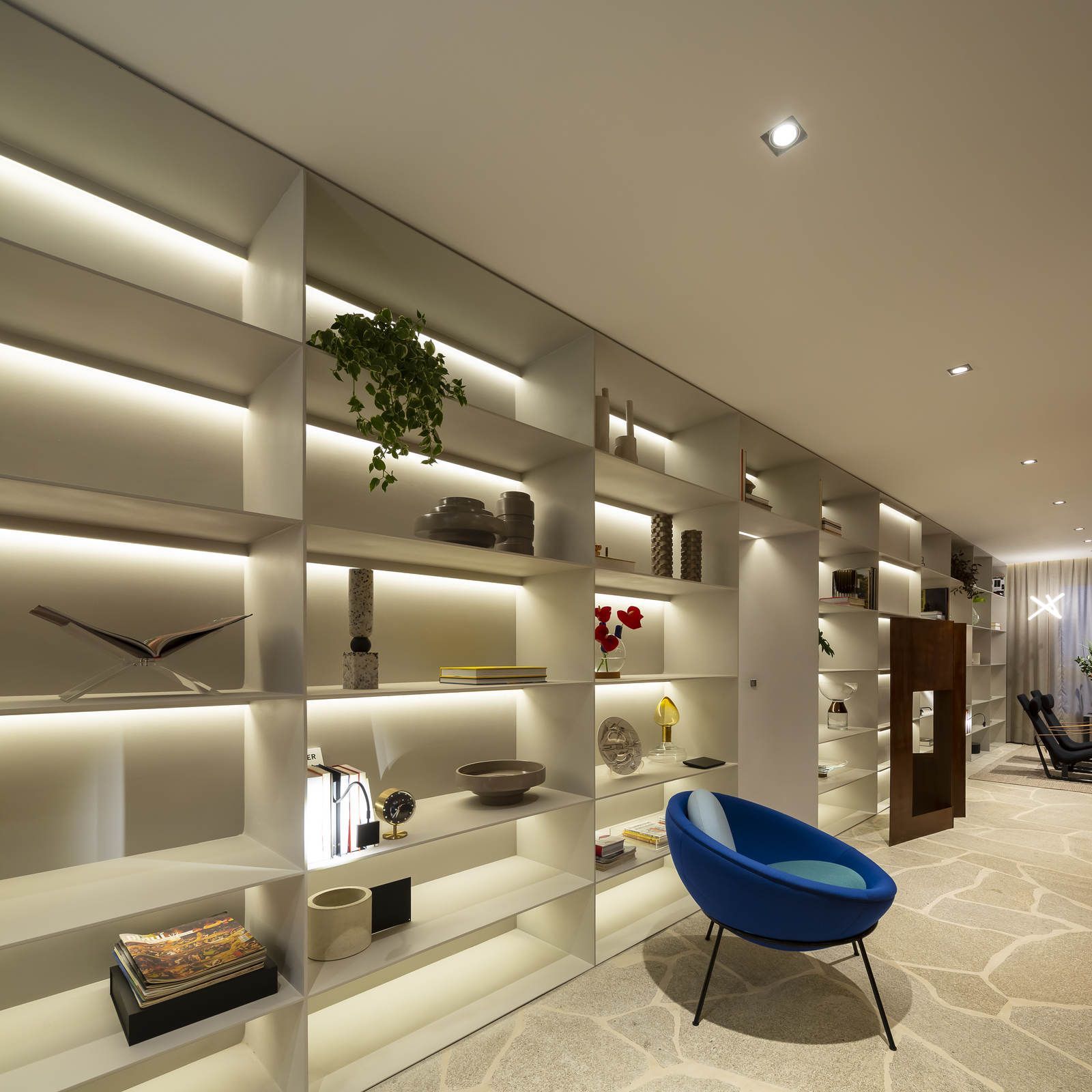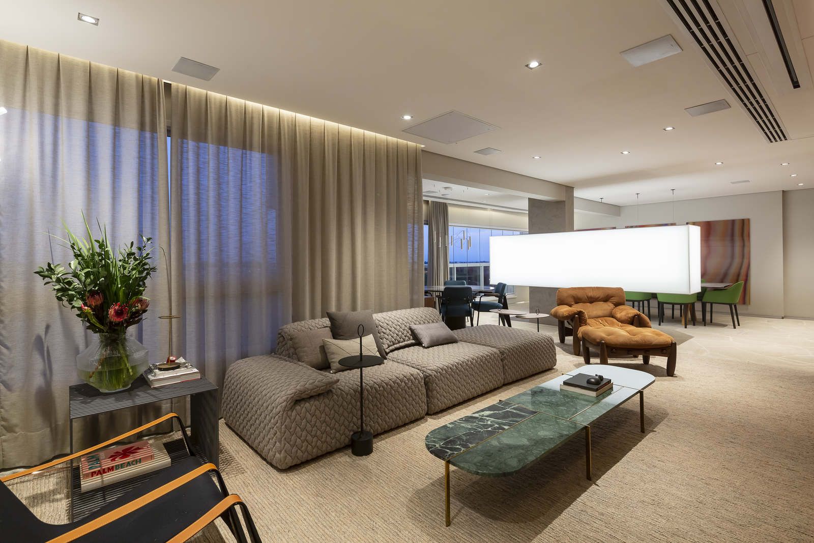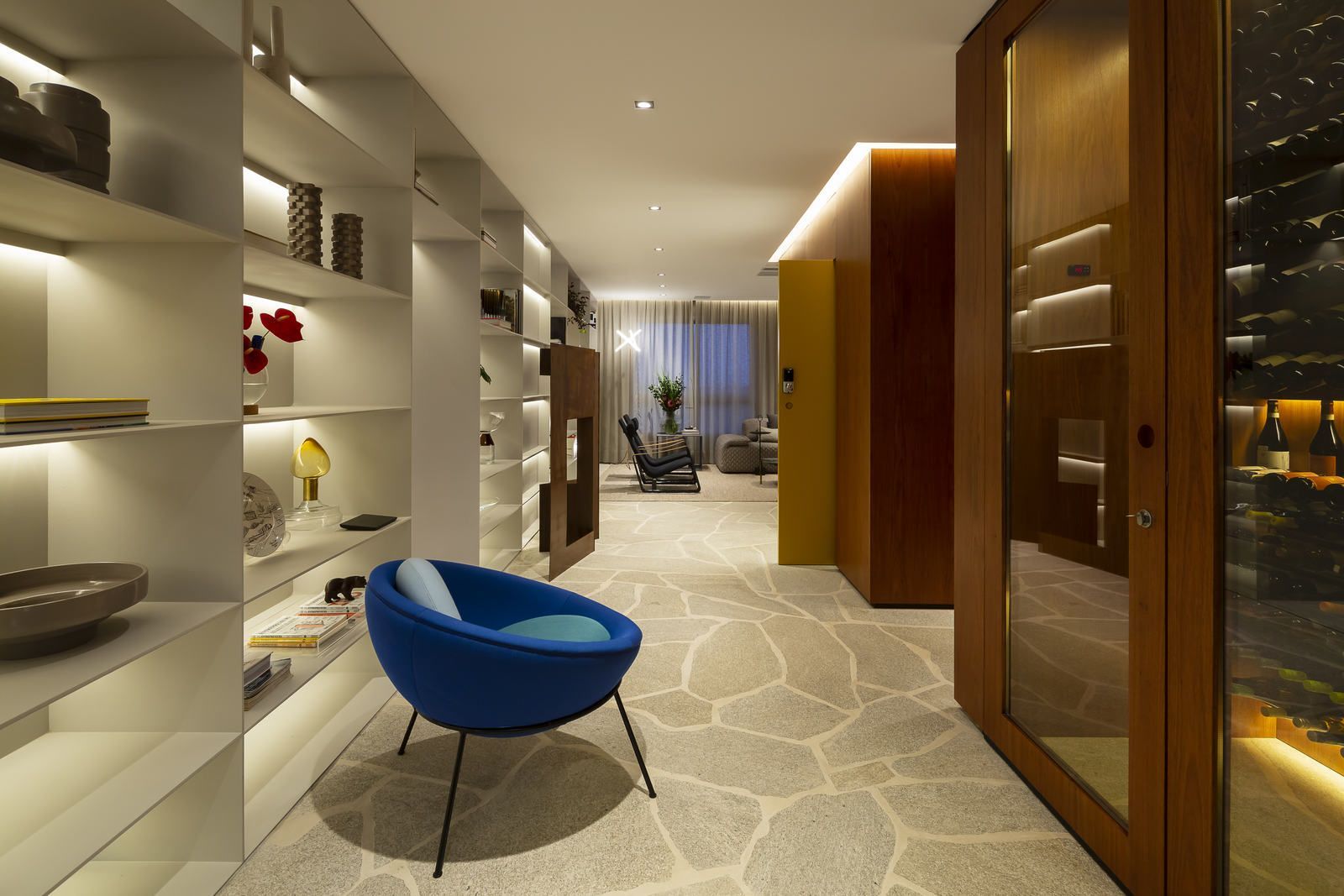 Flávio Castro: “São espaços de acolhimento e materialização de todos os simbolismos pedidos pelo cliente. Ele confessou que aqui se sente em casa e, ao mesmo tempo, relembra toda a sua trajetória, desde infância até as viagens que fez. É uma casa de memórias.”