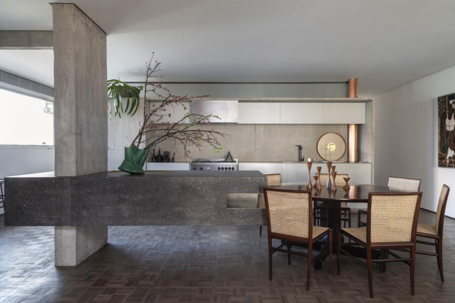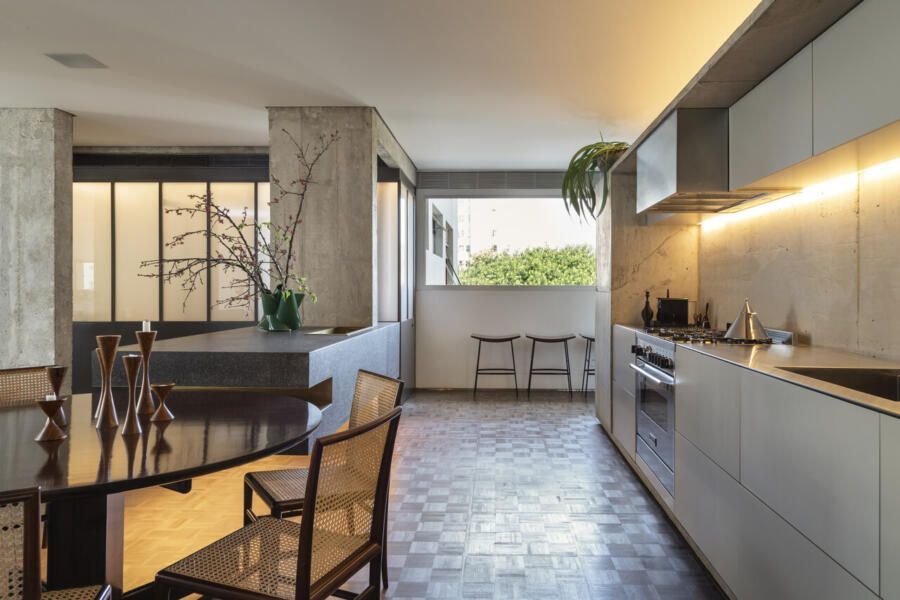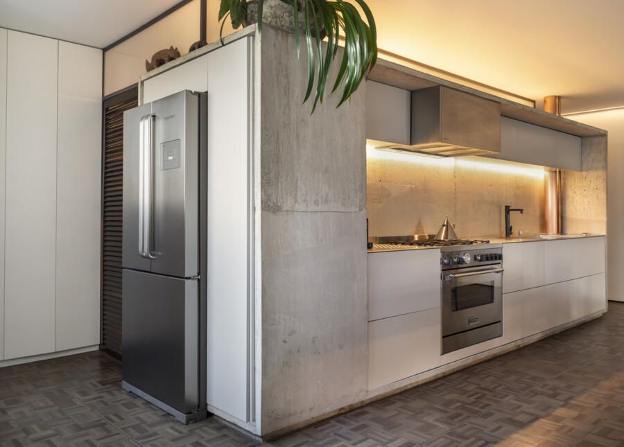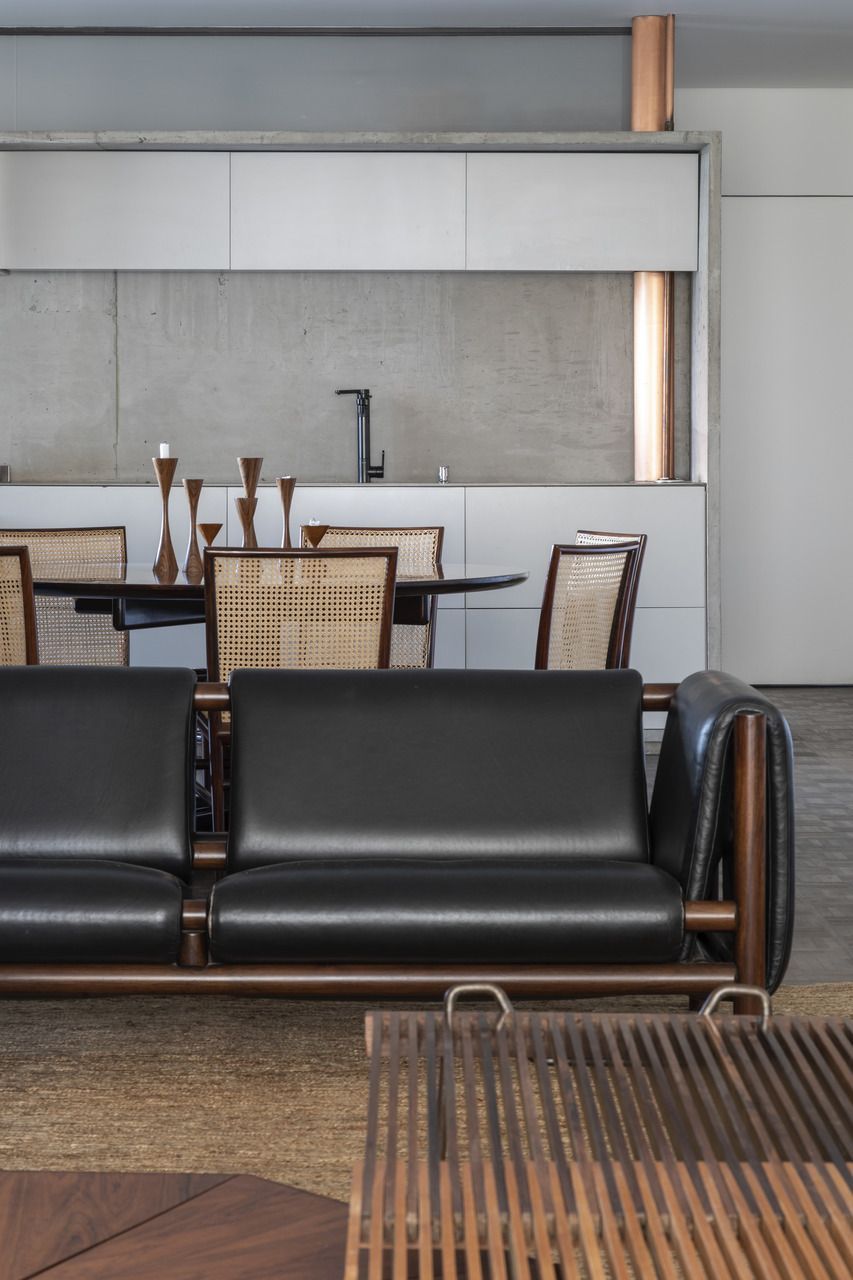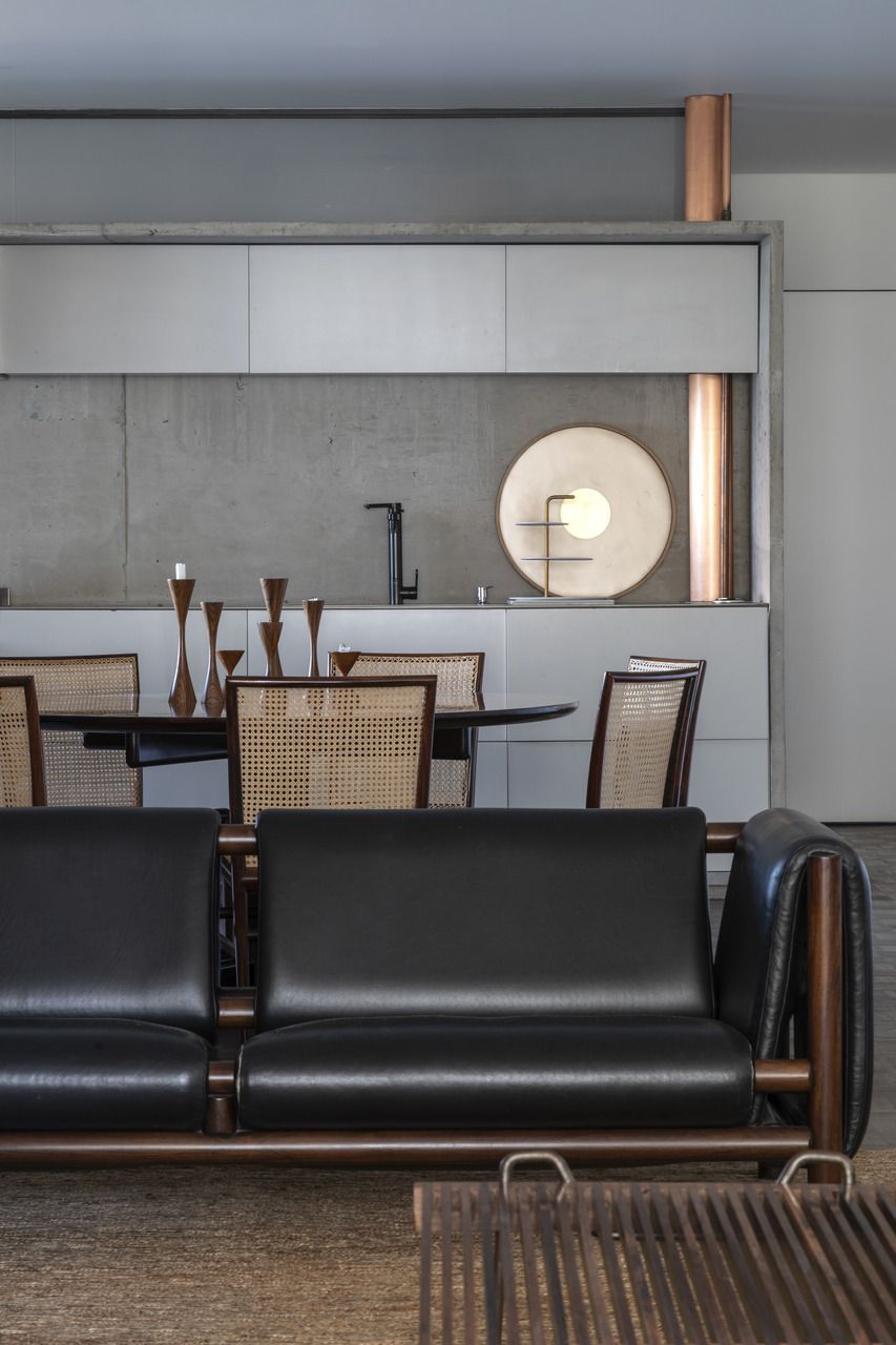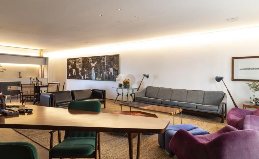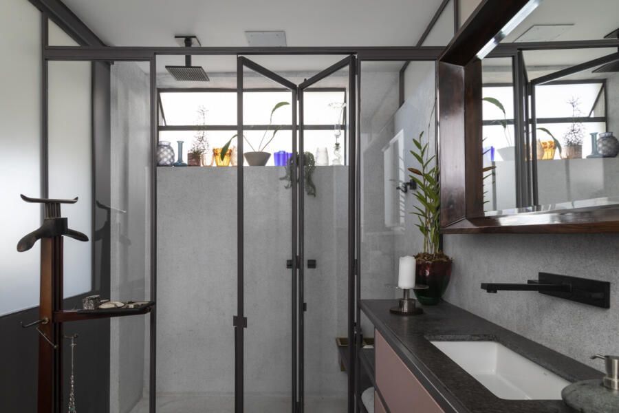 “Esse projeto foi concebido há dez anos, foi um processo de estudo aprofundado para garantir que cada detalhe refletisse essa conexão pessoal e profissional, já que eu e o arquiteto somos amigos. A iluminação tem um papel essencial no espaço. Durante a noite, ela integra todos os ambientes do apartamento, tornando-se protagonista no projeto. Além disso, as divisórias de inox com vidro foram pensadas para trazer transparência e fluidez, reforçando a leveza e a continuidade visual entre os espaços.”