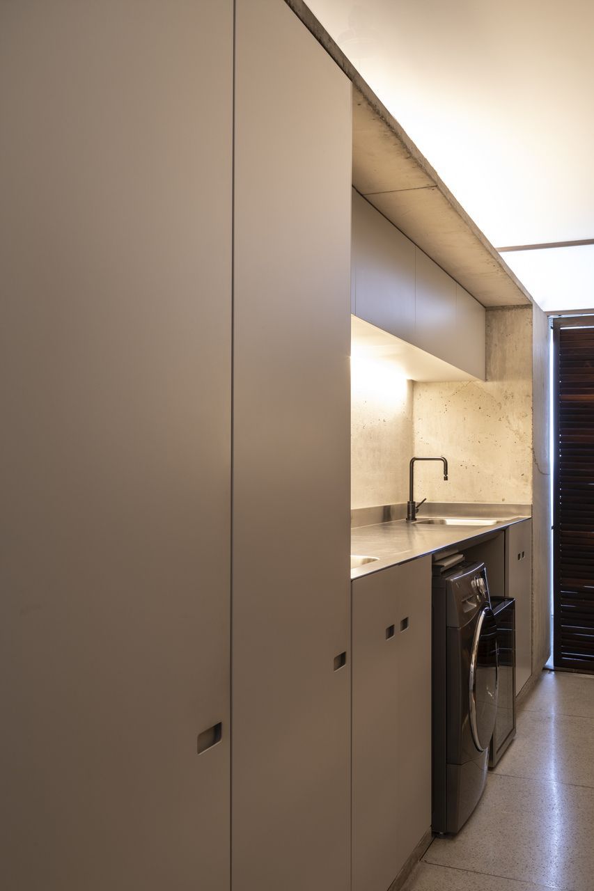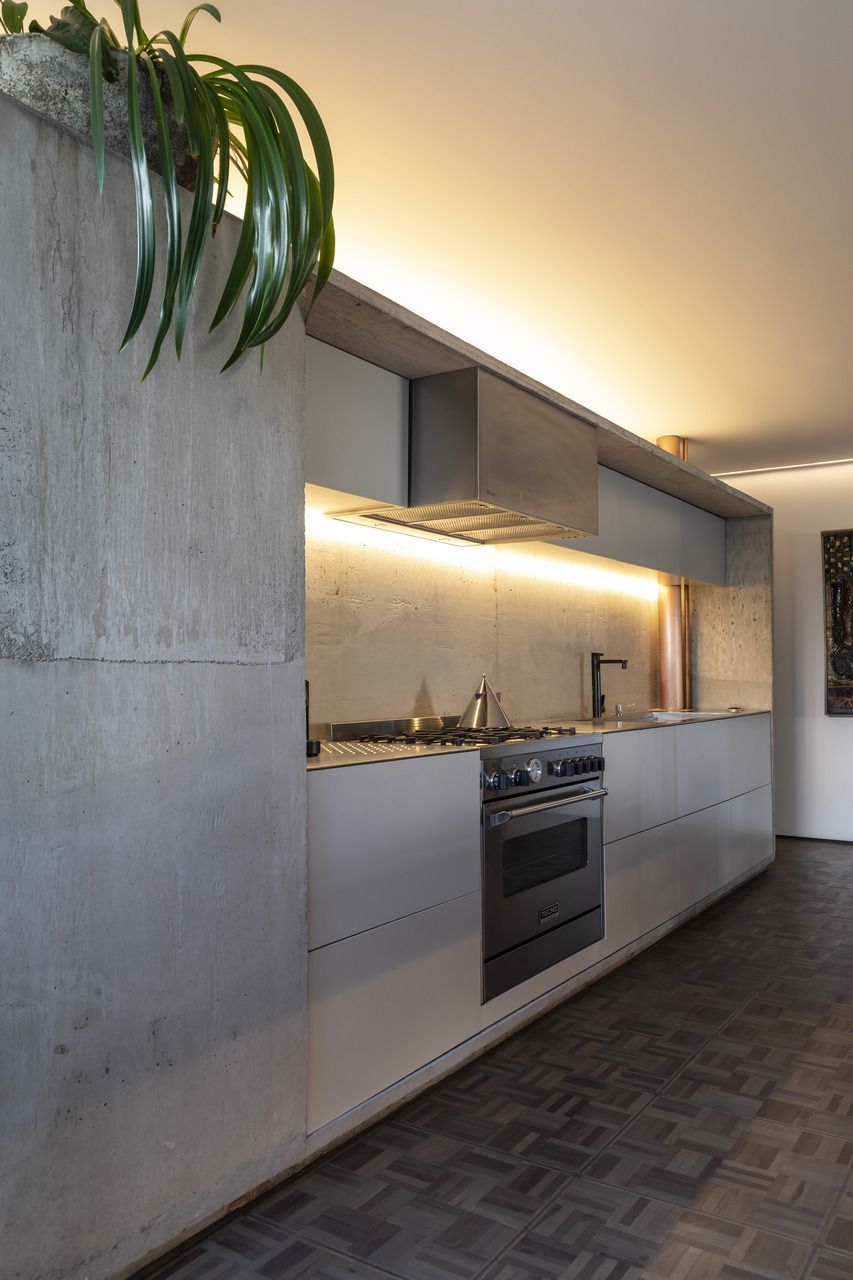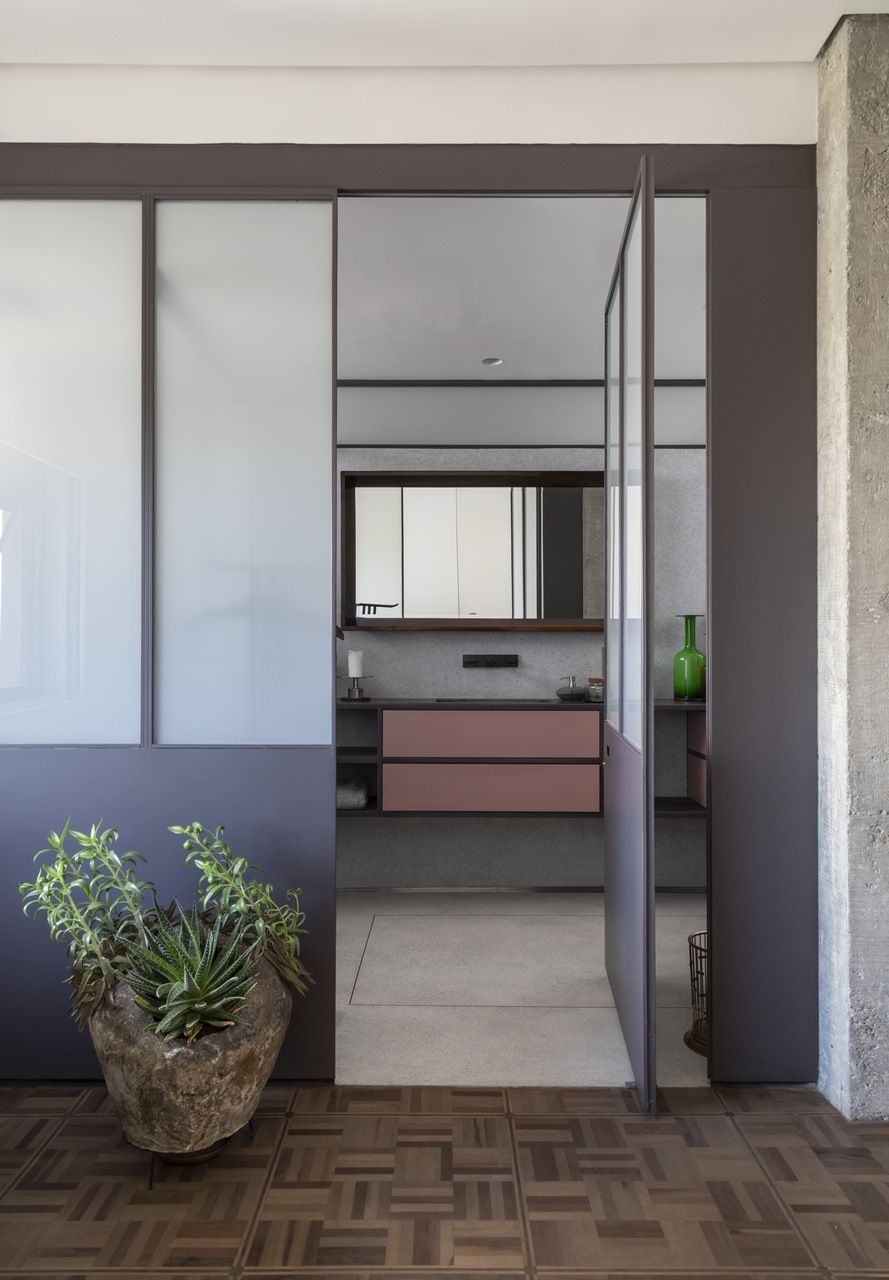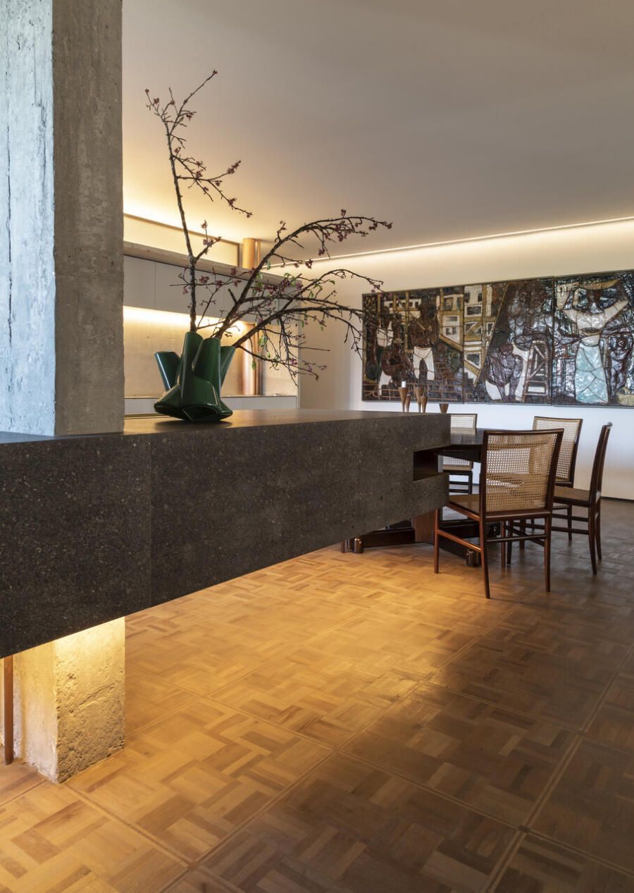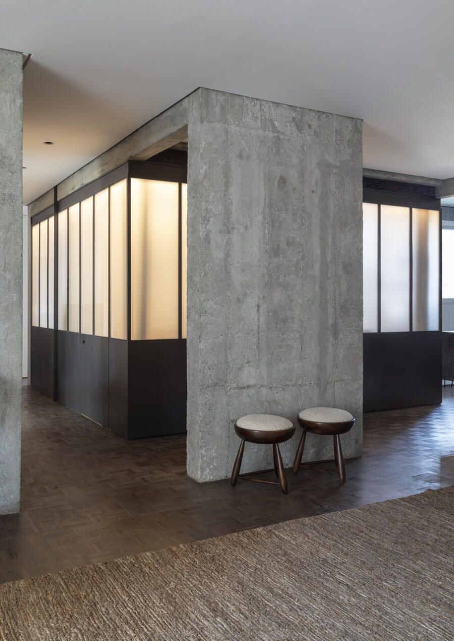 “Esse projeto foi concebido há dez anos, foi um processo de estudo aprofundado para garantir que cada detalhe refletisse essa conexão pessoal e profissional, já que eu e o arquiteto somos amigos. A iluminação tem um papel essencial no espaço. Durante a noite, ela integra todos os ambientes do apartamento, tornando-se protagonista no projeto. Além disso, as divisórias de inox com vidro foram pensadas para trazer transparência e fluidez, reforçando a leveza e a continuidade visual entre os espaços.”
