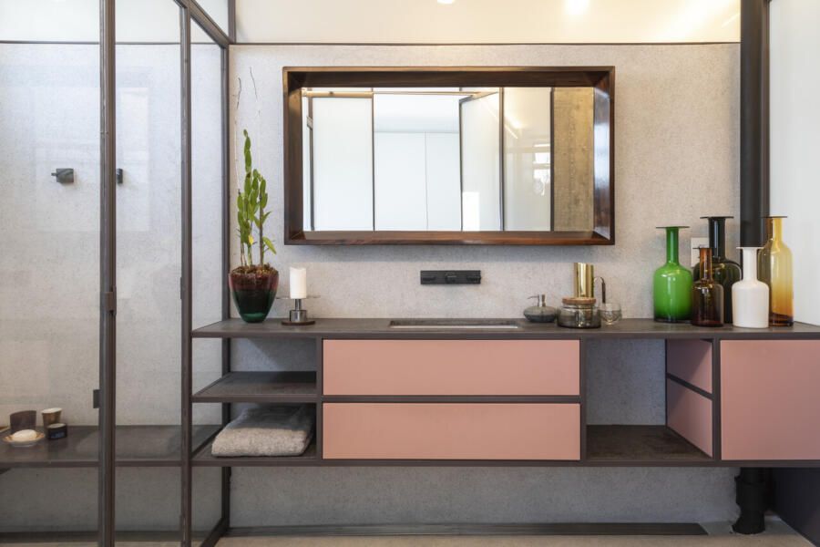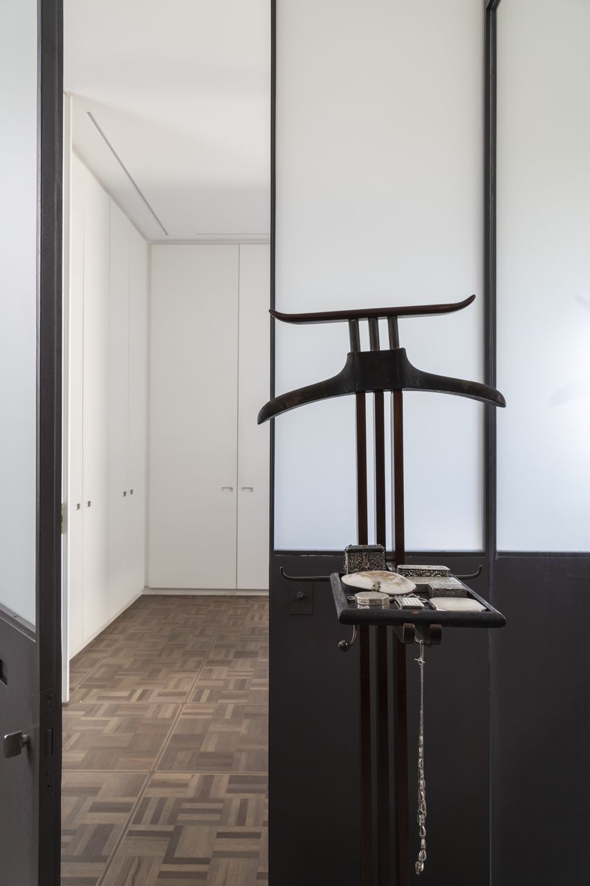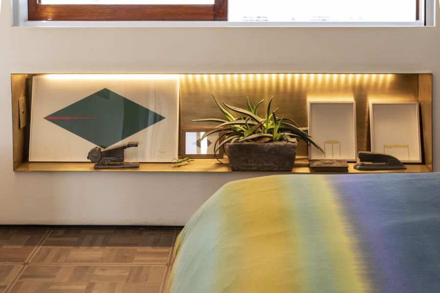 As coleções também impressionam com suas peculiaridades, como é o caso da coleção de tábuas de madeira na cozinha e as obras de arte exibidas pelo apartamento como uma galeria, além de uma estante cheia de memórias.