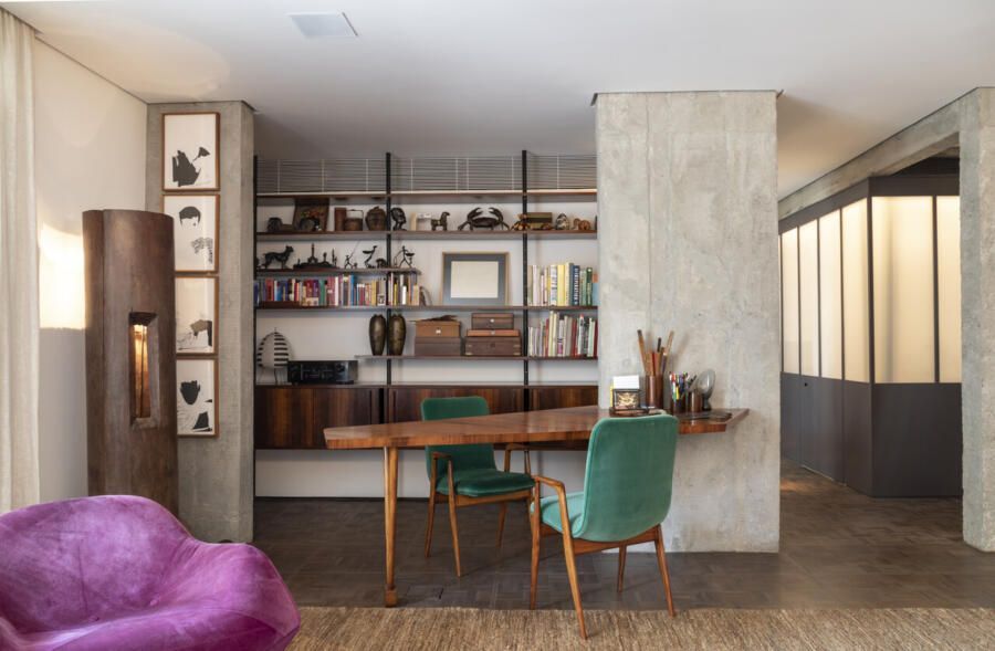 Neste Open House, descobrimos mais sobre a relação do Teo com antiquários, com o vintage e como mergulhou de vez nesse mundo, tendo passado por muitas feiras ao longo dos anos. Desde a área de serviços até o lavabo, todo cantinho tem uma história a ser contada. Inclusive, vale a pena reparar nas portas do apartamento, uma mais única do que a outra!