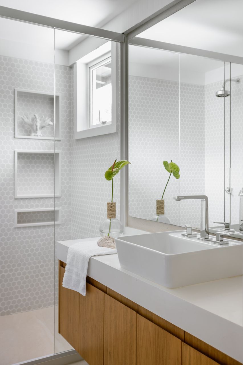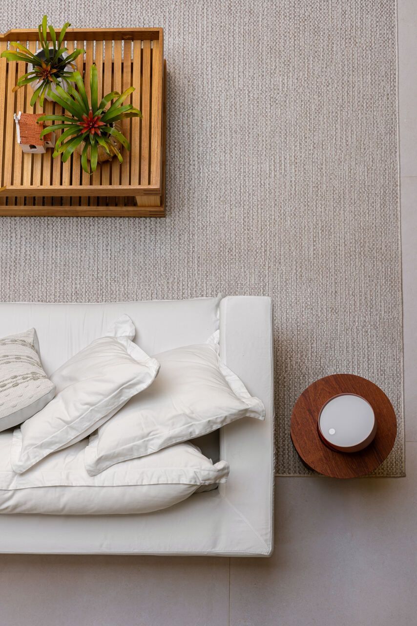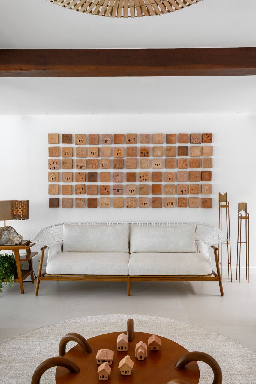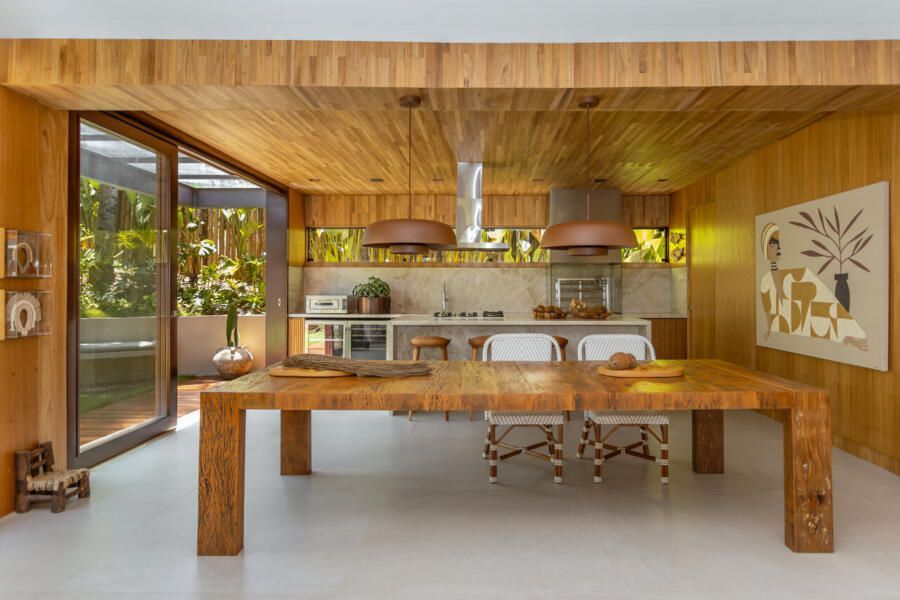 A marcenaria foi toda desenhada sob encomenda, o que garantiu personalidade e funcionalidade em cada ambiente. A decoração mistura peças assinadas por artistas brasileiros, móveis de design nacional e obras de arte cuidadosamente escolhidas para compor cada espaço com identidade.