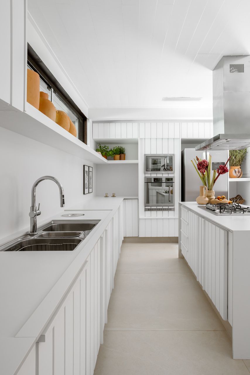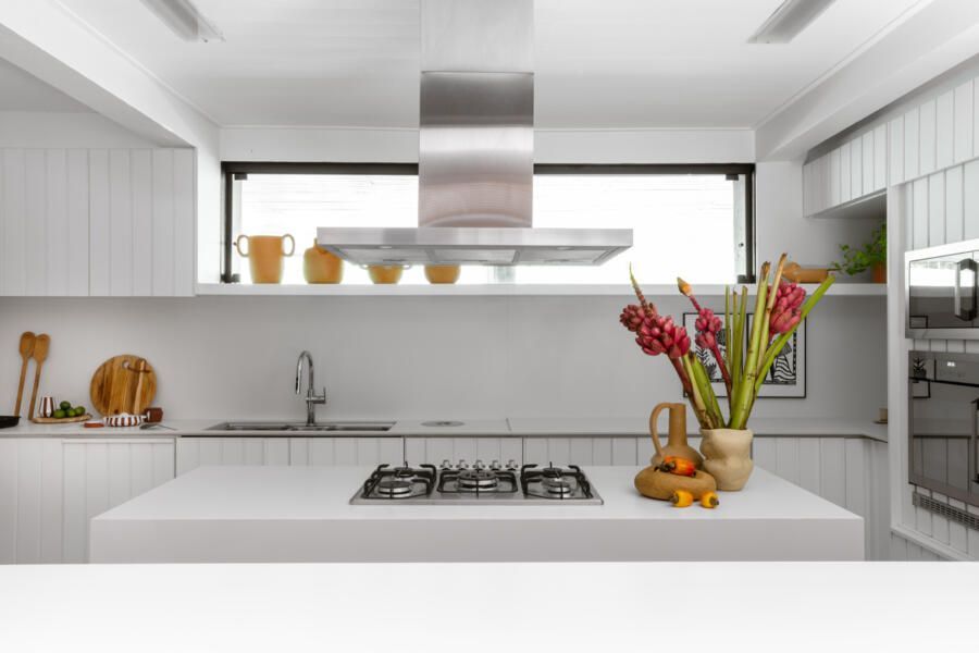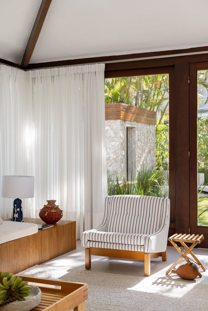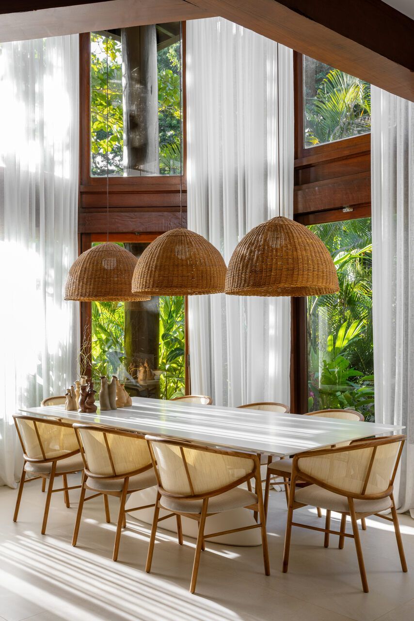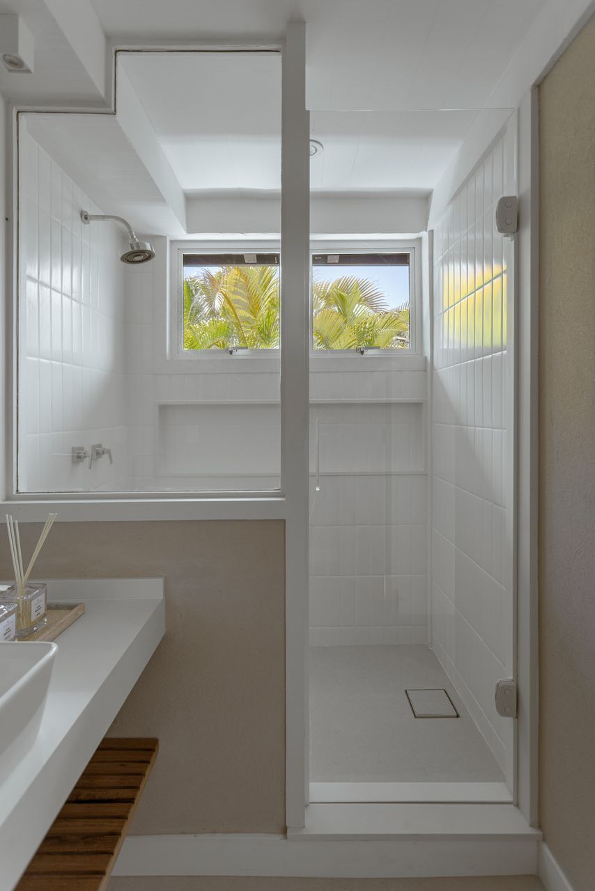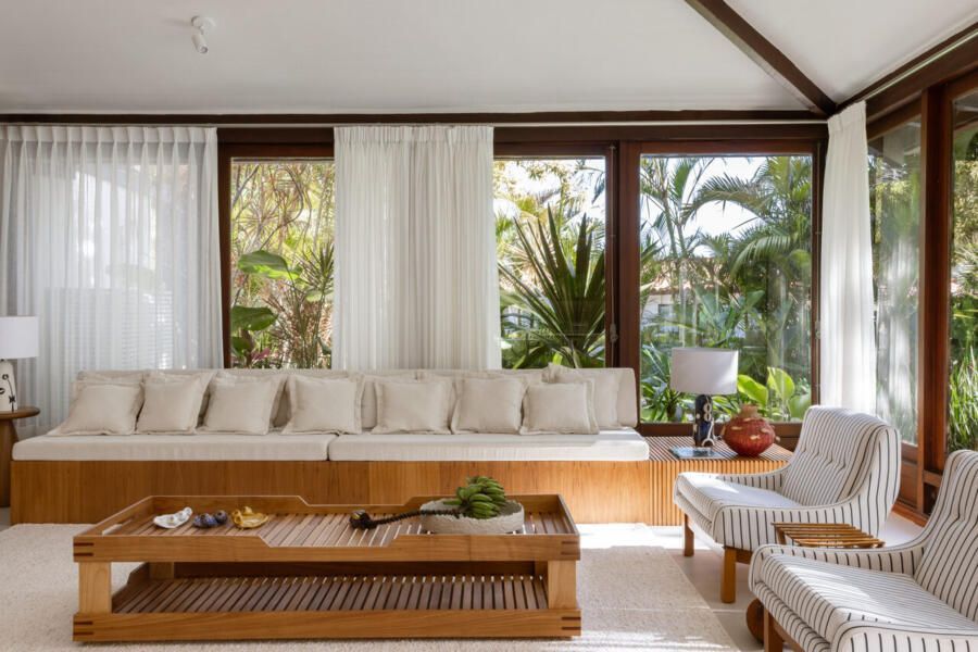 Com 274 m² de área construída em um terreno de 805 m², a casa passou por uma reforma completa, que respeitou a arquitetura original dos anos 80. O principal objetivo era manter os traços da construção, que faz parte da história da região, mas trazer mais conforto e funcionalidade ao dia a dia.