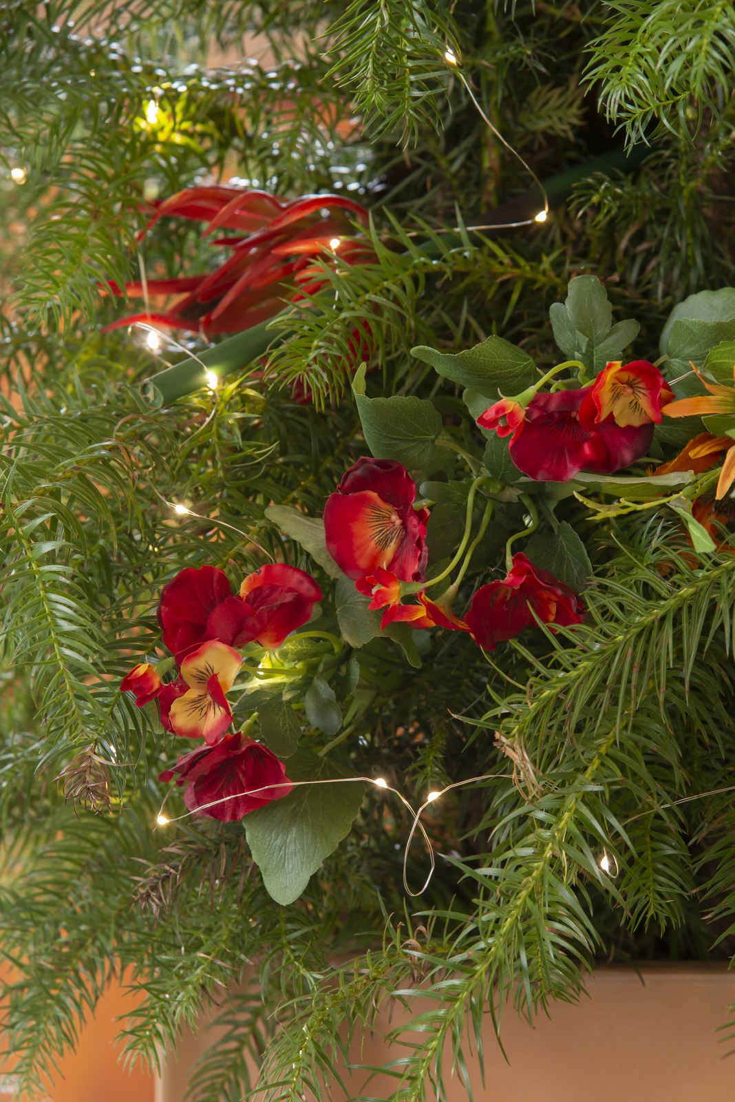Outro fator interessante destas árvores são as flores no lugar de enfeites pendurados. Já que escolhi as flores permanentes da Casa Bonita para decorar as árvores, posso deixar exatamente do modo que montei pelo tempo que desejar, sem que seja preciso manutenção ou que as flores mortas tenham que ser trocadas por outras de tempos em tempos. Não dá nem para perceber que são falsas :)