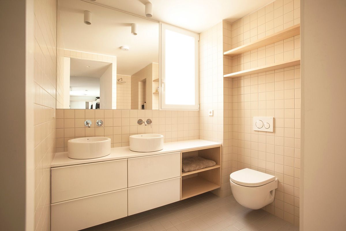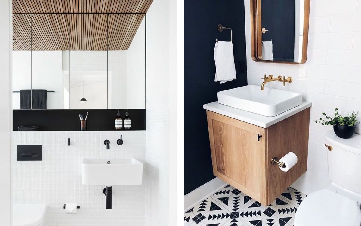 Marcenaria: vai de cada um a quantidade de coisas que tem para armazenar, mas pensando que o assunto aqui são banheiros menores, a marcenaria é mais que bem-vinda. Embaixo e/ou em cima da bancada, armários, prateleiras, nichos e por aí vai! Além de organizar os objetos, esse mobiliário ajuda a melhorar o espaço acusticamente e visualmente, e aqui vale marcenaria planejada ou móveis soltos, tudo depende de gosto e praticidade no dia-a-dia :D