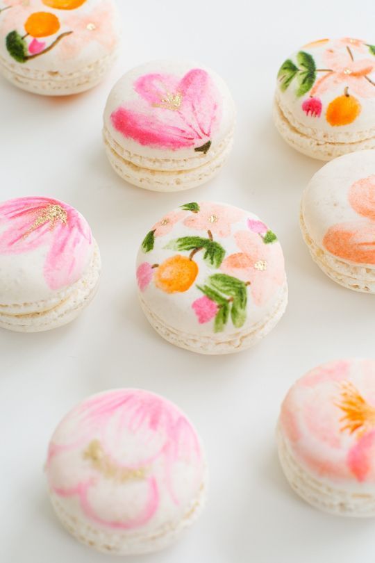 Agora olha só que lindinhos esses macarons pintados! Nunca tinha pensado na ideia, AMEI ;-)